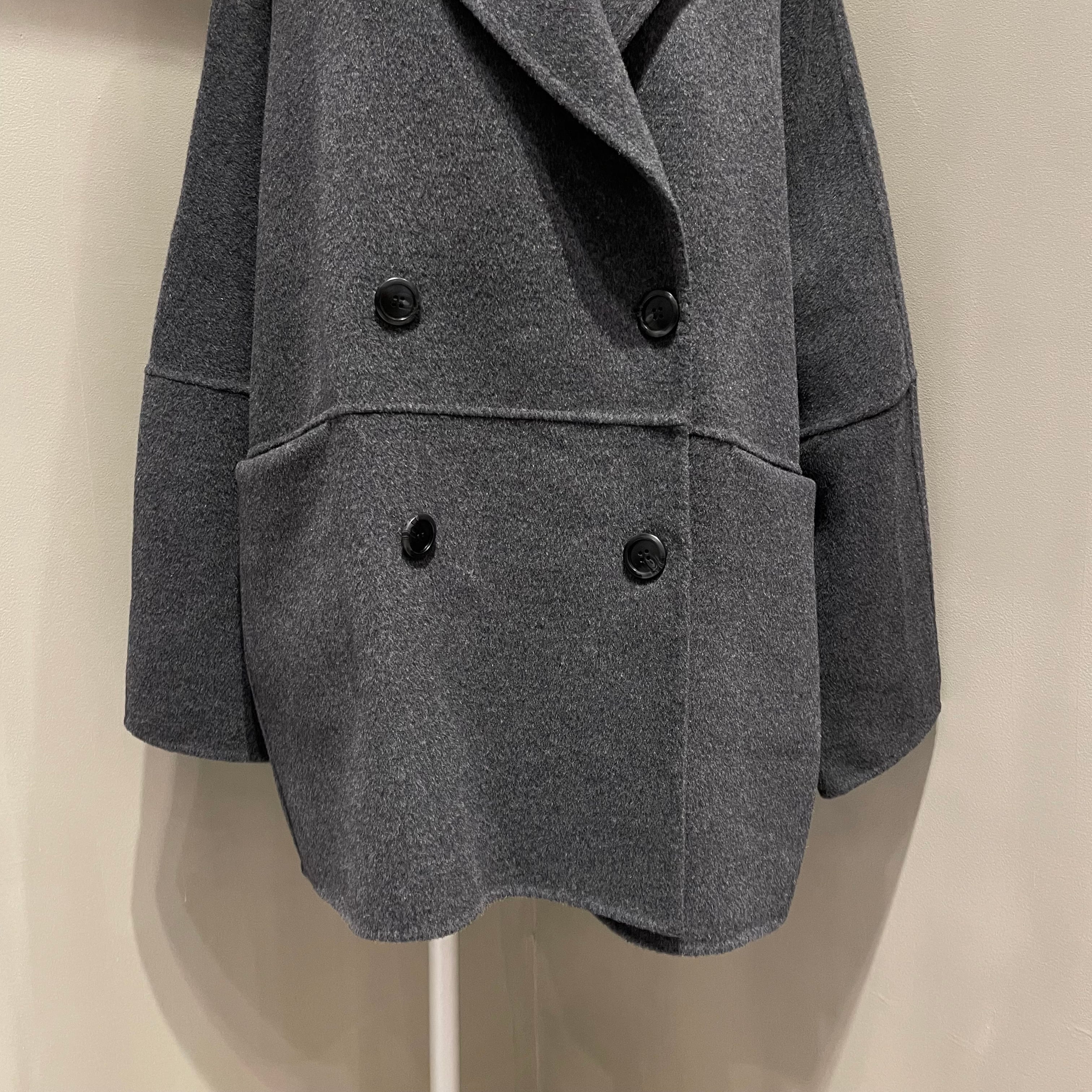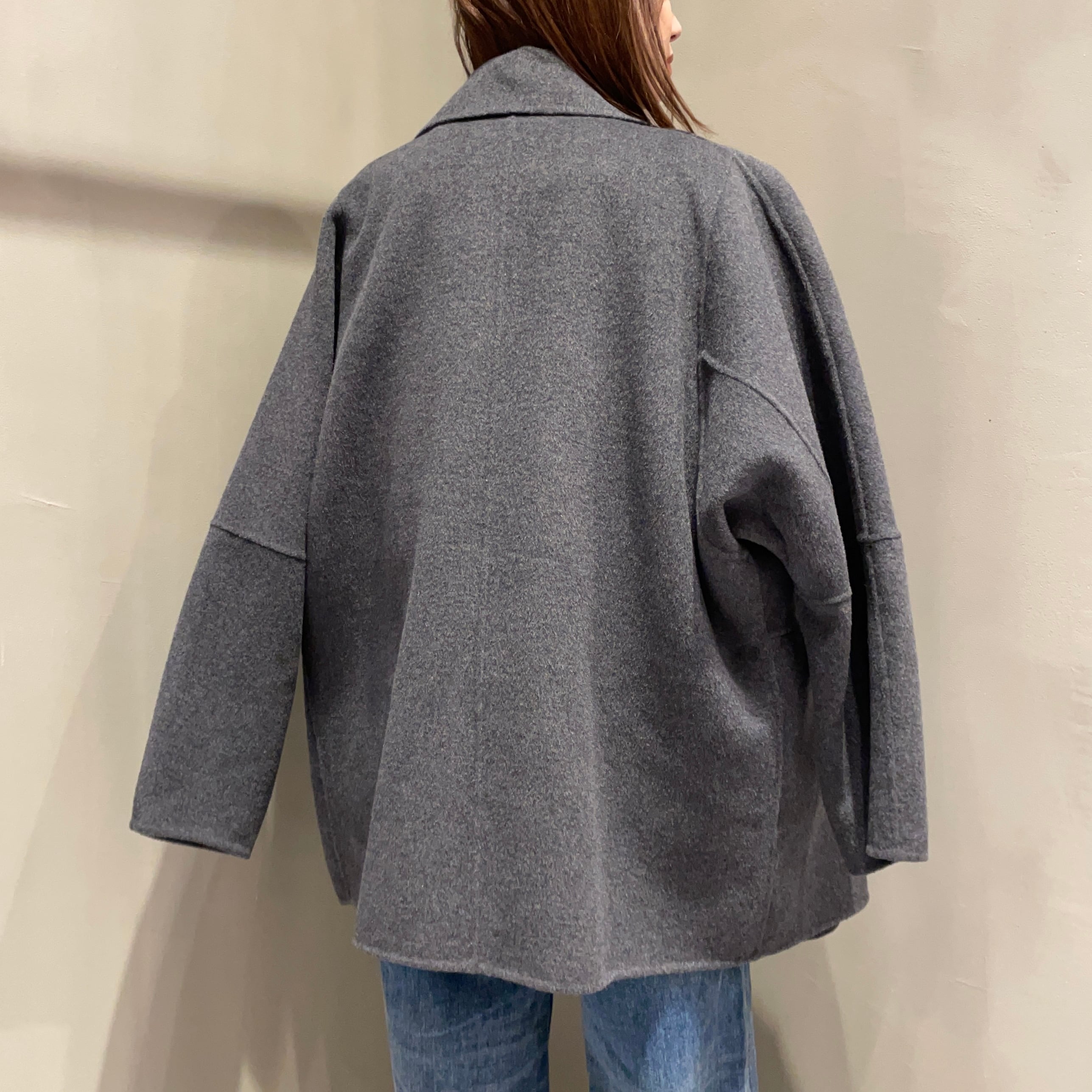 一般的なピーコートよりもゆったりとしたサイズ感で、リラックスした雰囲気を演出。