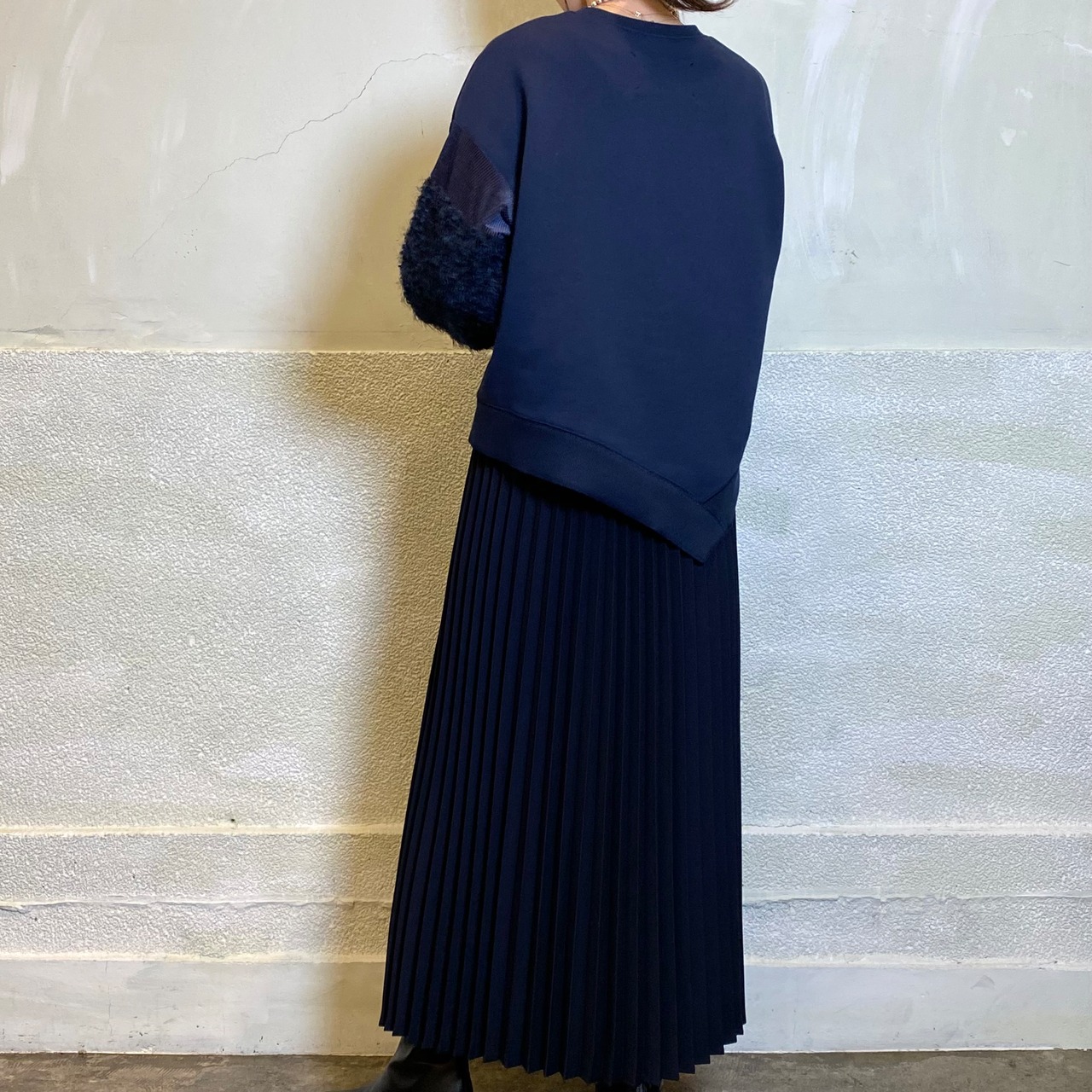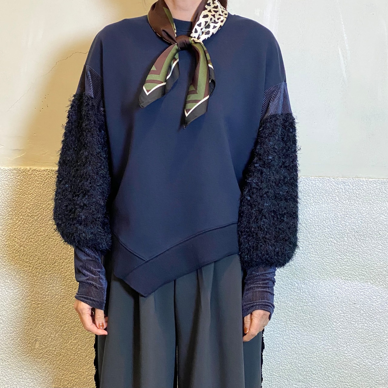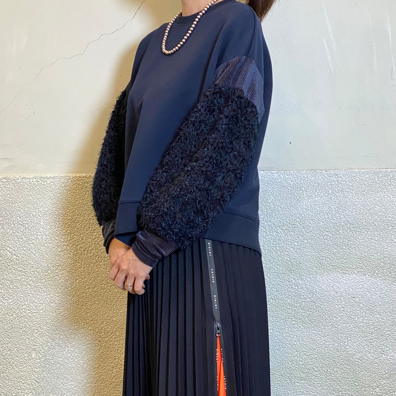 このスウェットシャツは、ファースリーブデザインにより、暖かさとスタイルを両立。シンプルながらも、着るだけで特別感あふれる一着です。