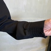 1枚でトップスとしてはもちろん、ジャケットや、ニット・スウェットのインナーにも◎カットソーのロンTよりもカジュアル感が抑えられ、大人っぽくこなれた印象に。袖口はシャーリングゴムいりで、腕まくりがしやすいのもポイントです。後ボタンあきは、スナップボタンを使用し着脱しやすい仕様にしています。