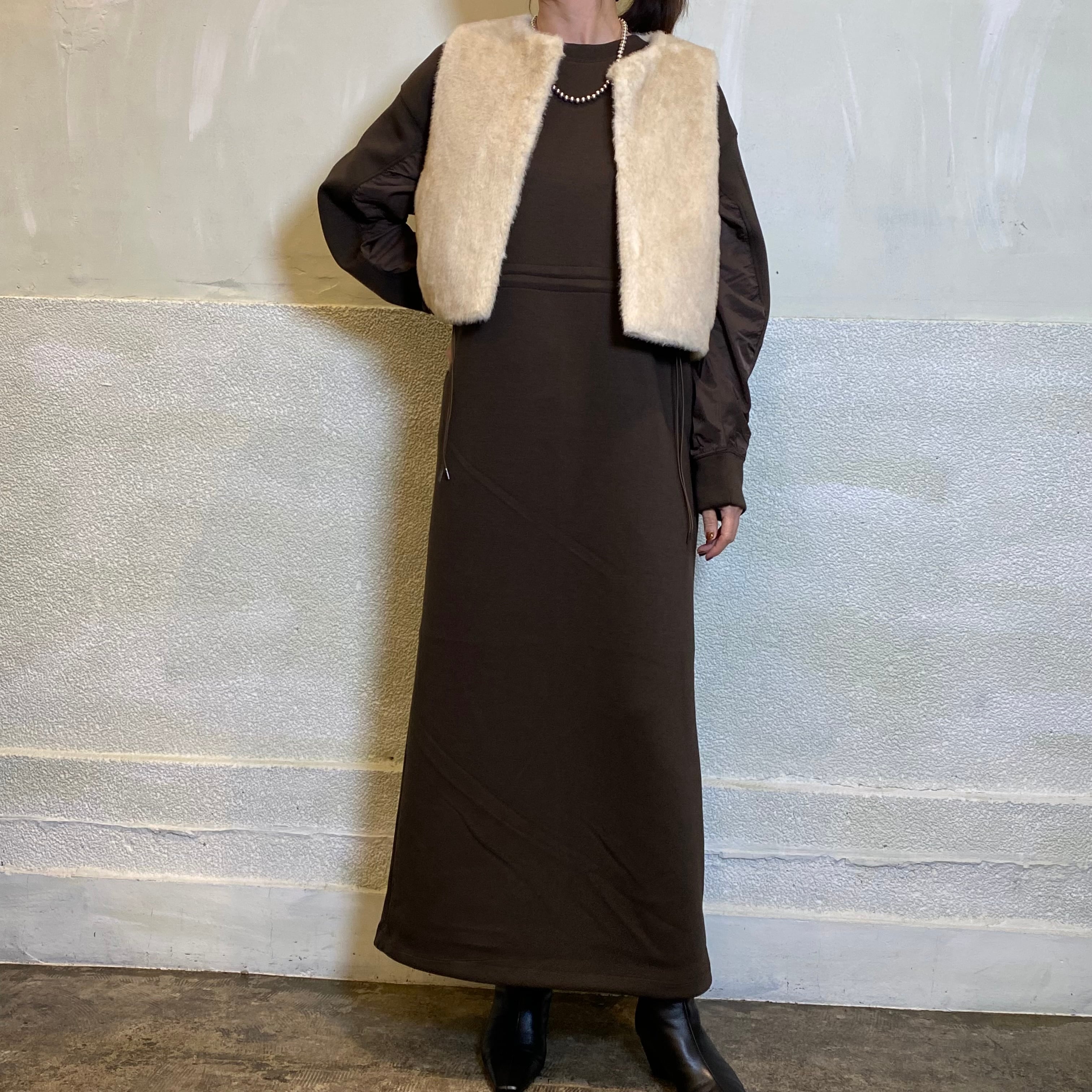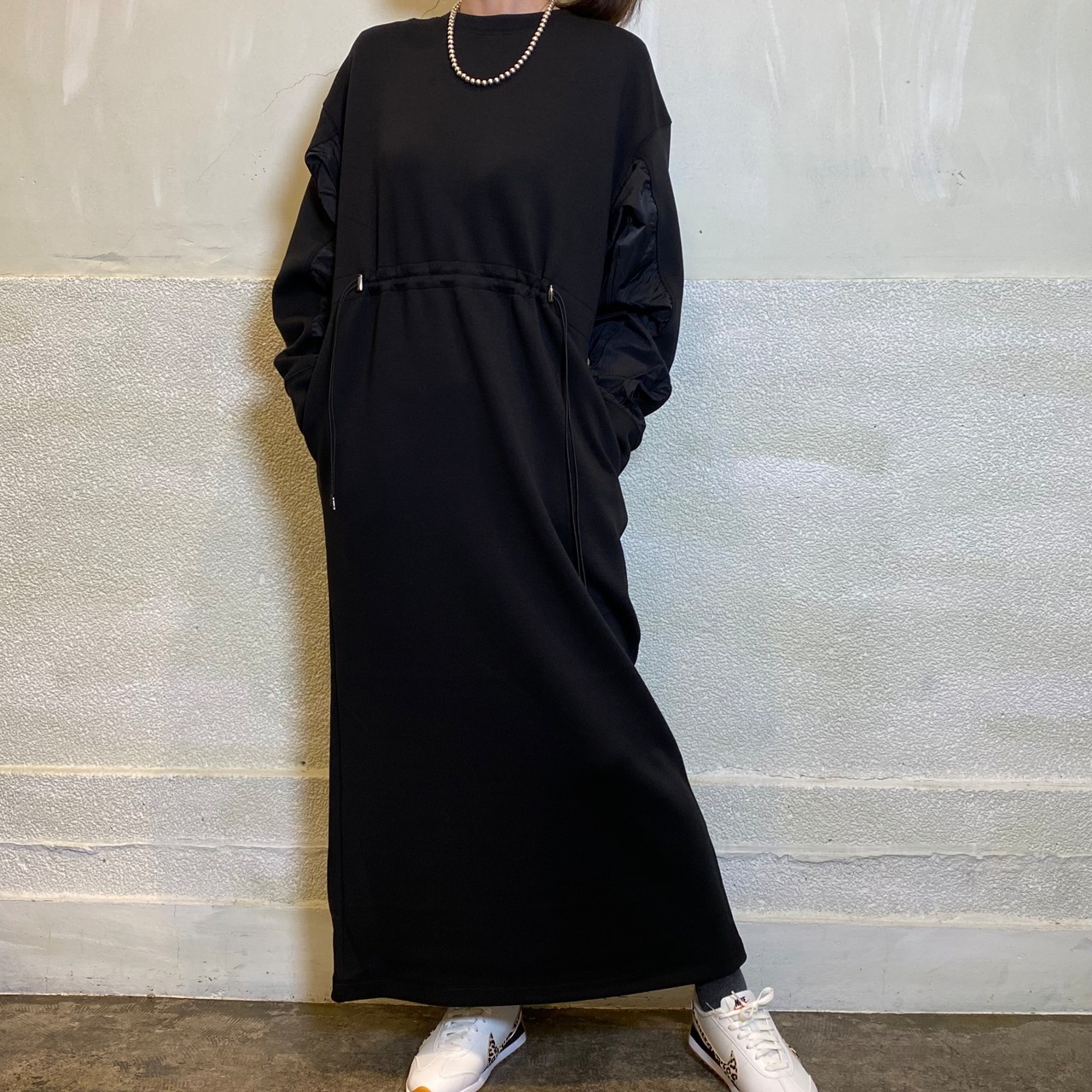 身体のラインを拾いすぎないように、フロント部分のみドロストを入れています。