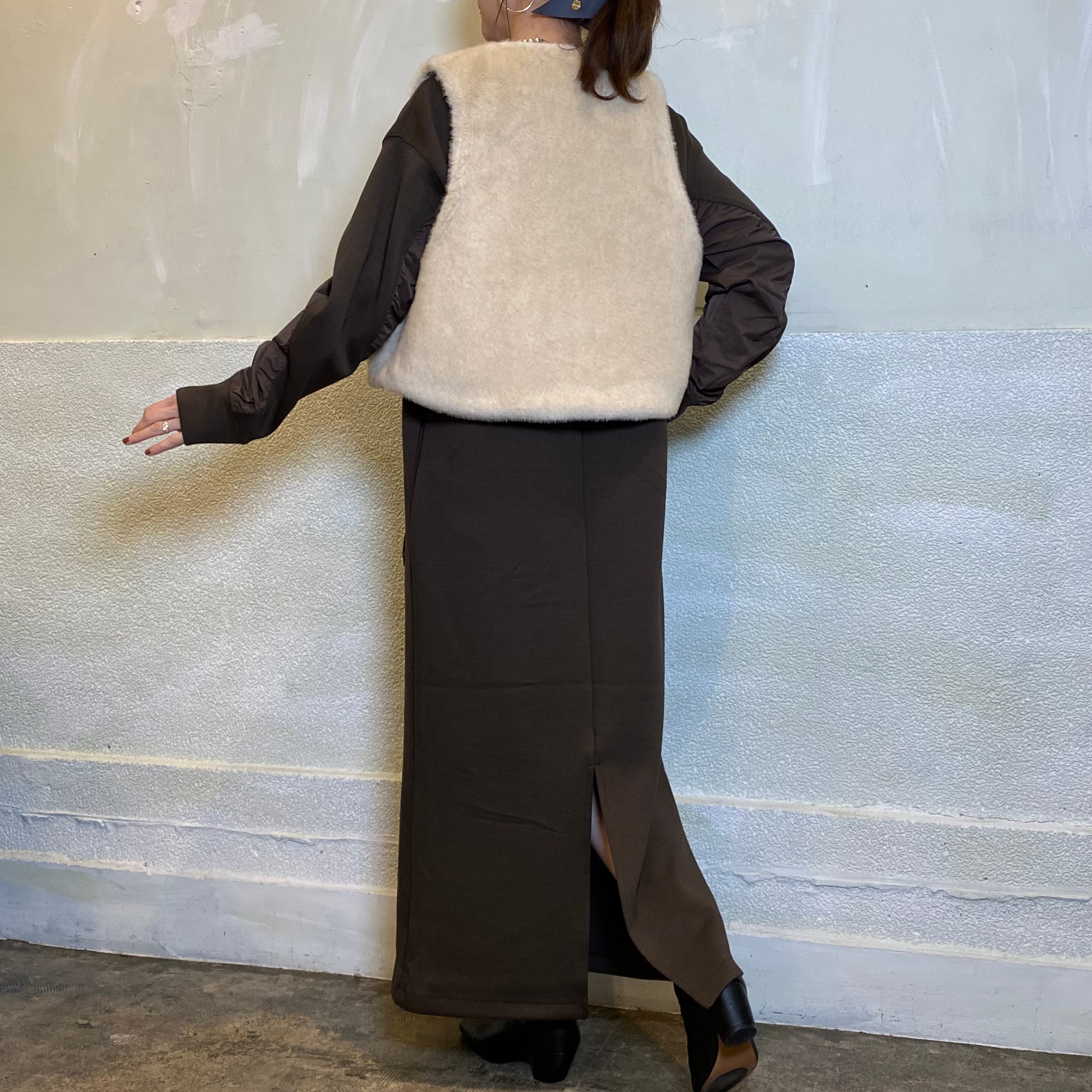 サイドポケット付きで機能性も充実。スリット入りで足さばきも◎