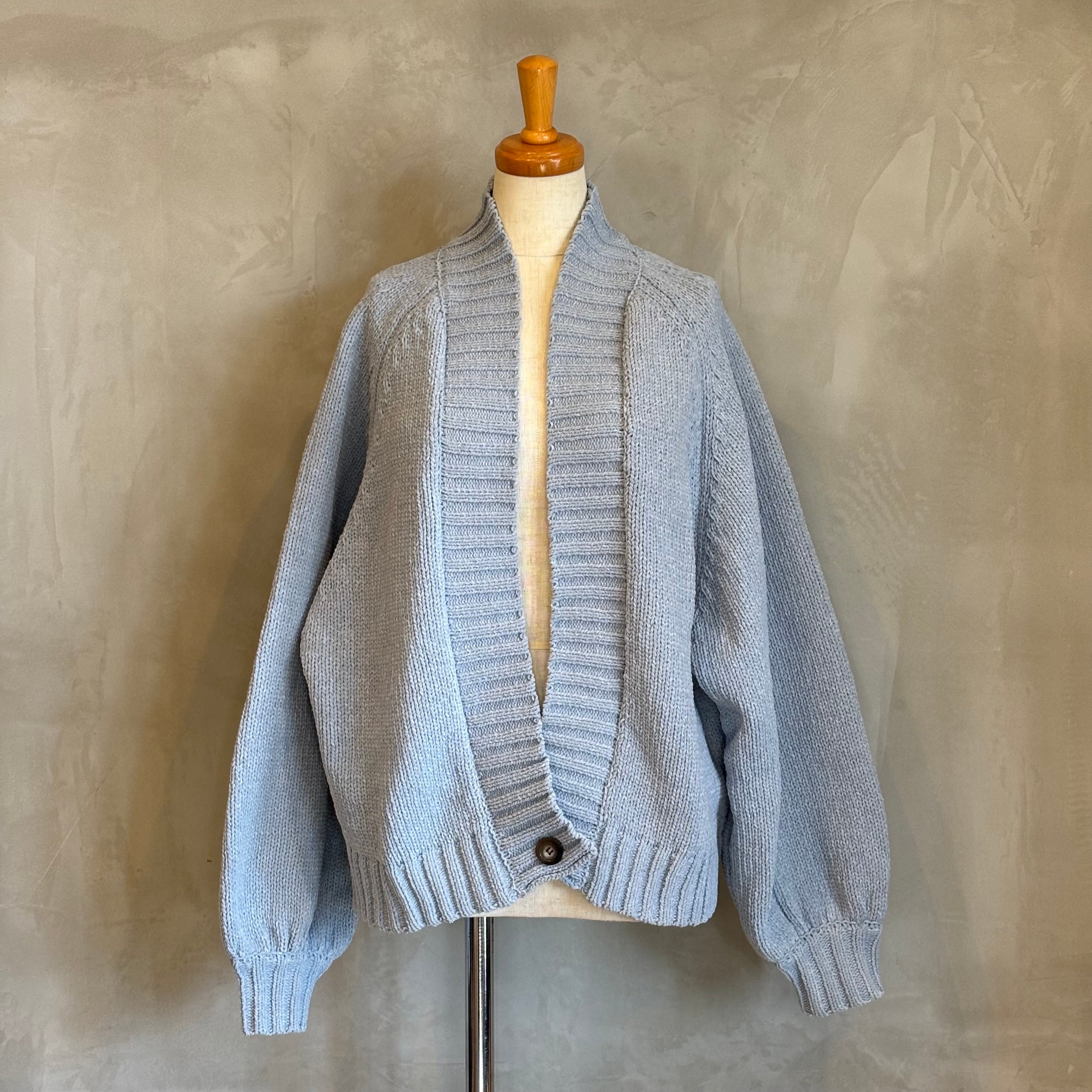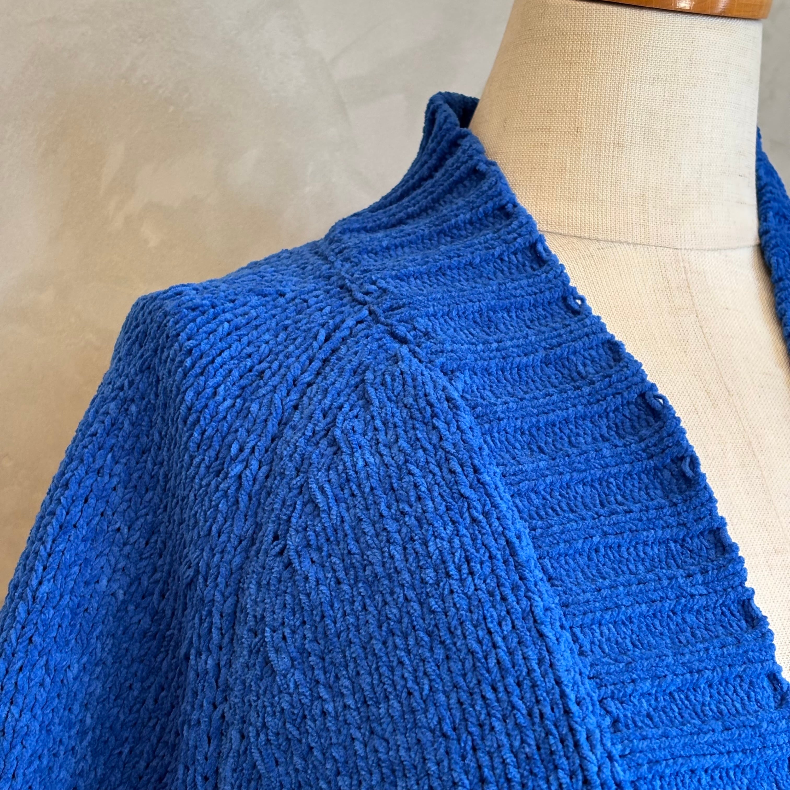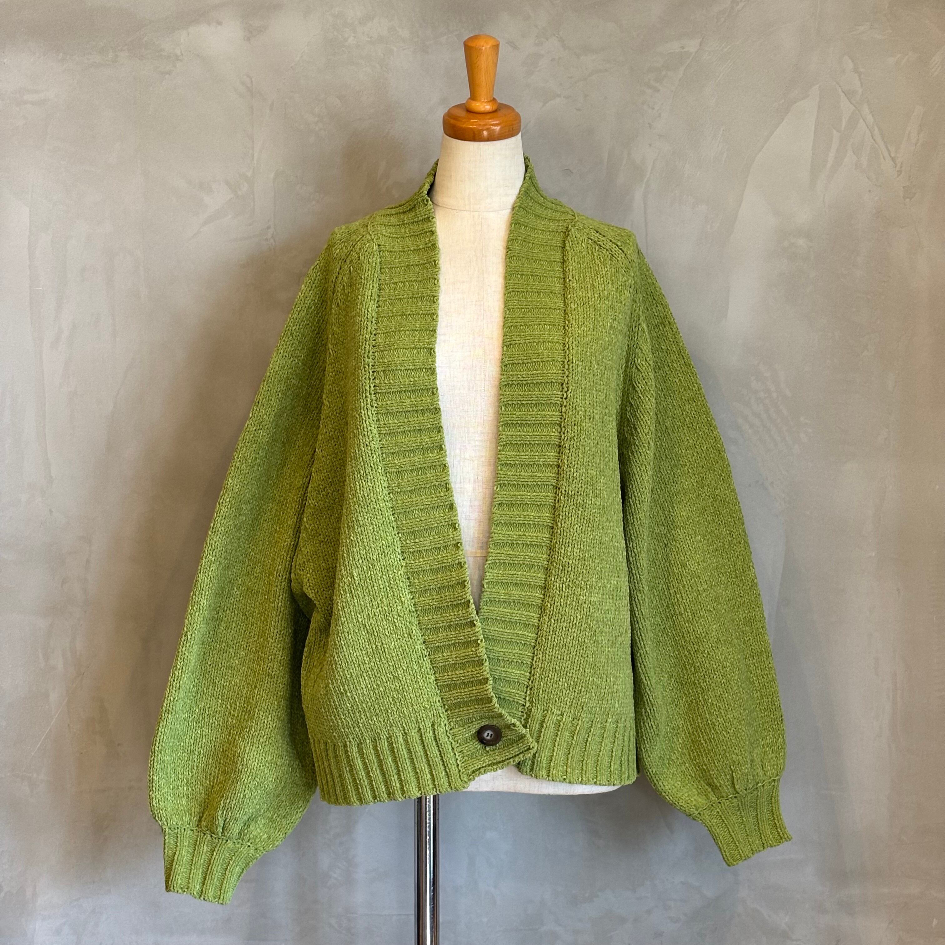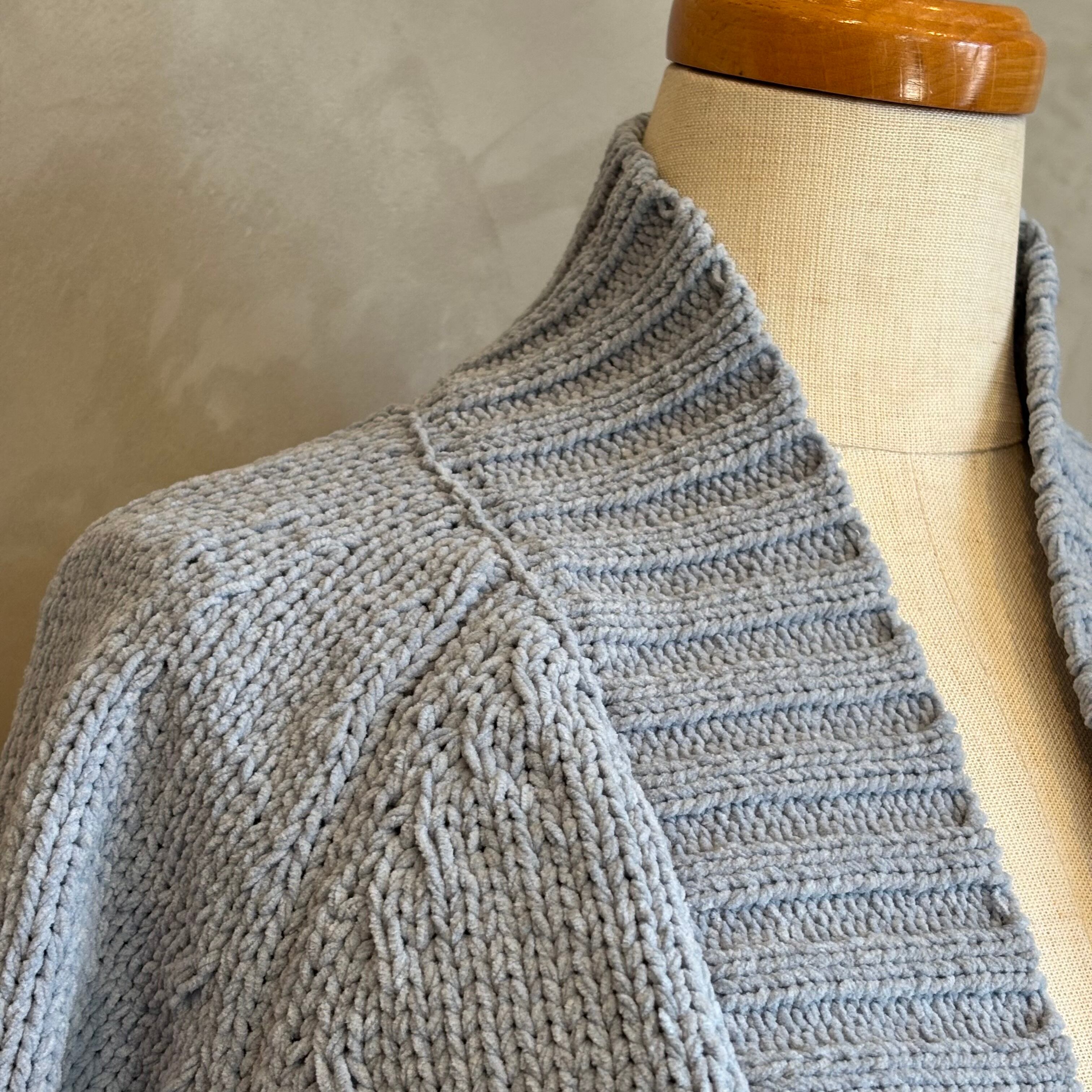 やわらかな肌触りが最高に心地良い短い毛足のモールヤーンを使用し、ざっくりと編み上げたローゲージカーディガン。