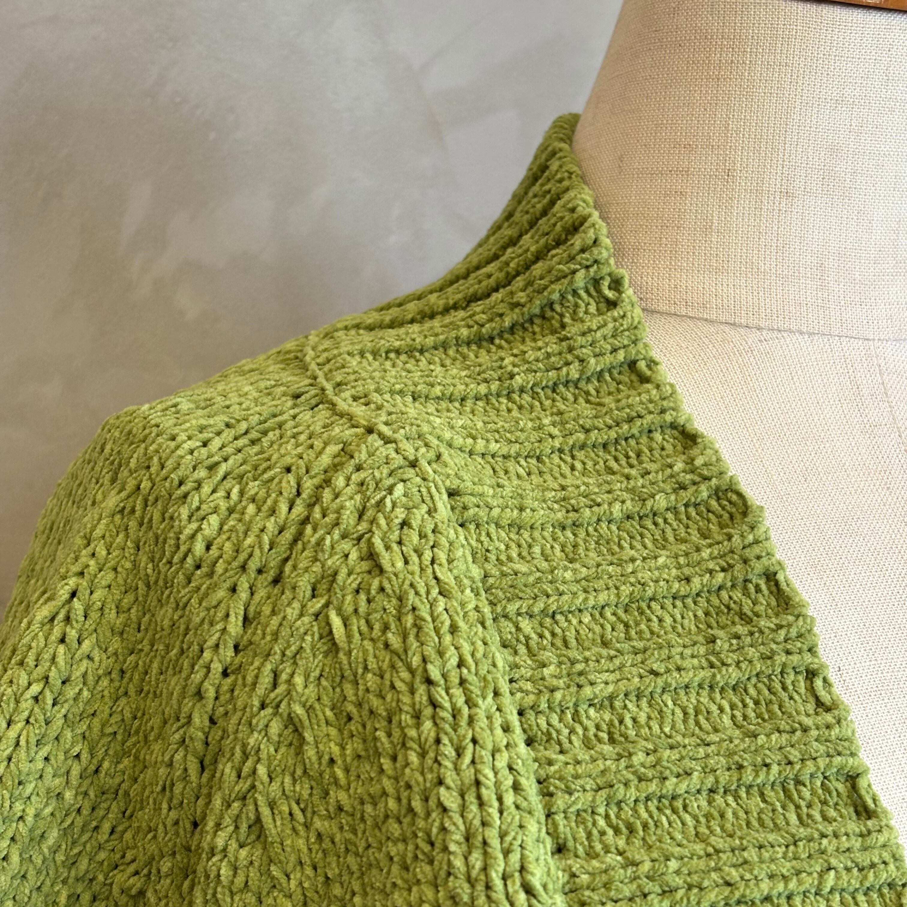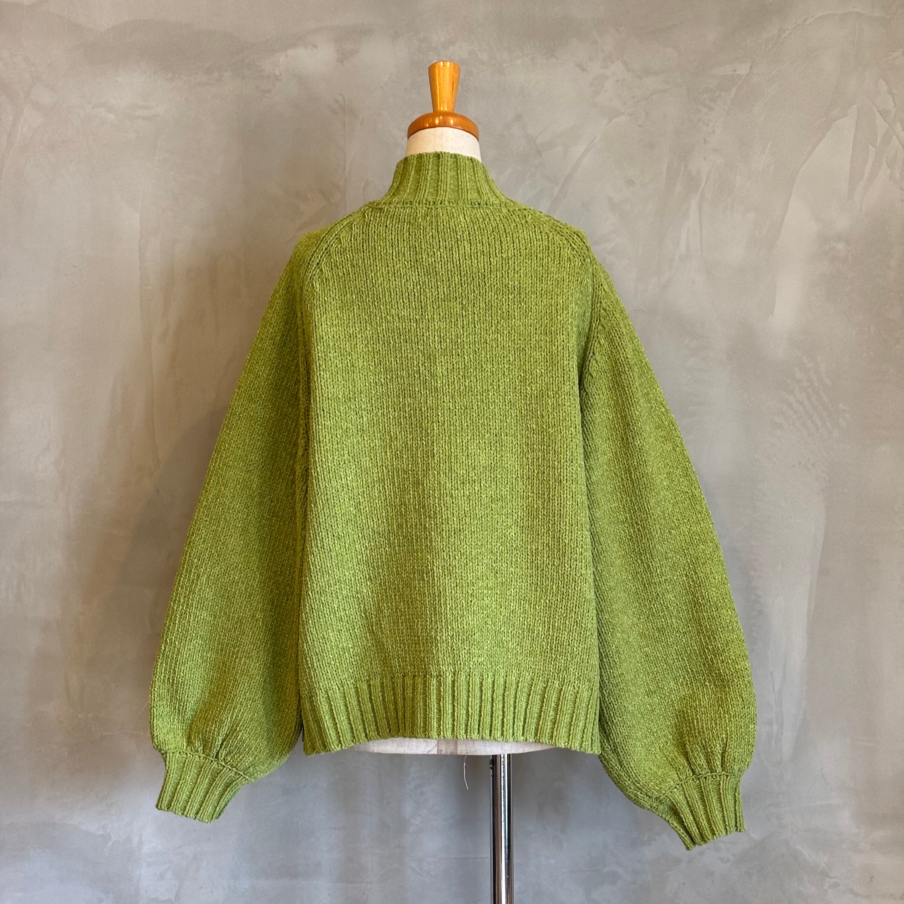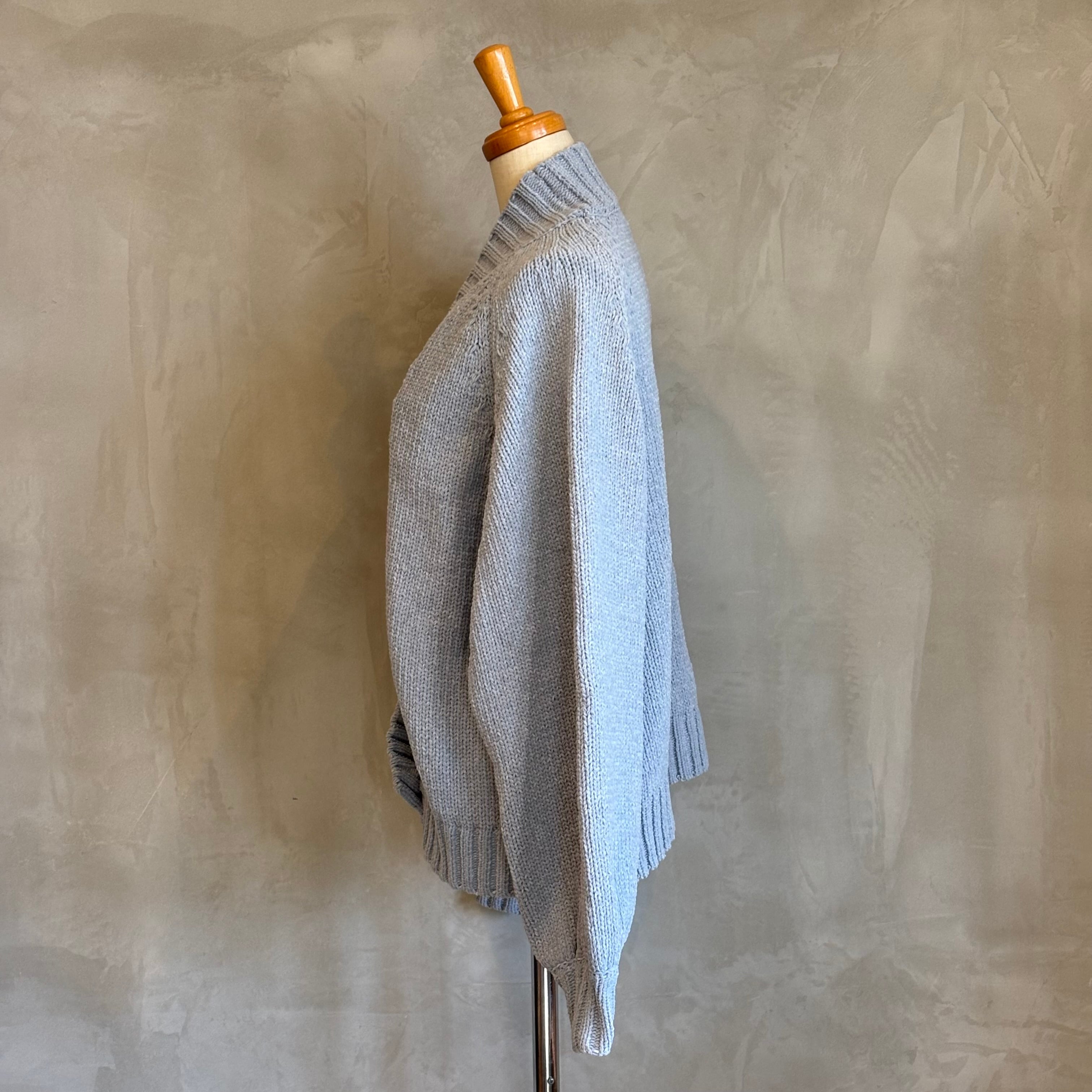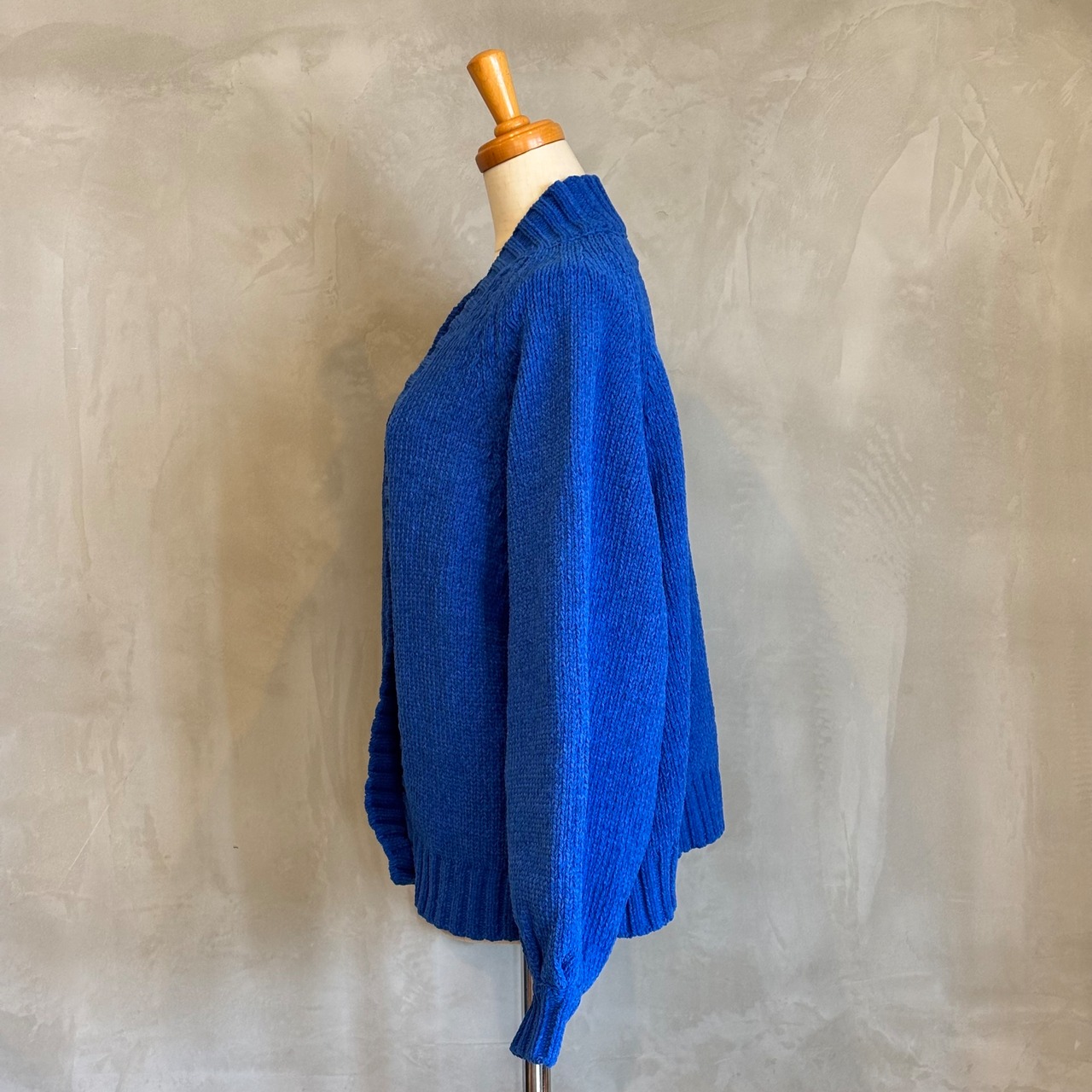 やわらかな肌触りが最高に心地良い短い毛足のモールヤーンを使用し、ざっくりと編み上げたローゲージカーディガン。