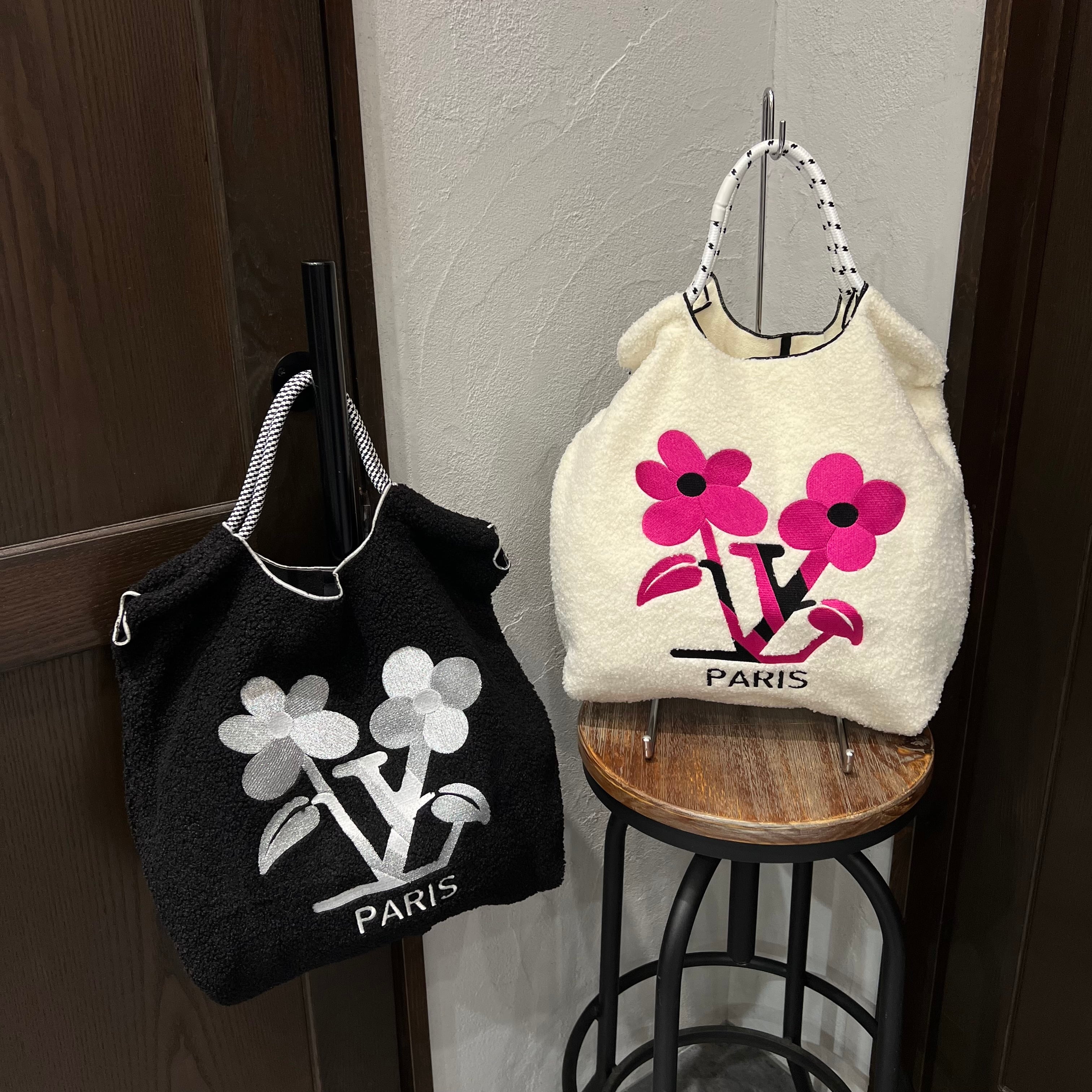 ふわっとした手触りが魅力のモコモコ素材のトートバッグ。