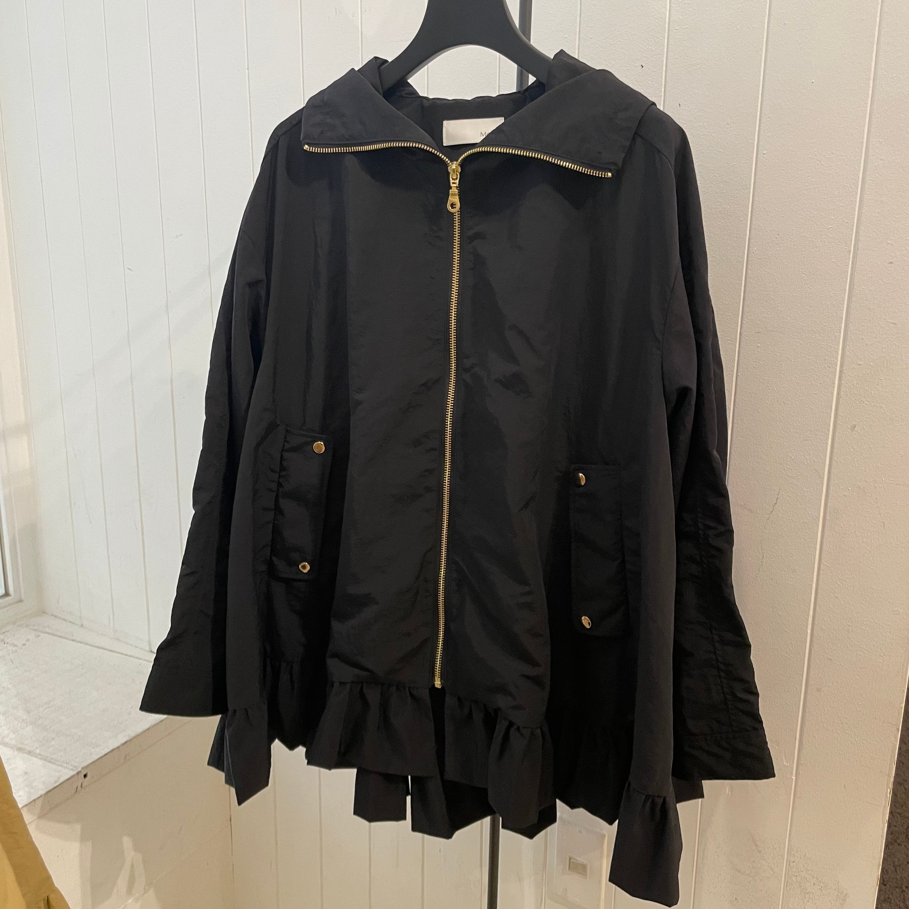 軽やかなナイロン素材を贅沢に使用し、裾にはたっぷりとフリルをあしらって大人の可愛さをプラス。