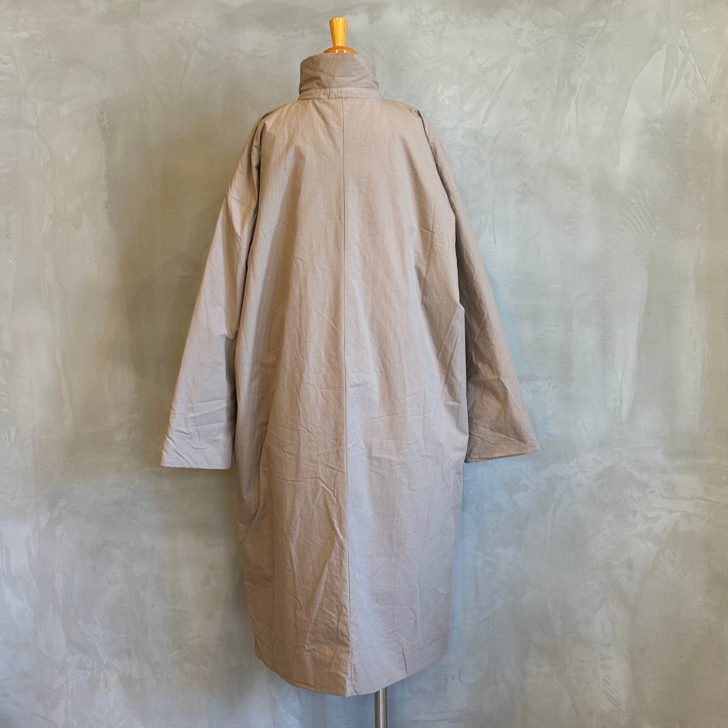裏地にキルティング加工を施したNEW STANDARDロング丈中綿ステンカラーコートです。