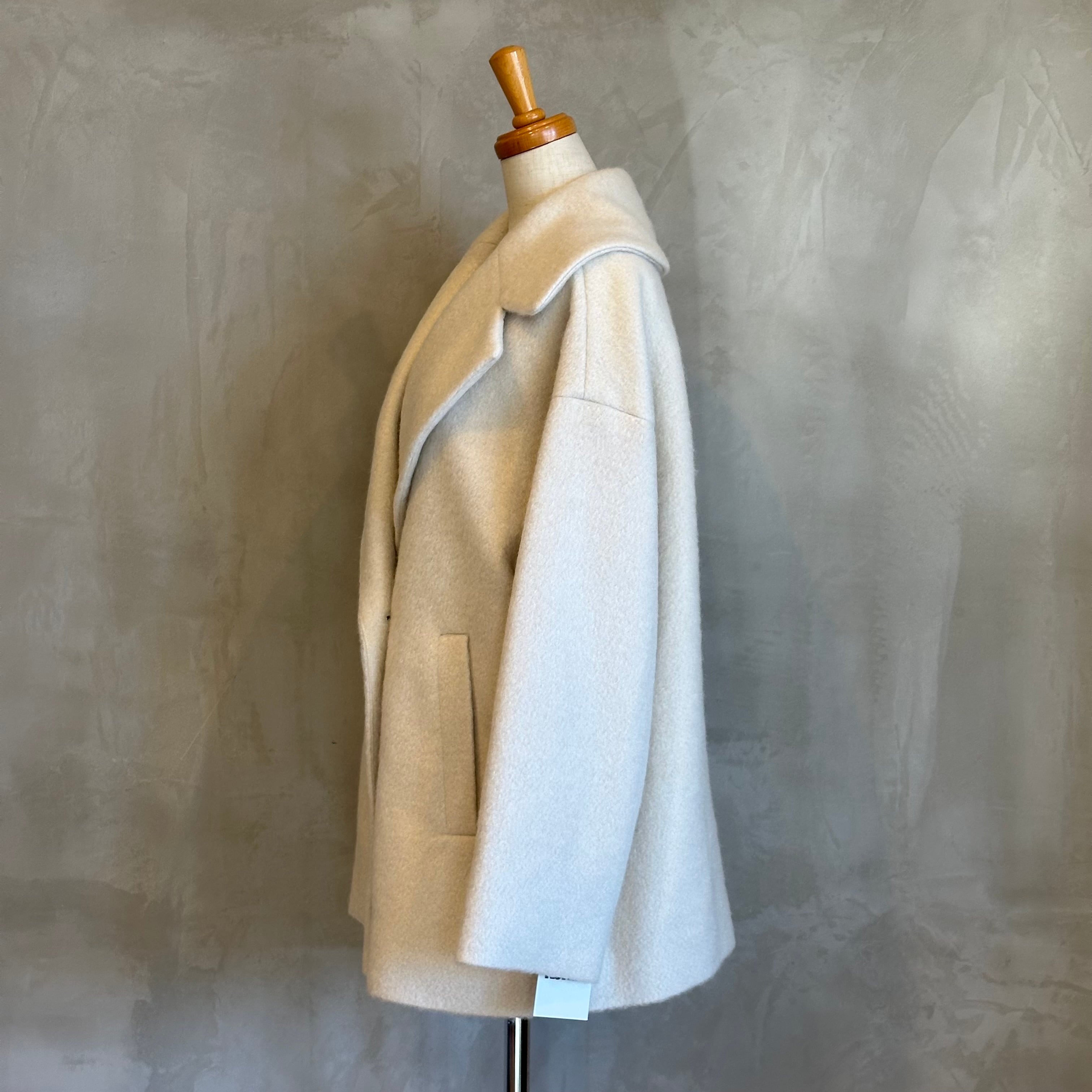 しっかりとしたウール素材を使用した、洗練された印象のテーラードシルエットのショートコート。