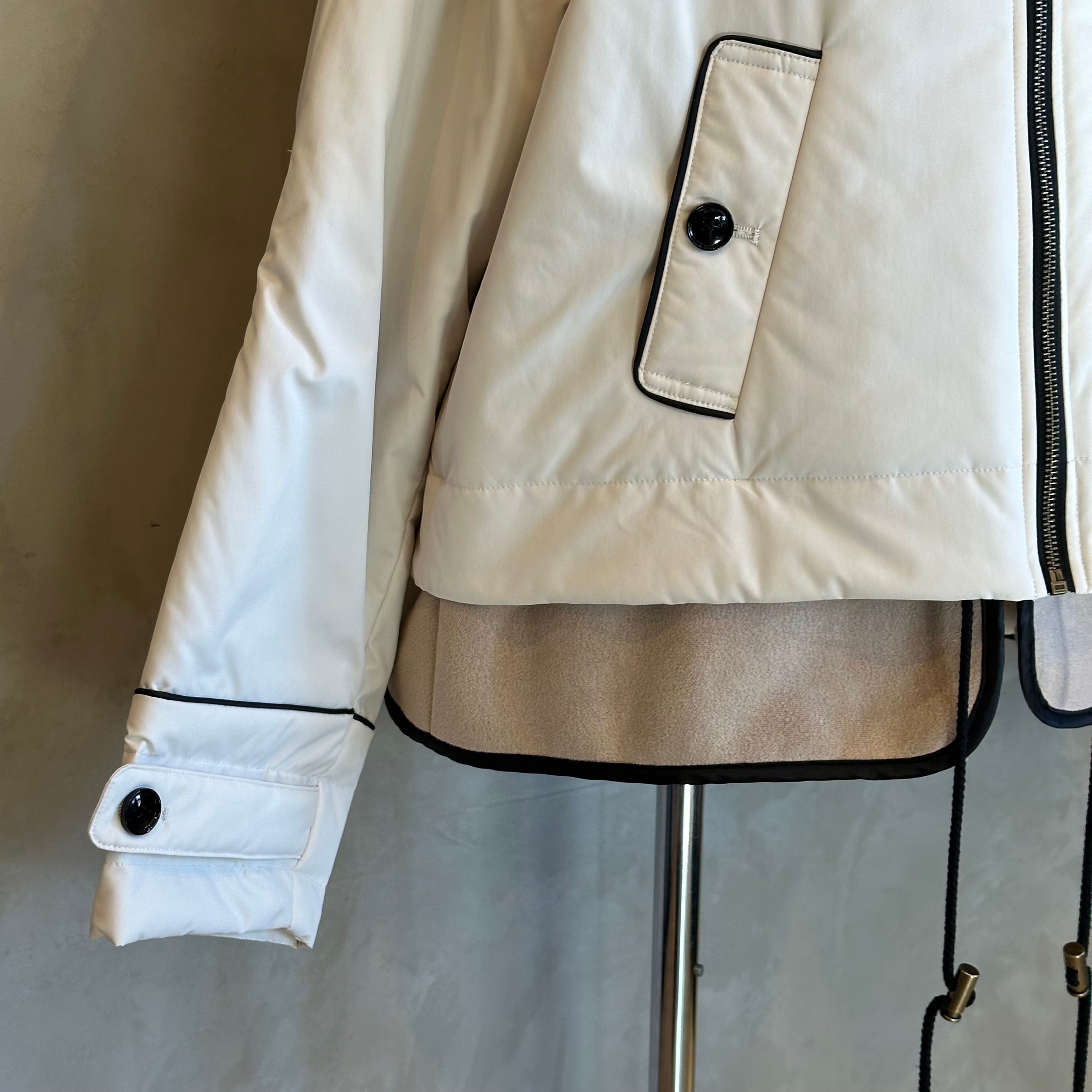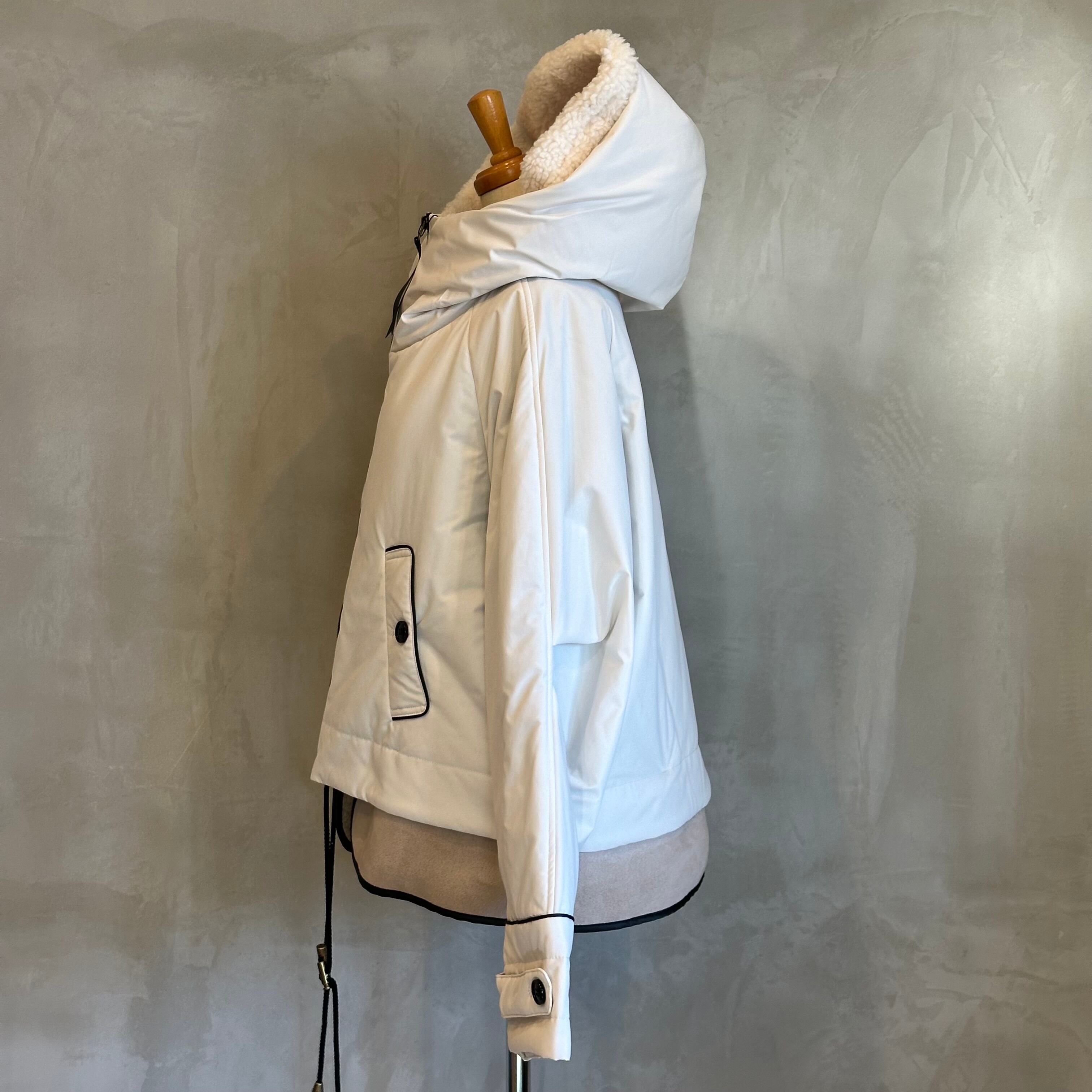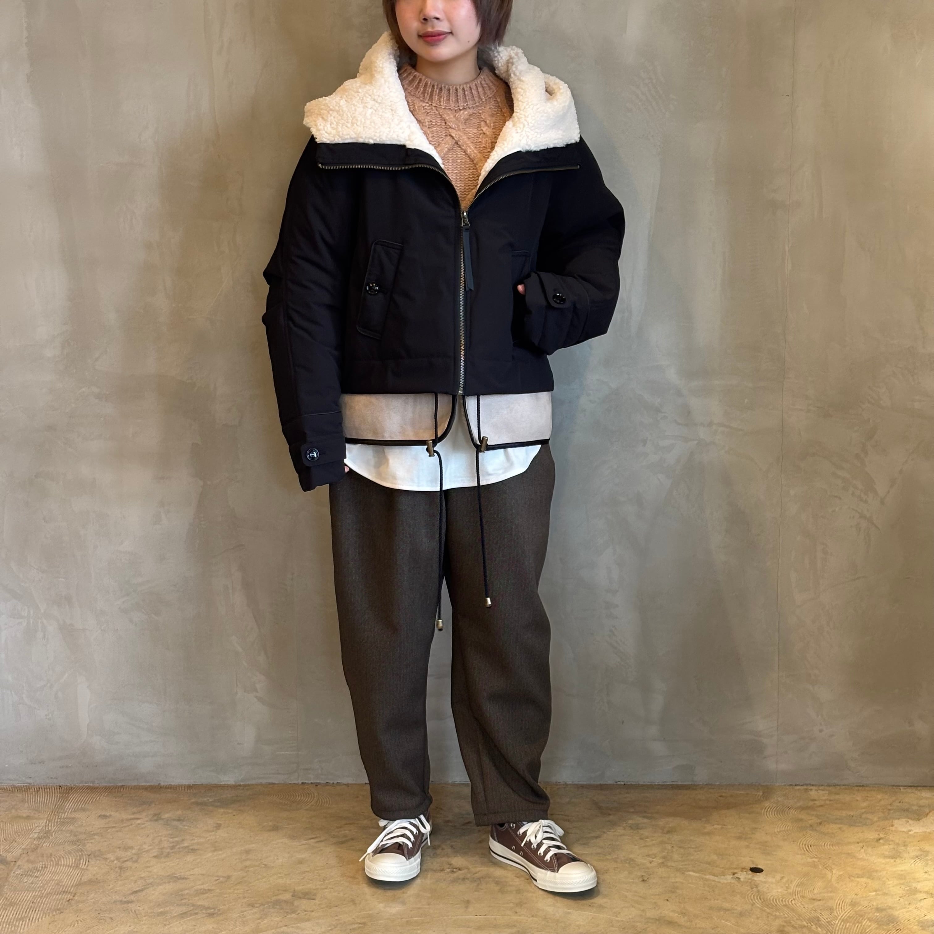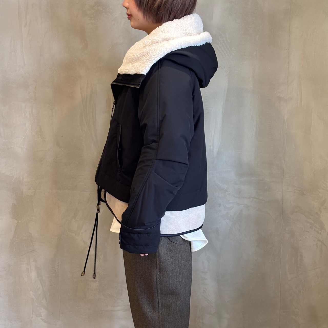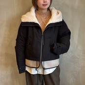 ふんわりとしたボアと落ち着いたスエード素材のコンビネーションで、シンプルながらも存在感のあるショートコートです。