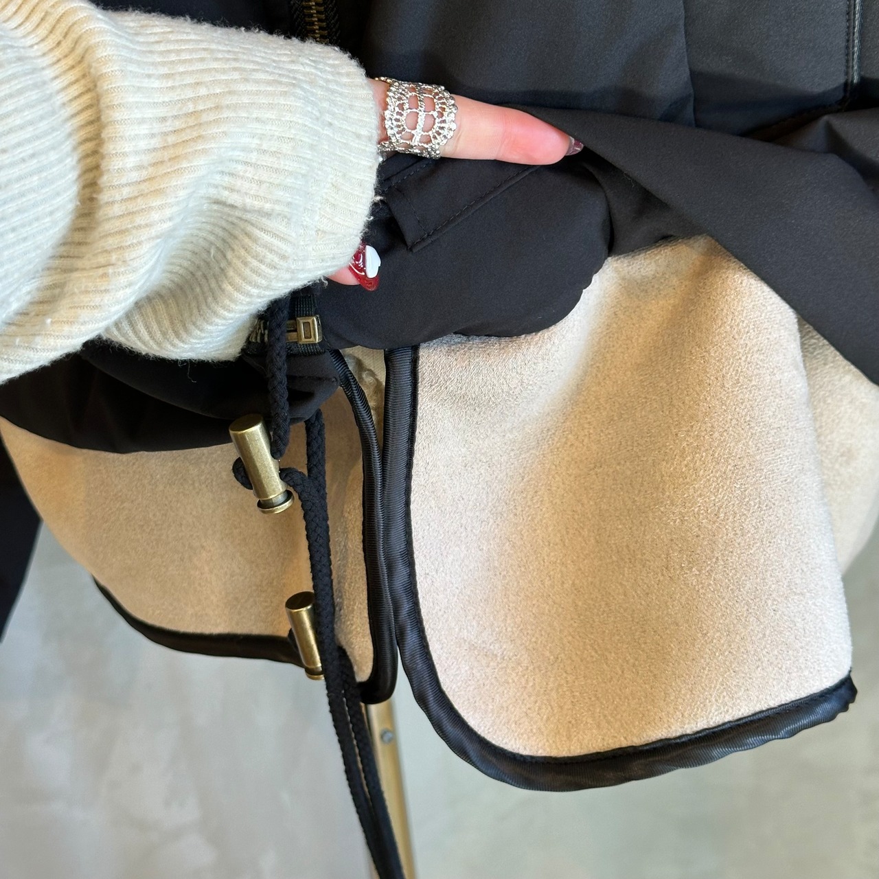 ボア部分は柔らかな肌触りで、保温性が高く、寒い季節でも快適にお使いいただけます。