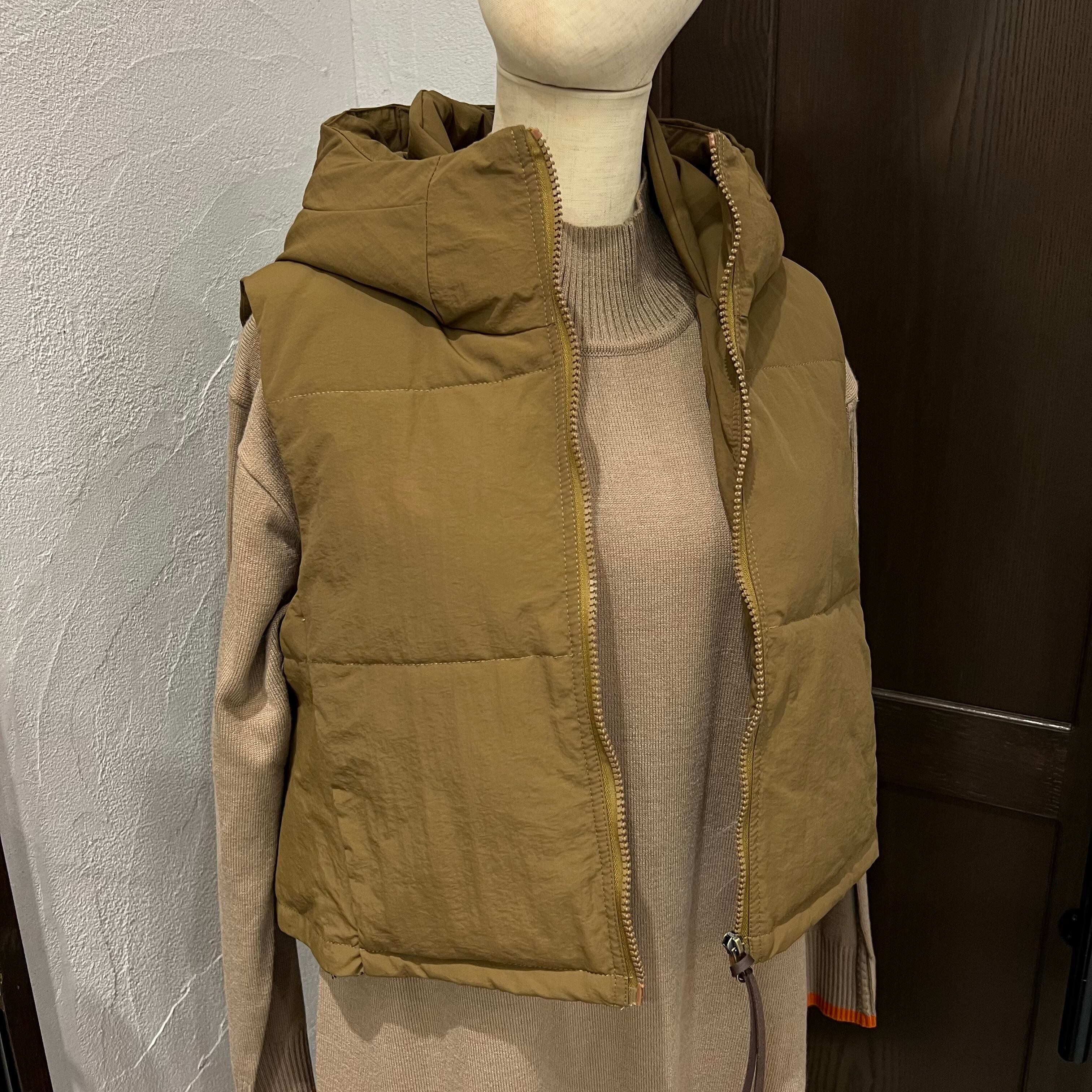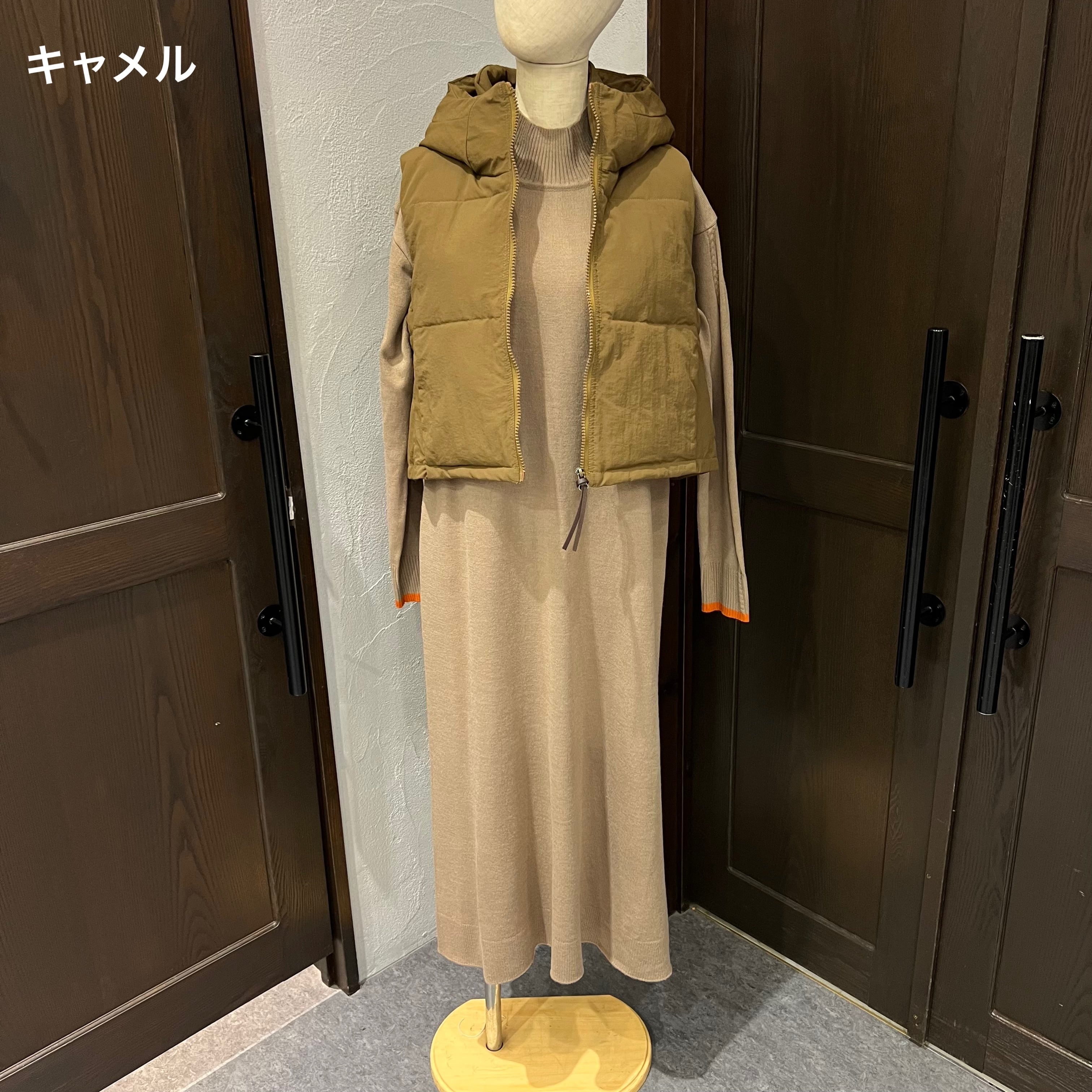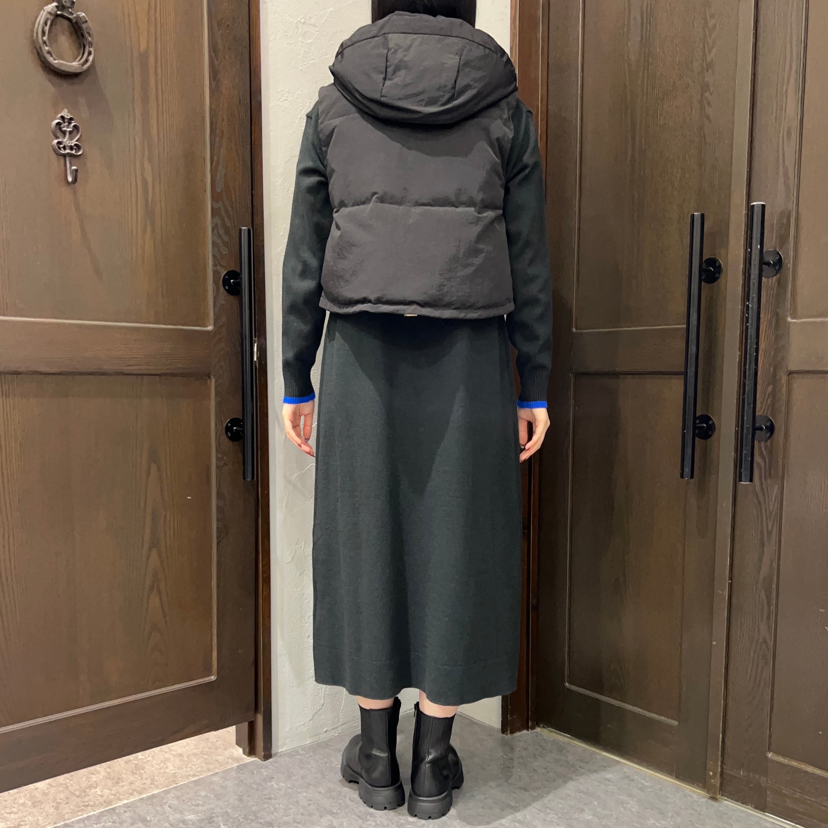コンパクトな丈感で、ワンピースやニットに重ねてもバランス良く着られるデザイン。