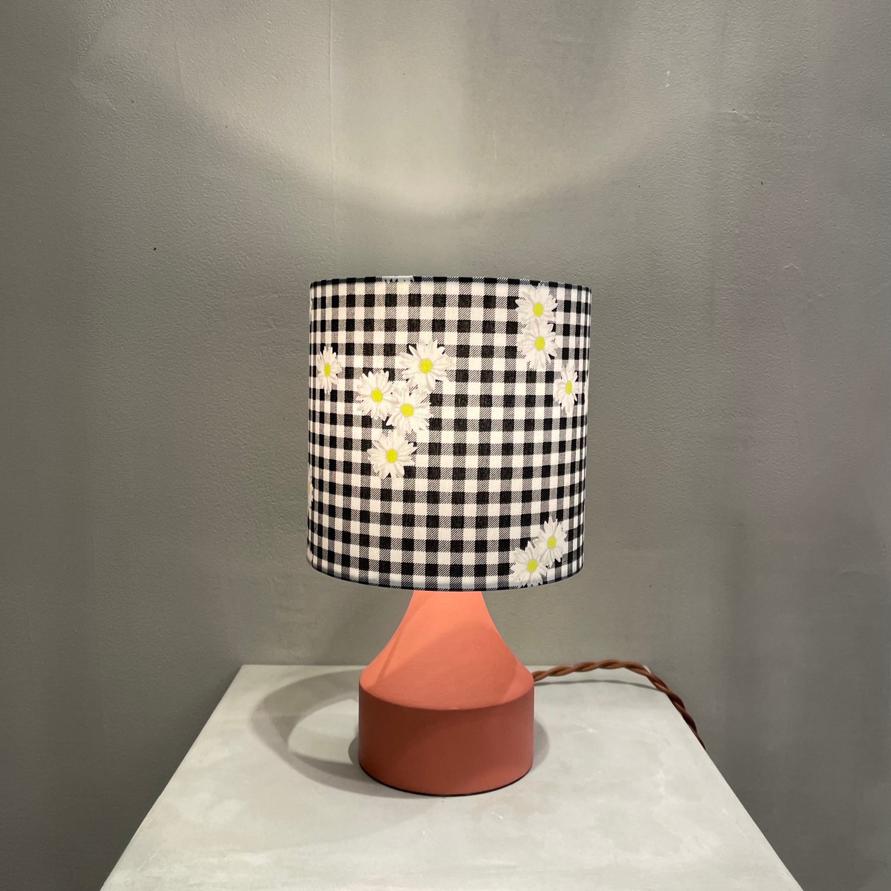 ファブリック製です。1点ずつ生地を巻いて制作しております。