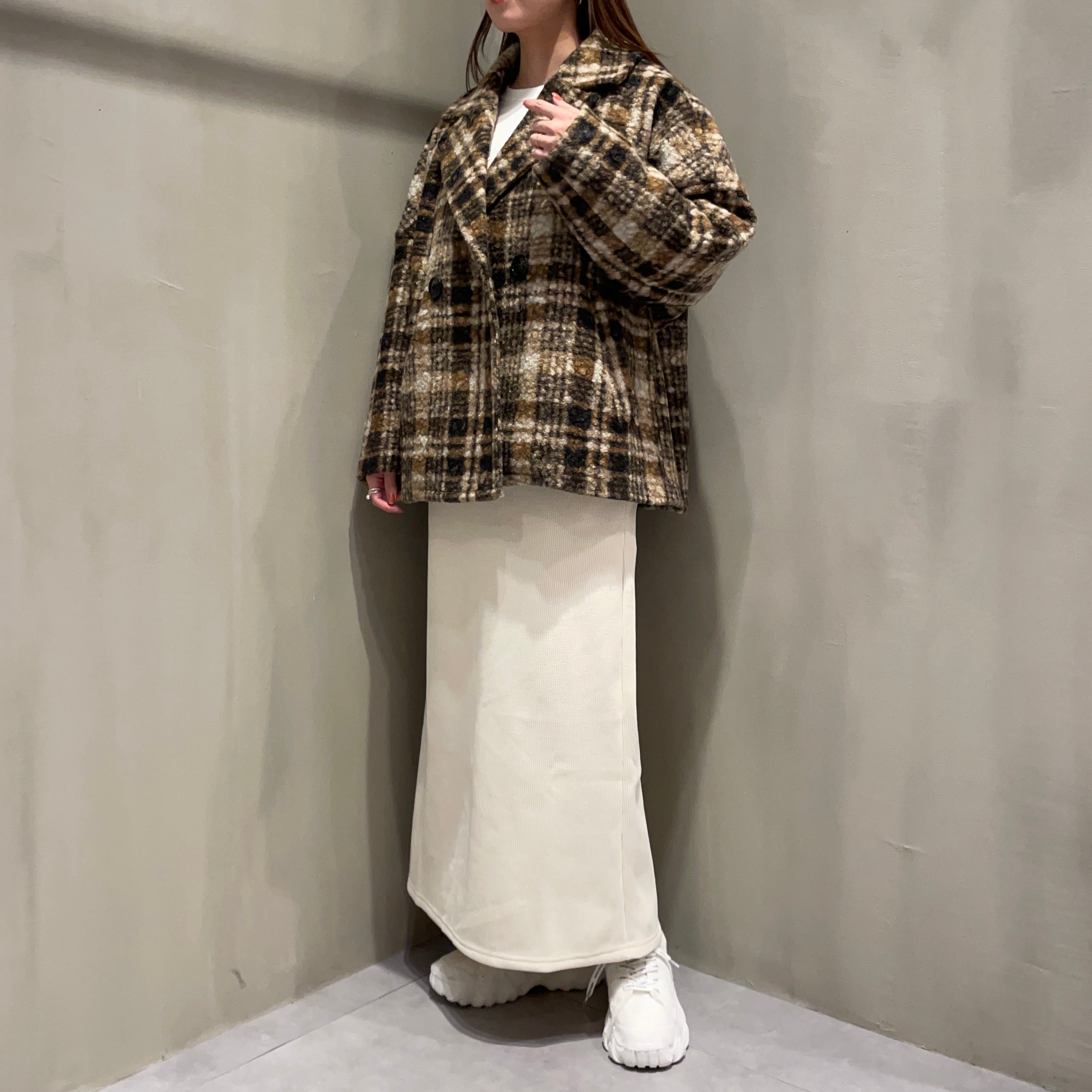 腰にかかる着丈感で、体型カバーとあたたかさを兼ね備えた1枚。