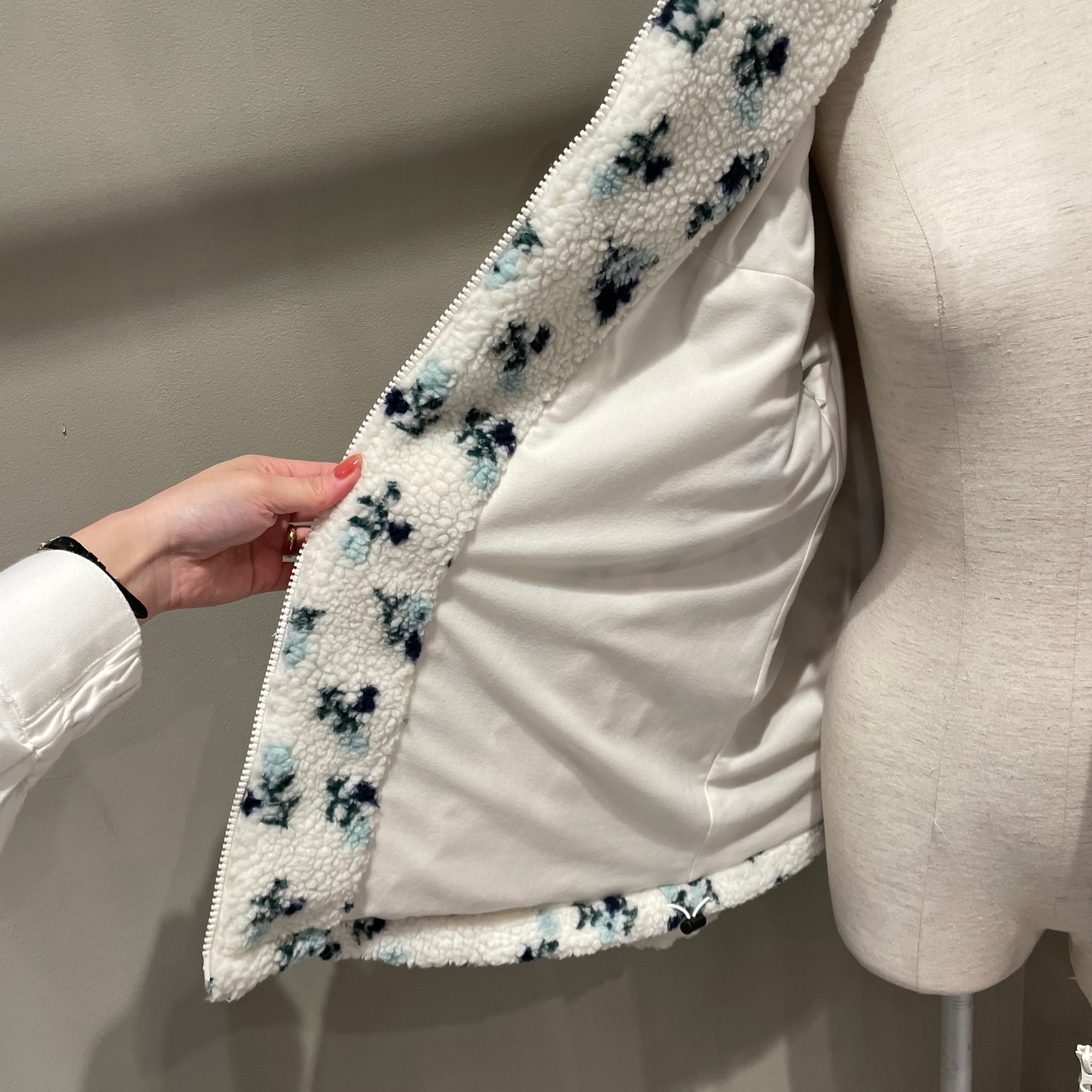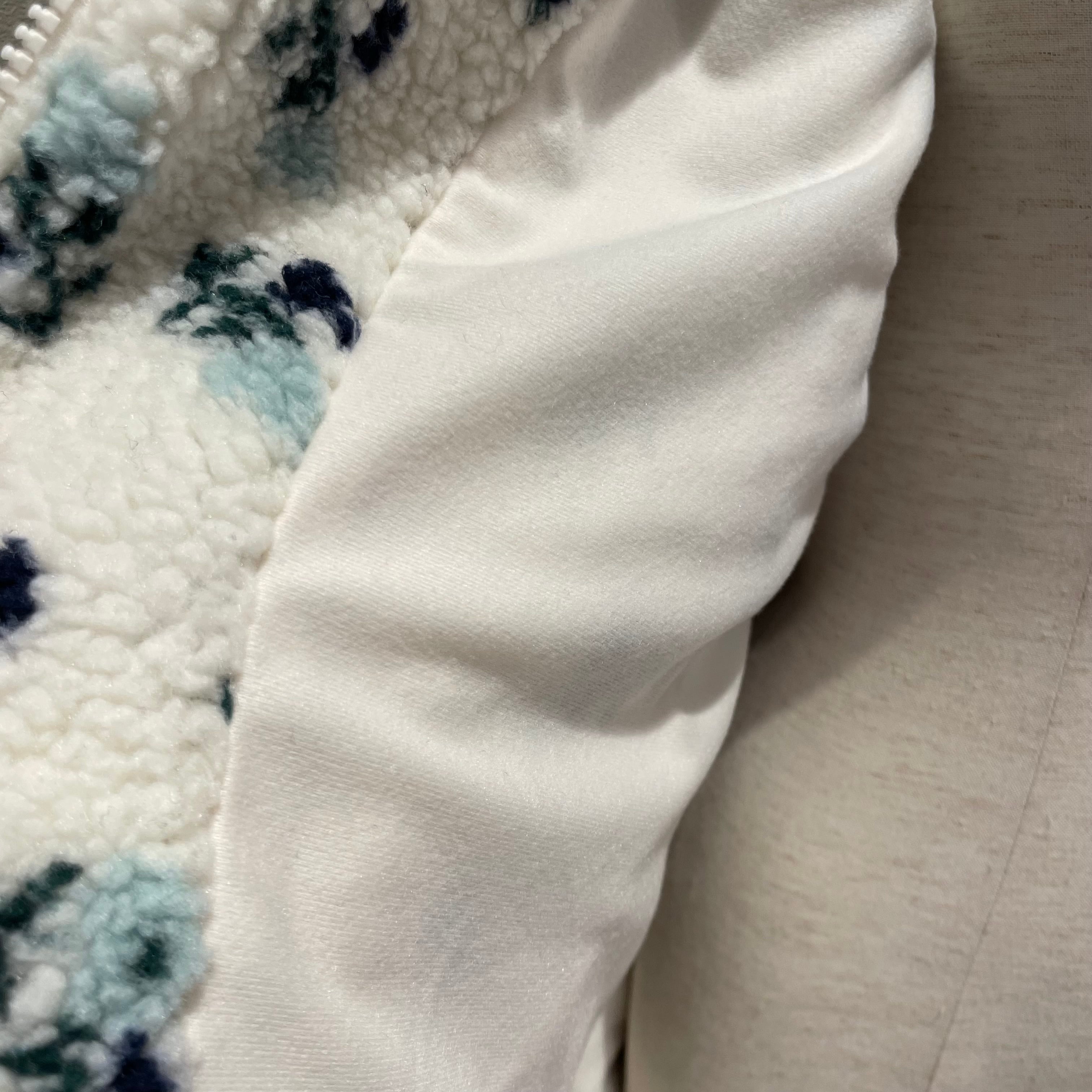 肉厚で軽いボアを使用し、裏地はフリース素材で更に保温性あり。