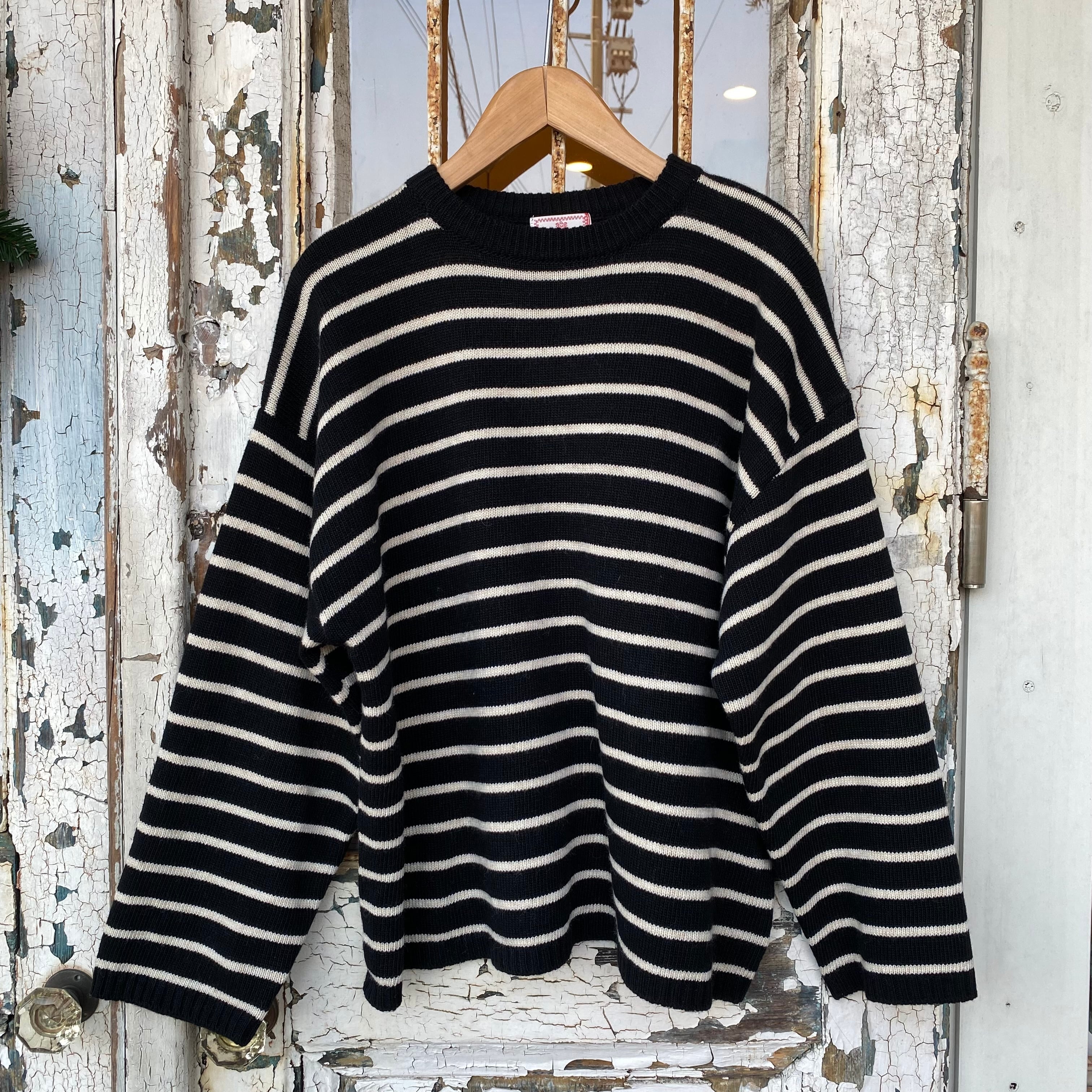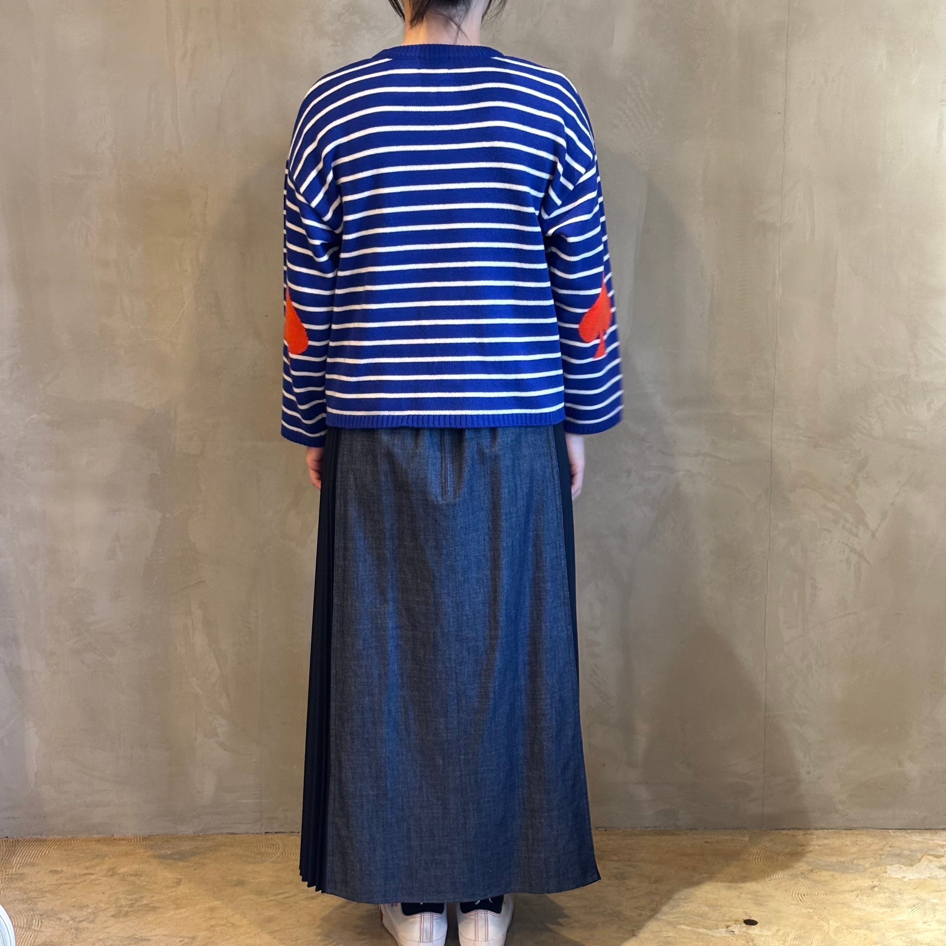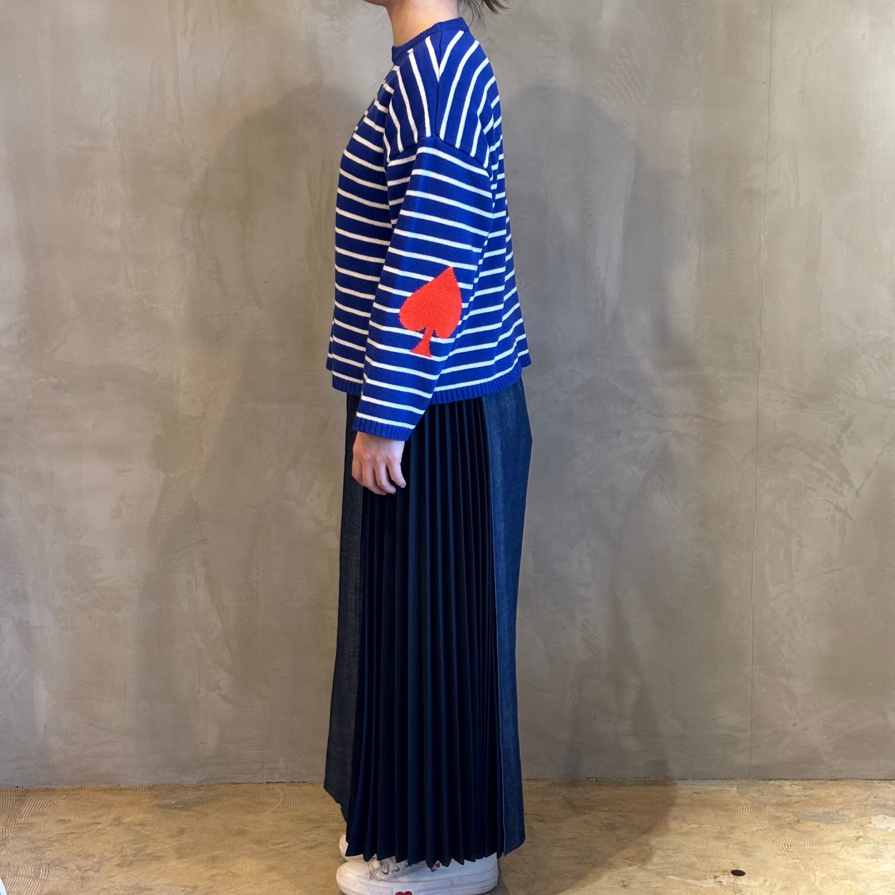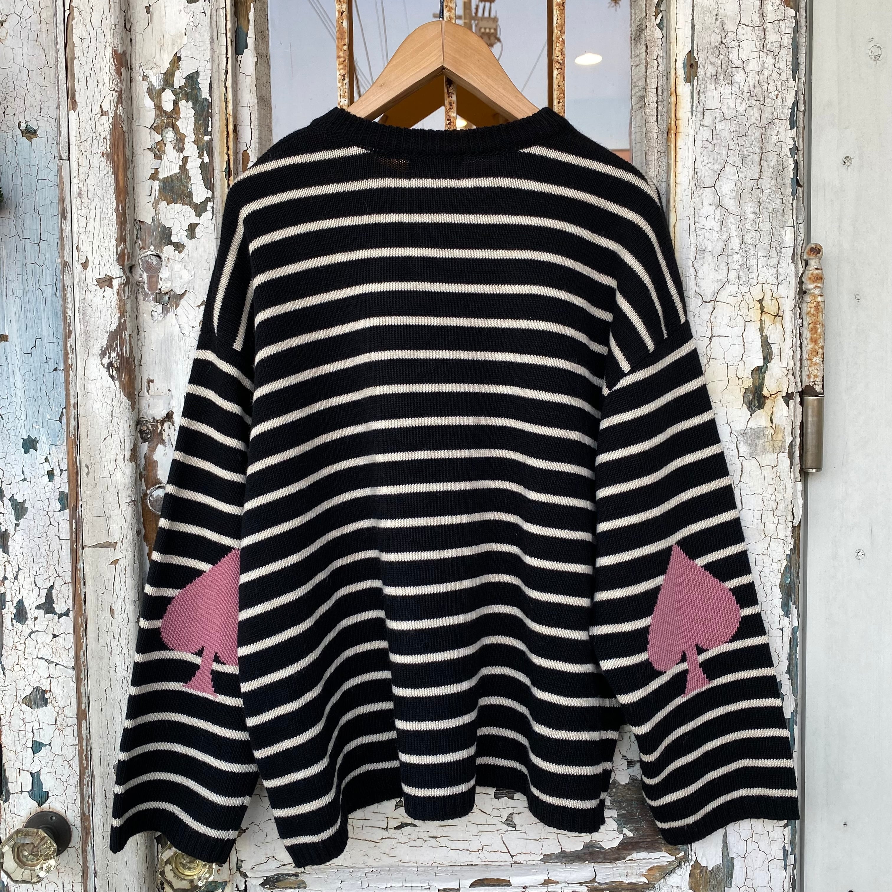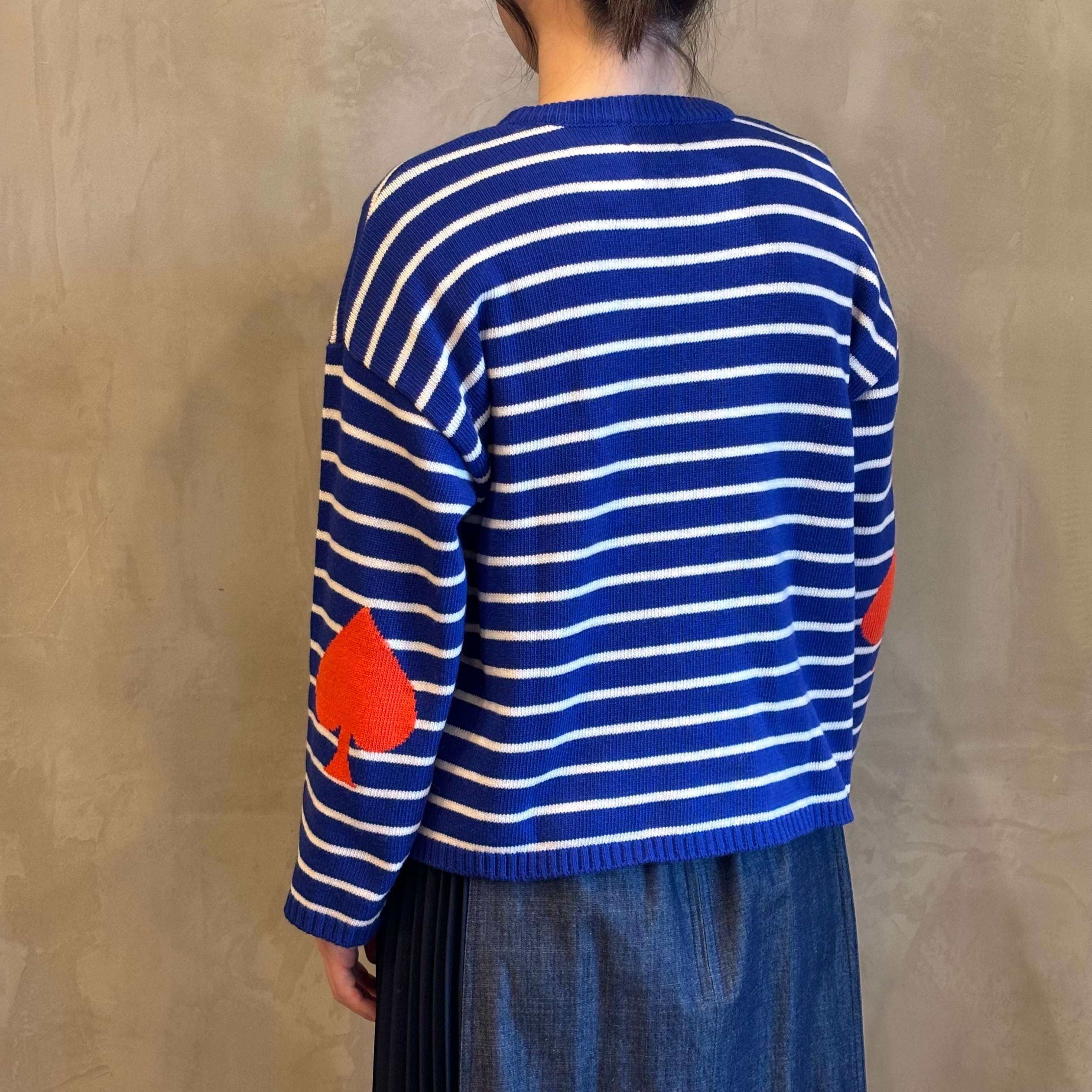 袖に編み込まれたスペードが可愛いポイントの、maomadeのしましまプルオーバー。