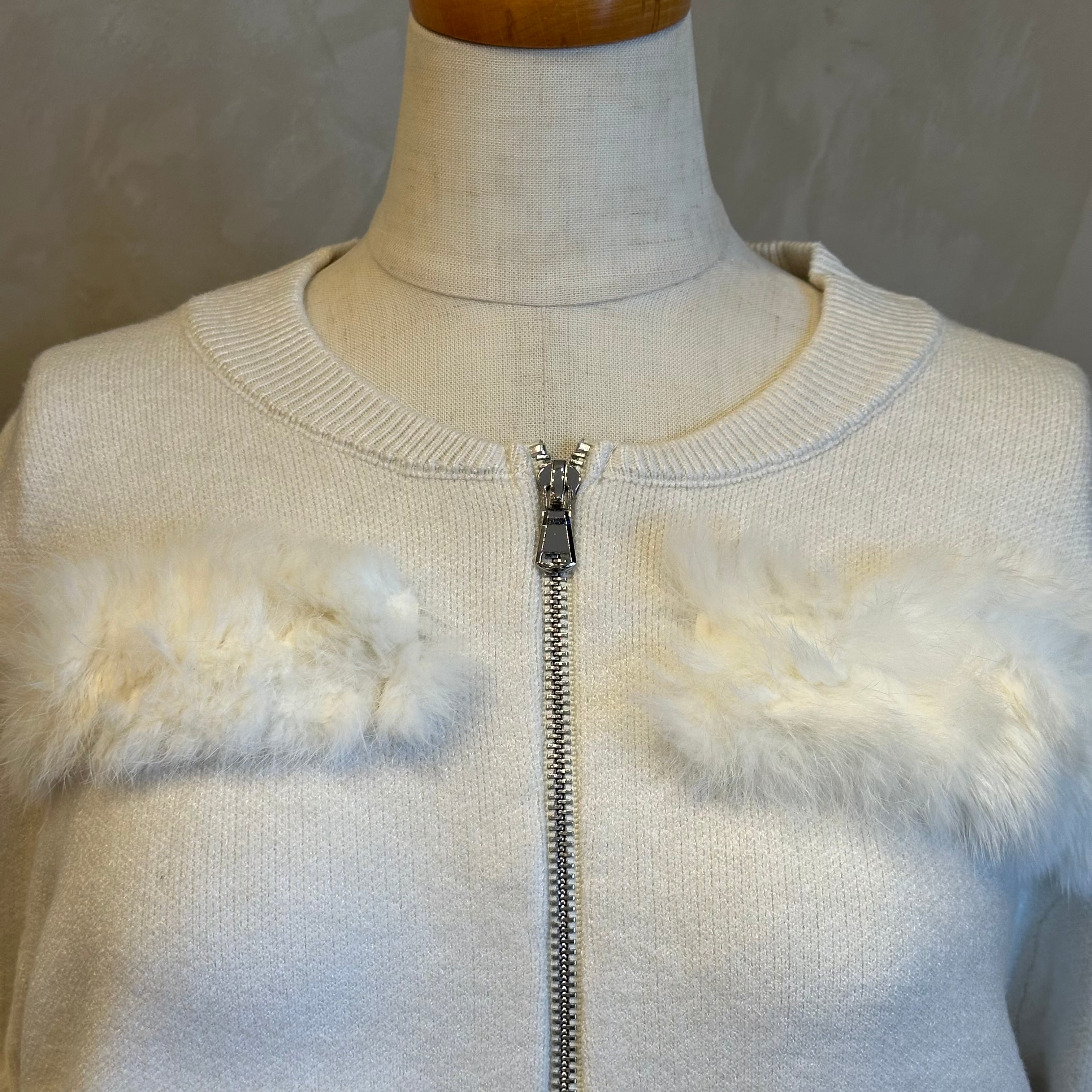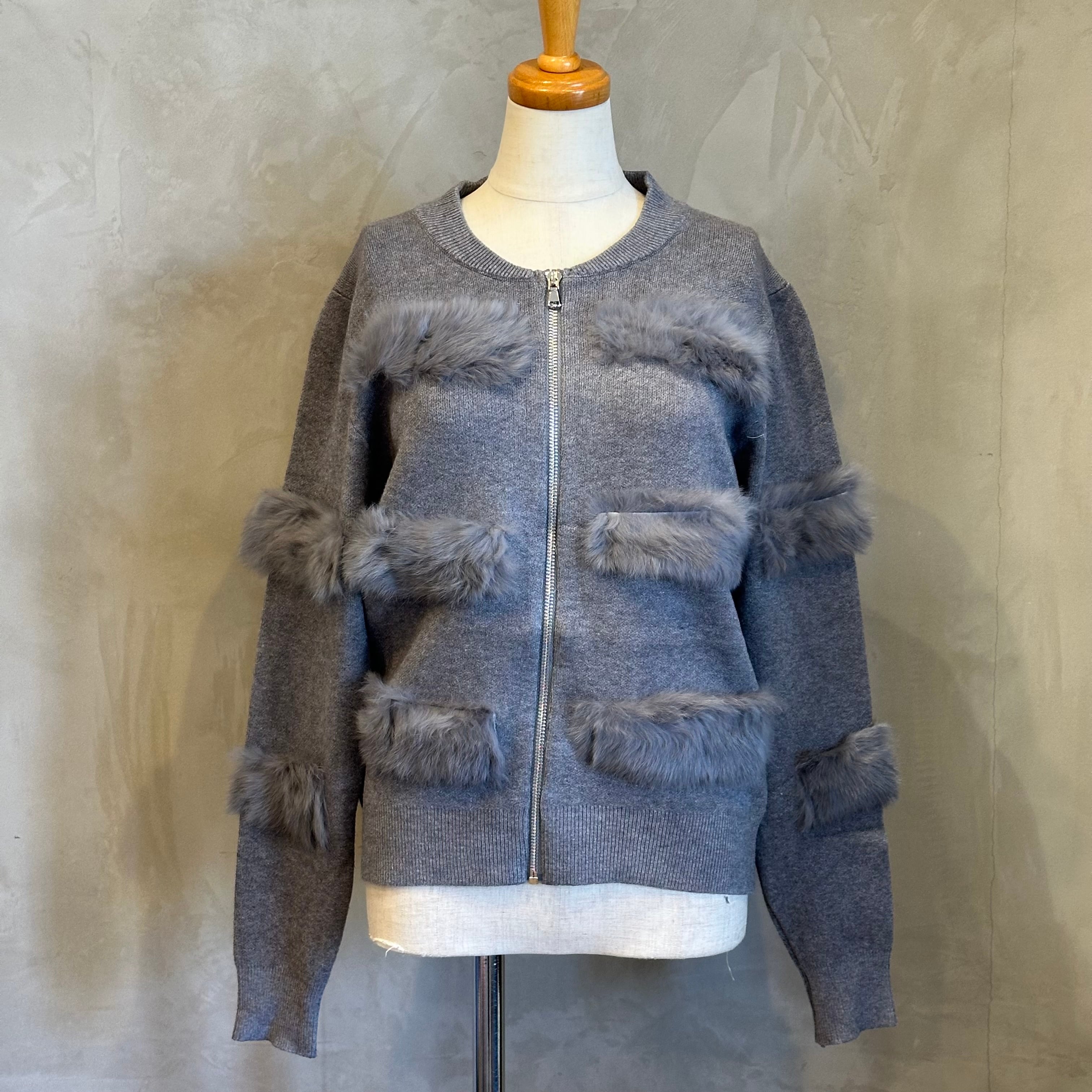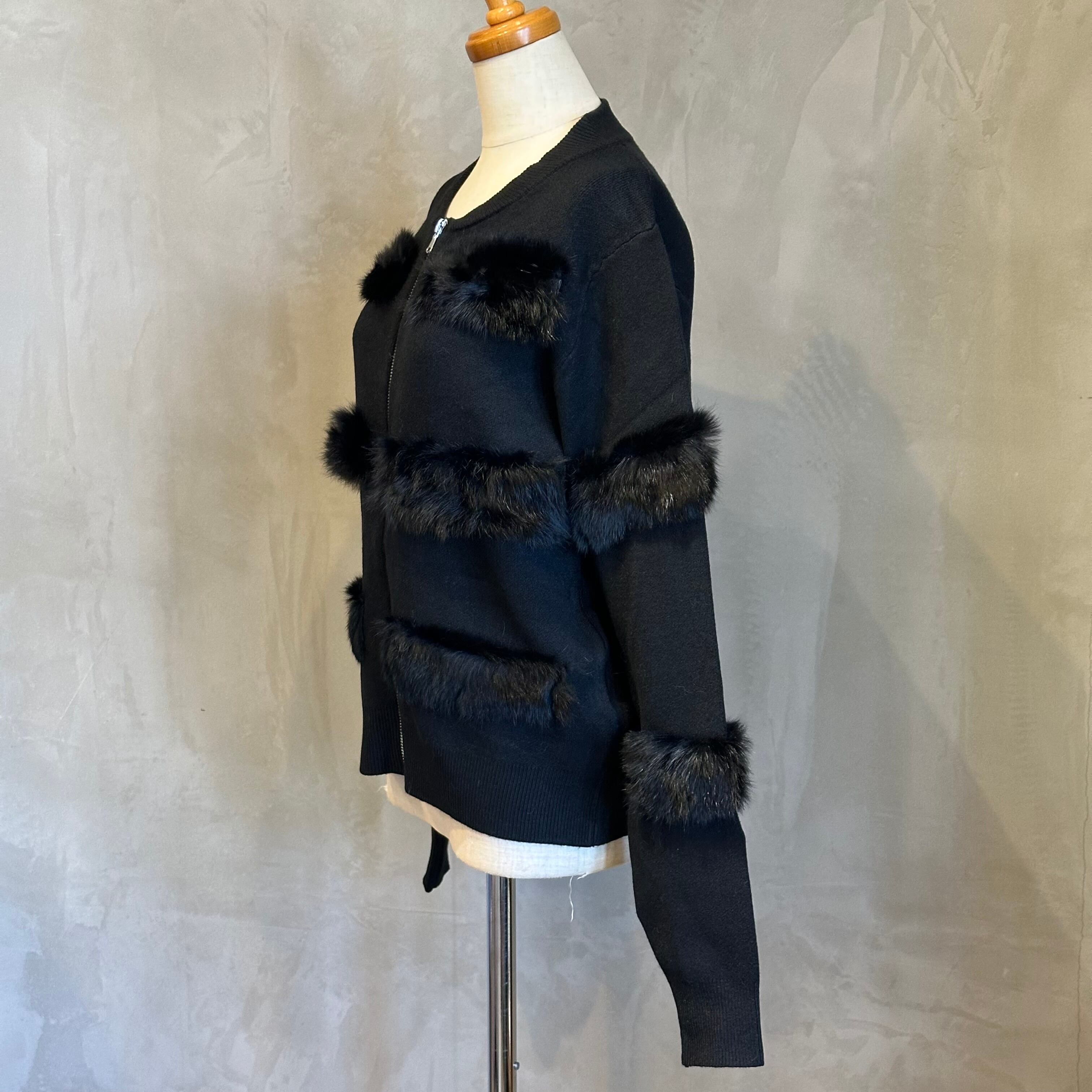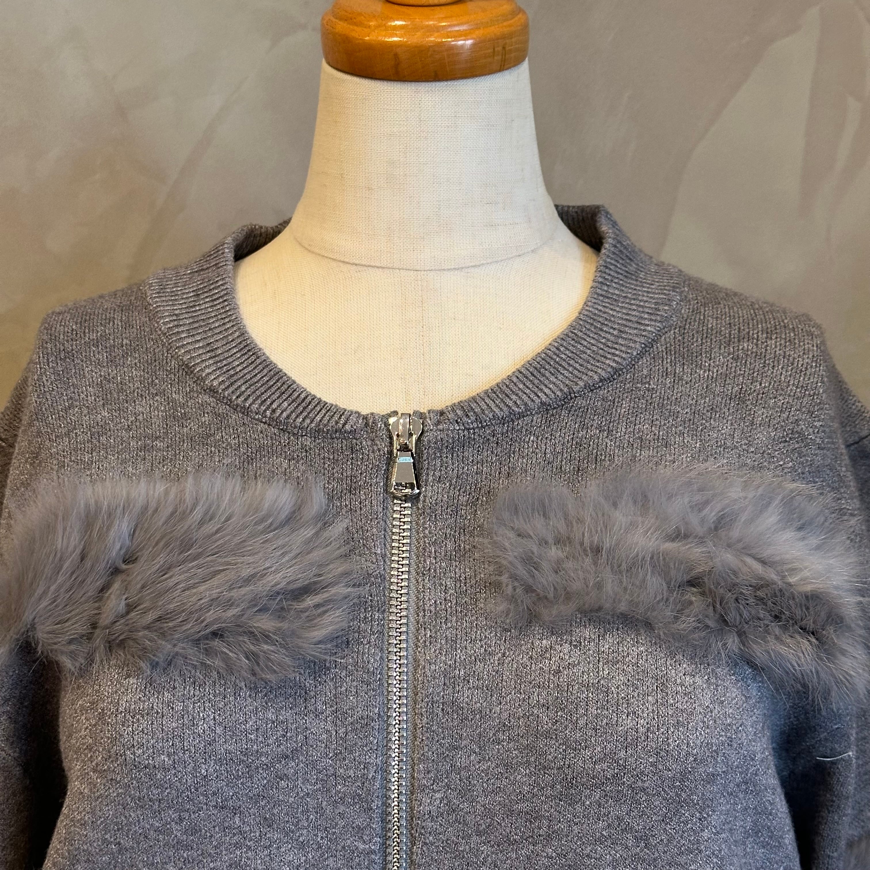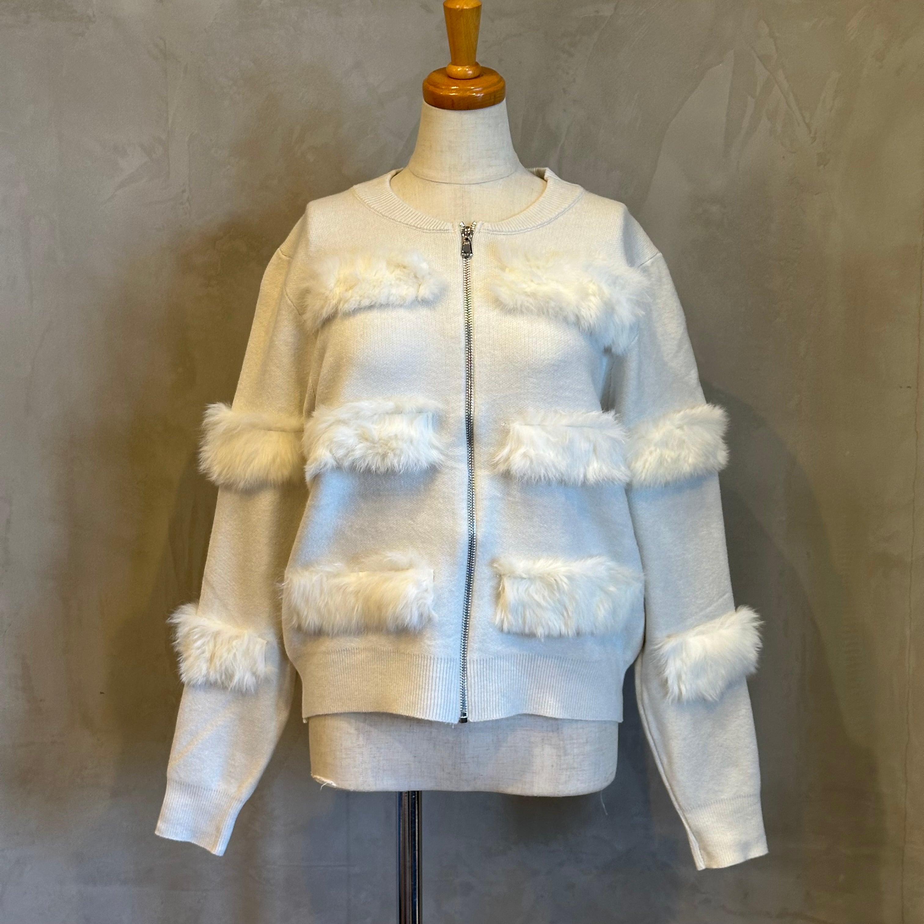 ふわふわのフェイクファーを贅沢にあしらったジップカーディガン。