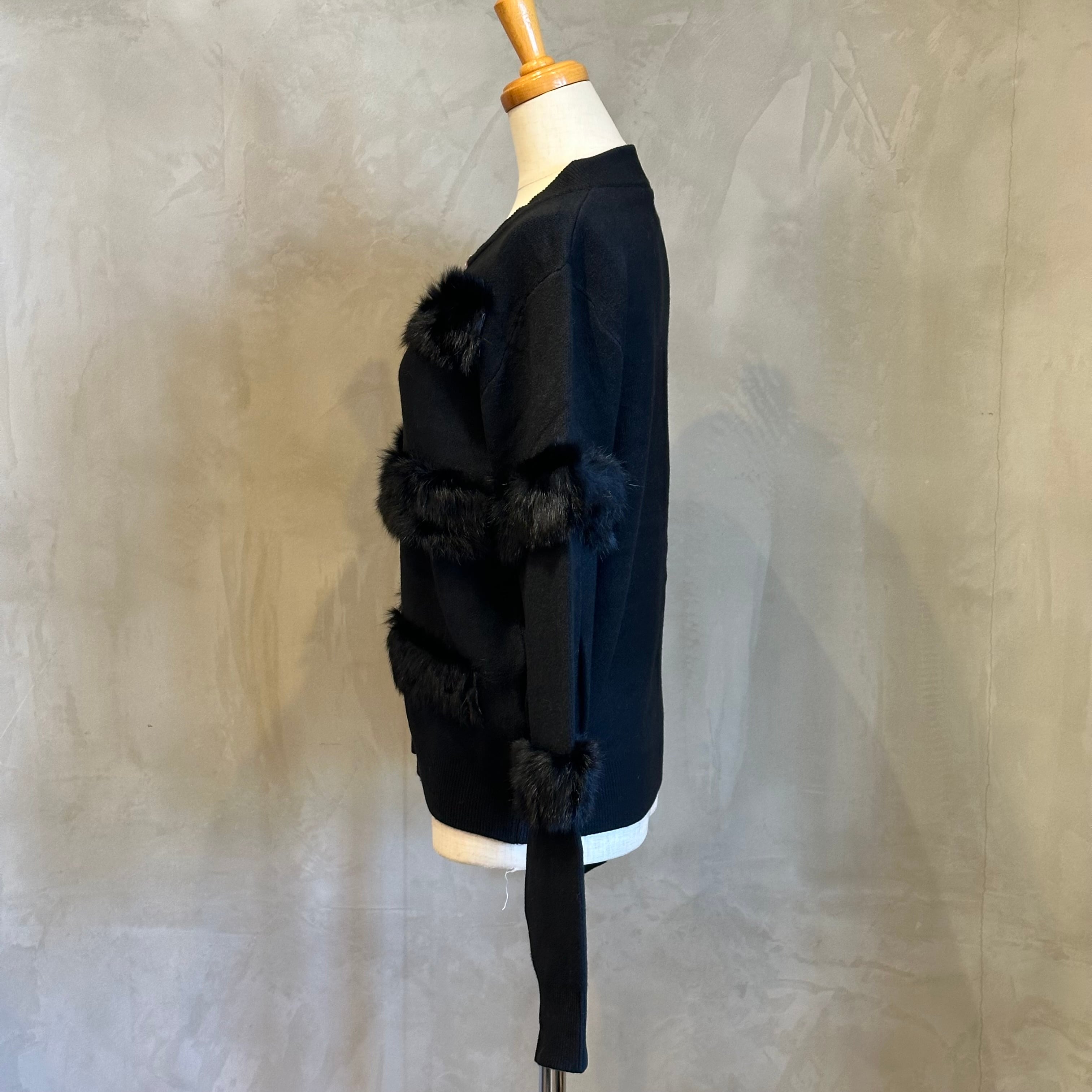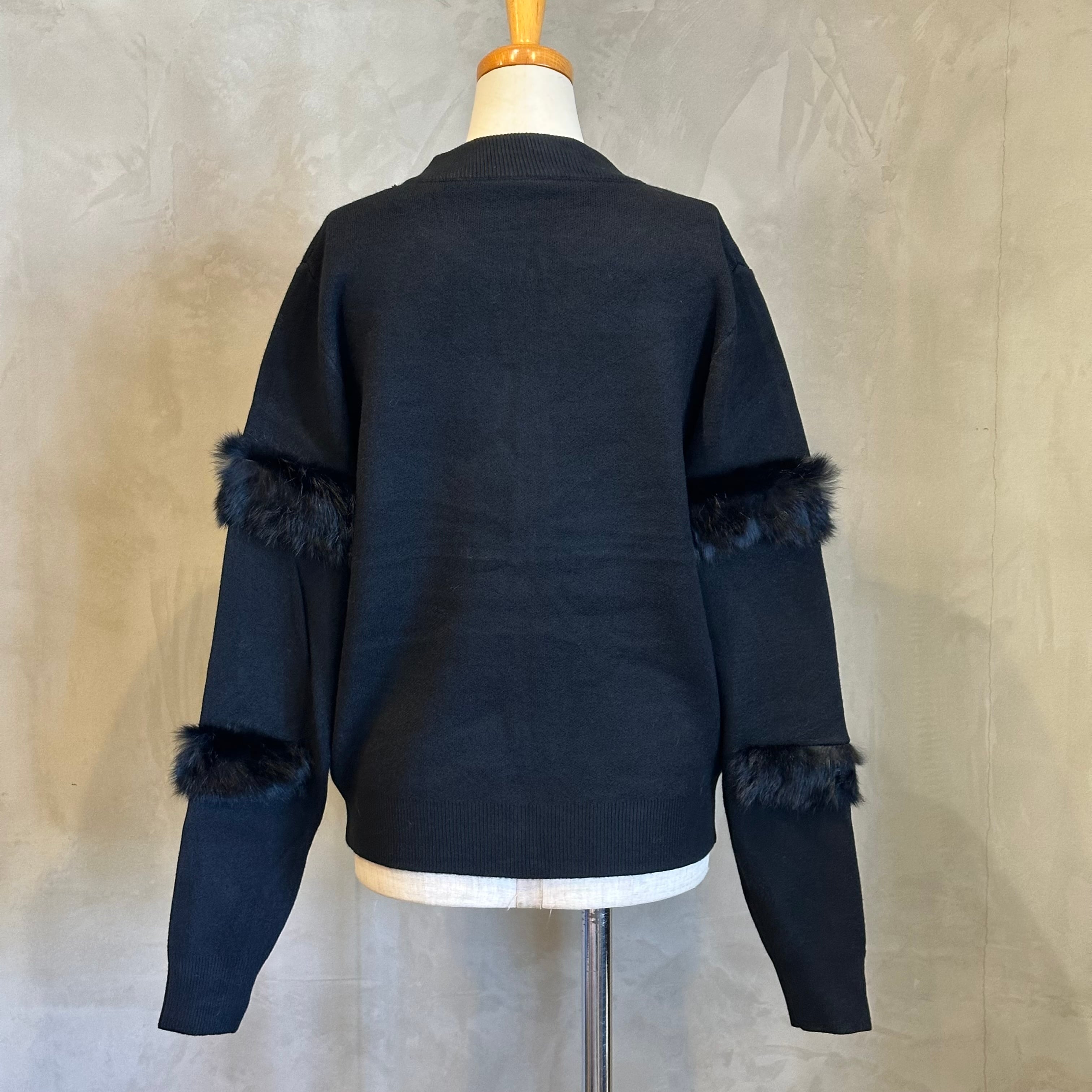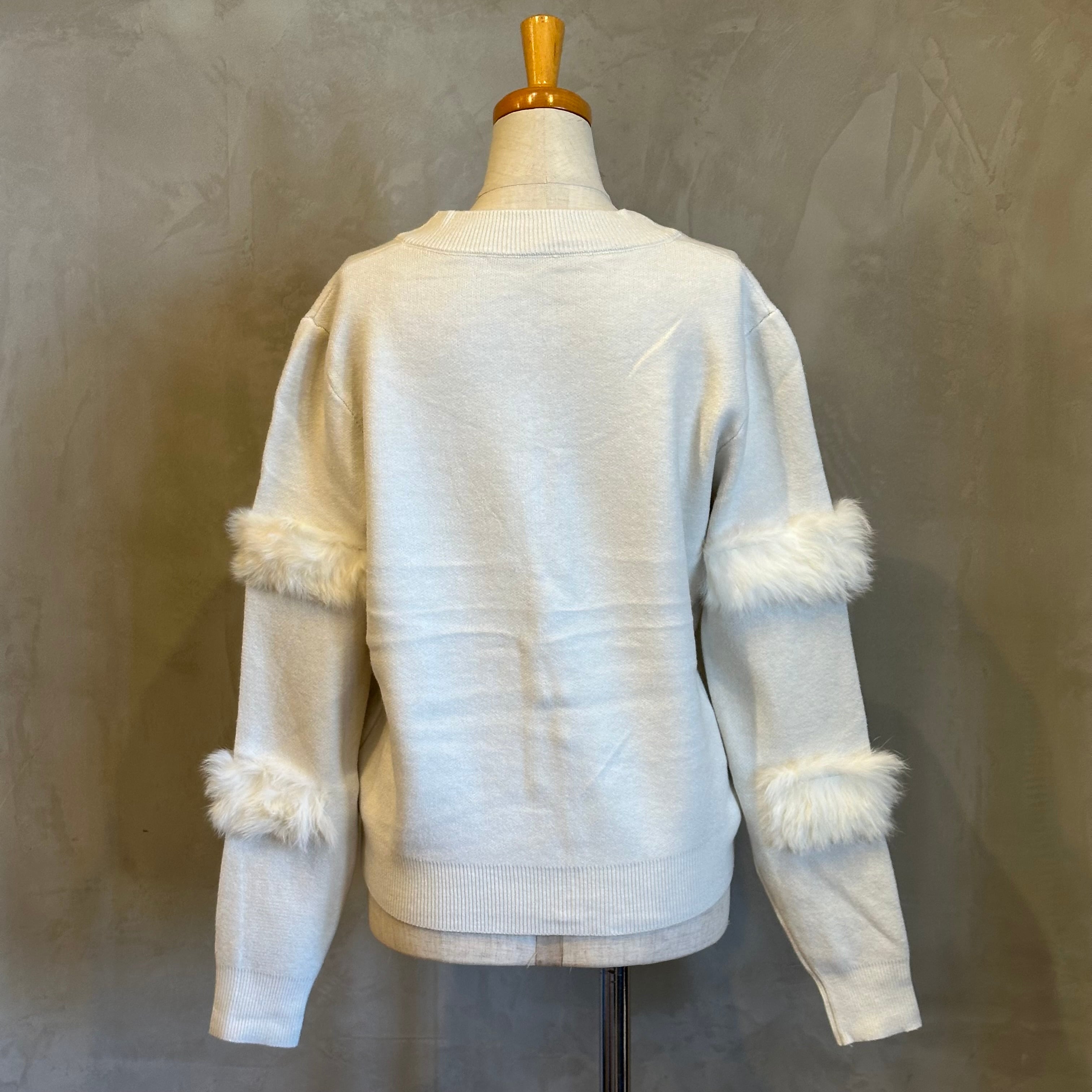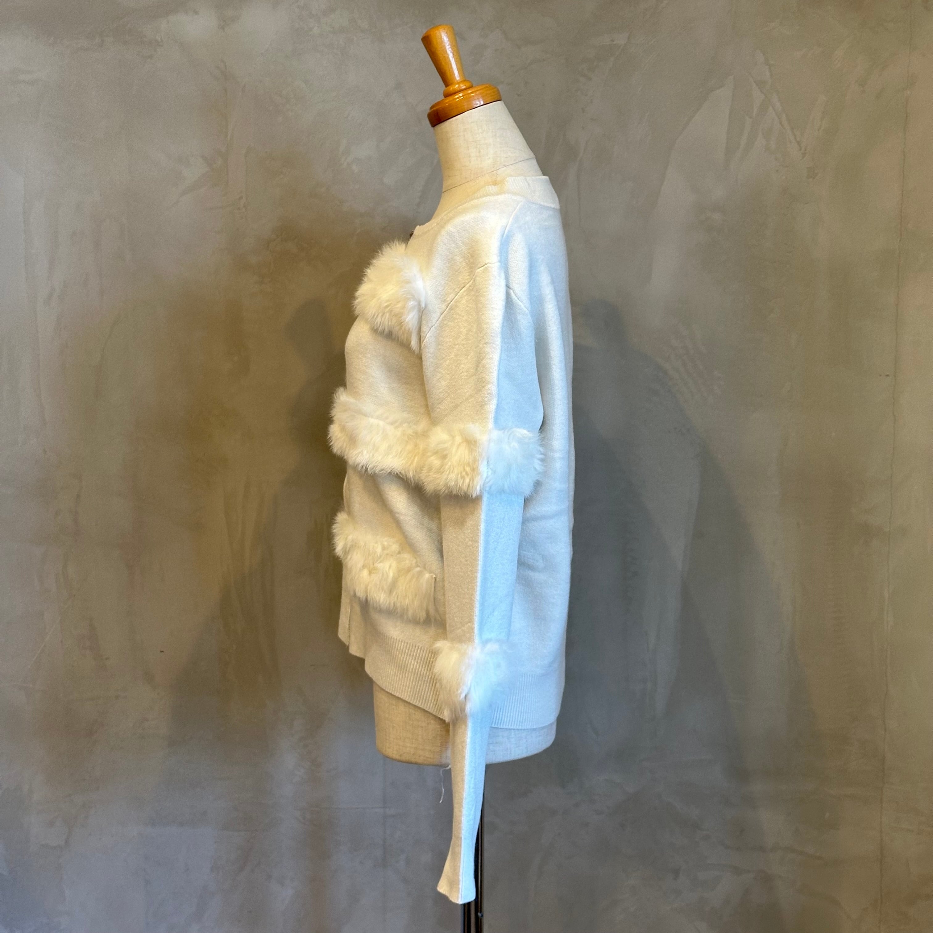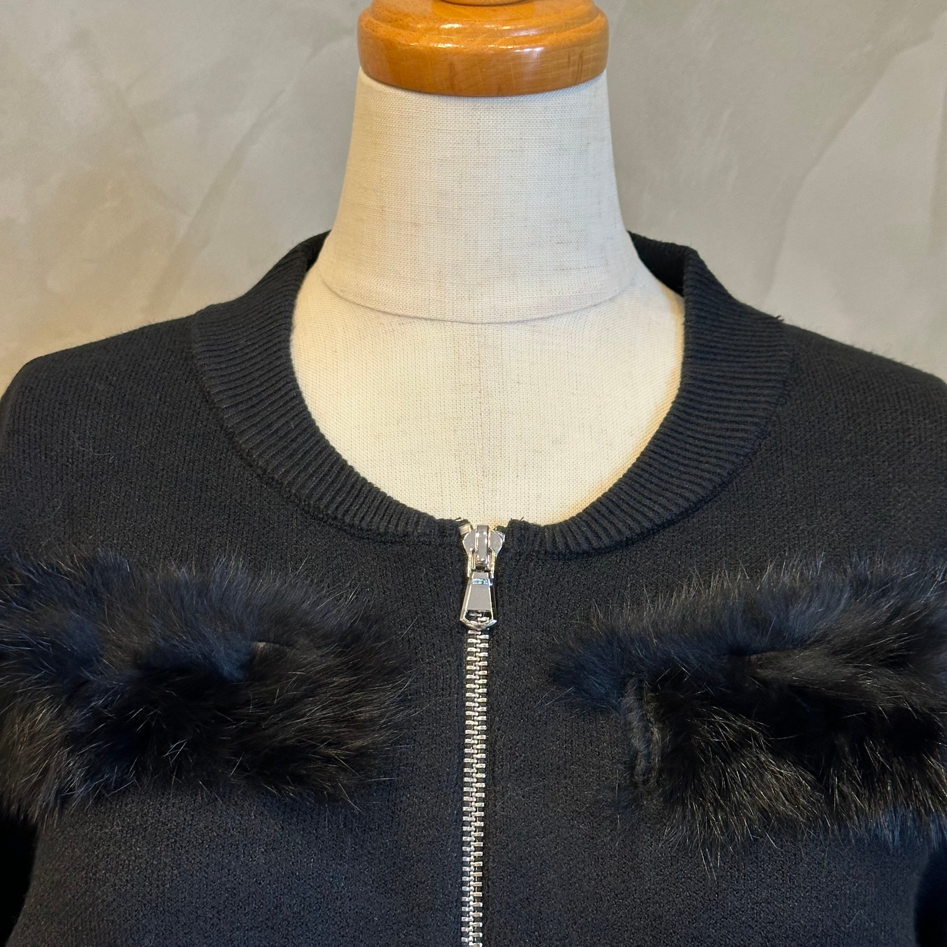 ふわふわのフェイクファーを贅沢にあしらったジップカーディガン。