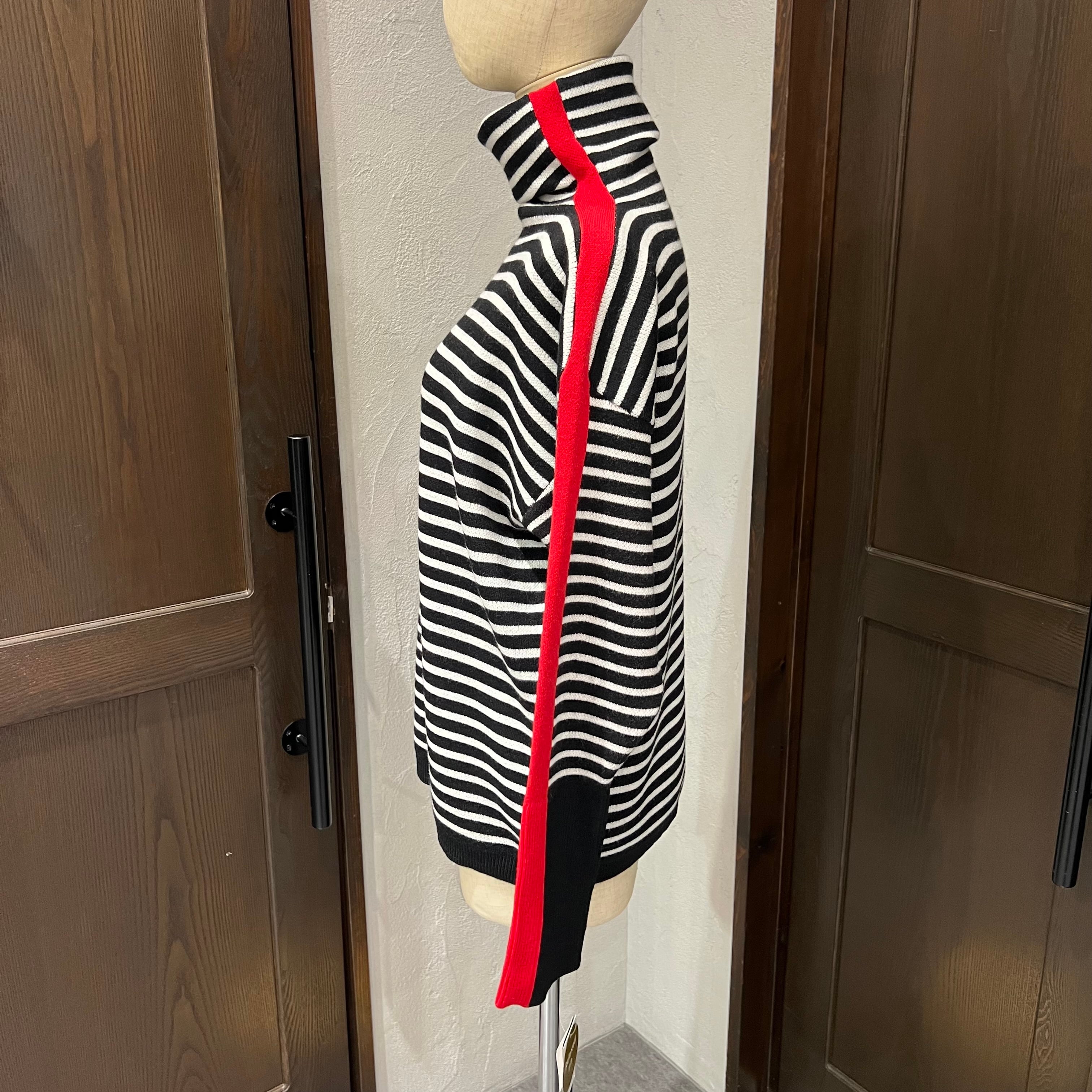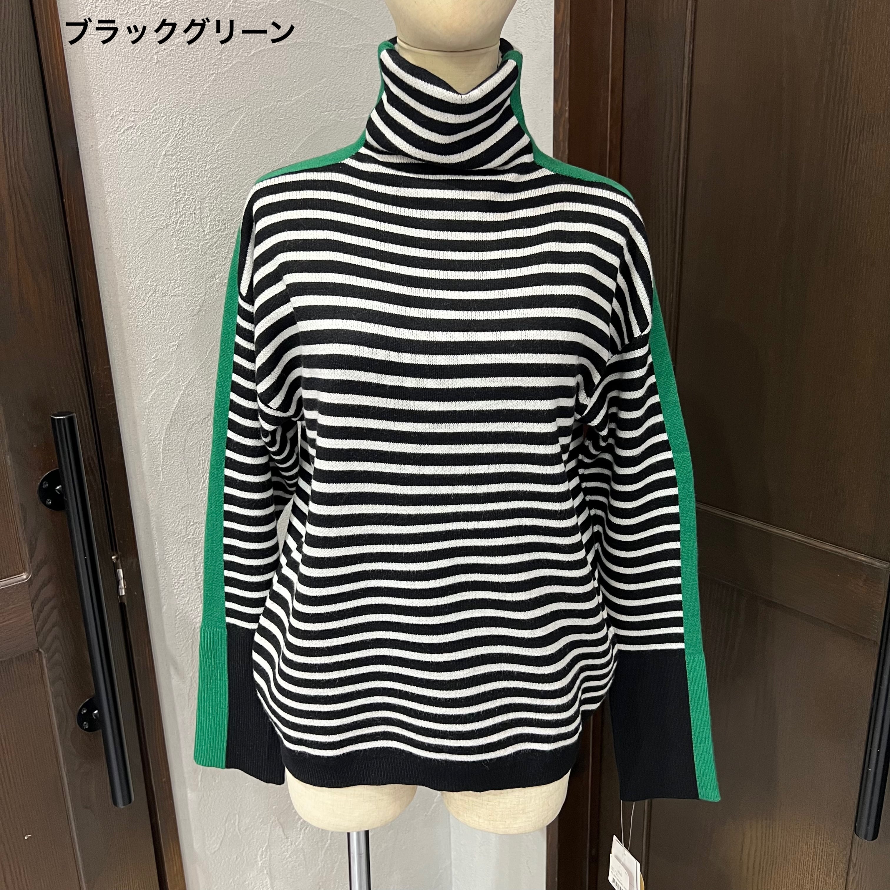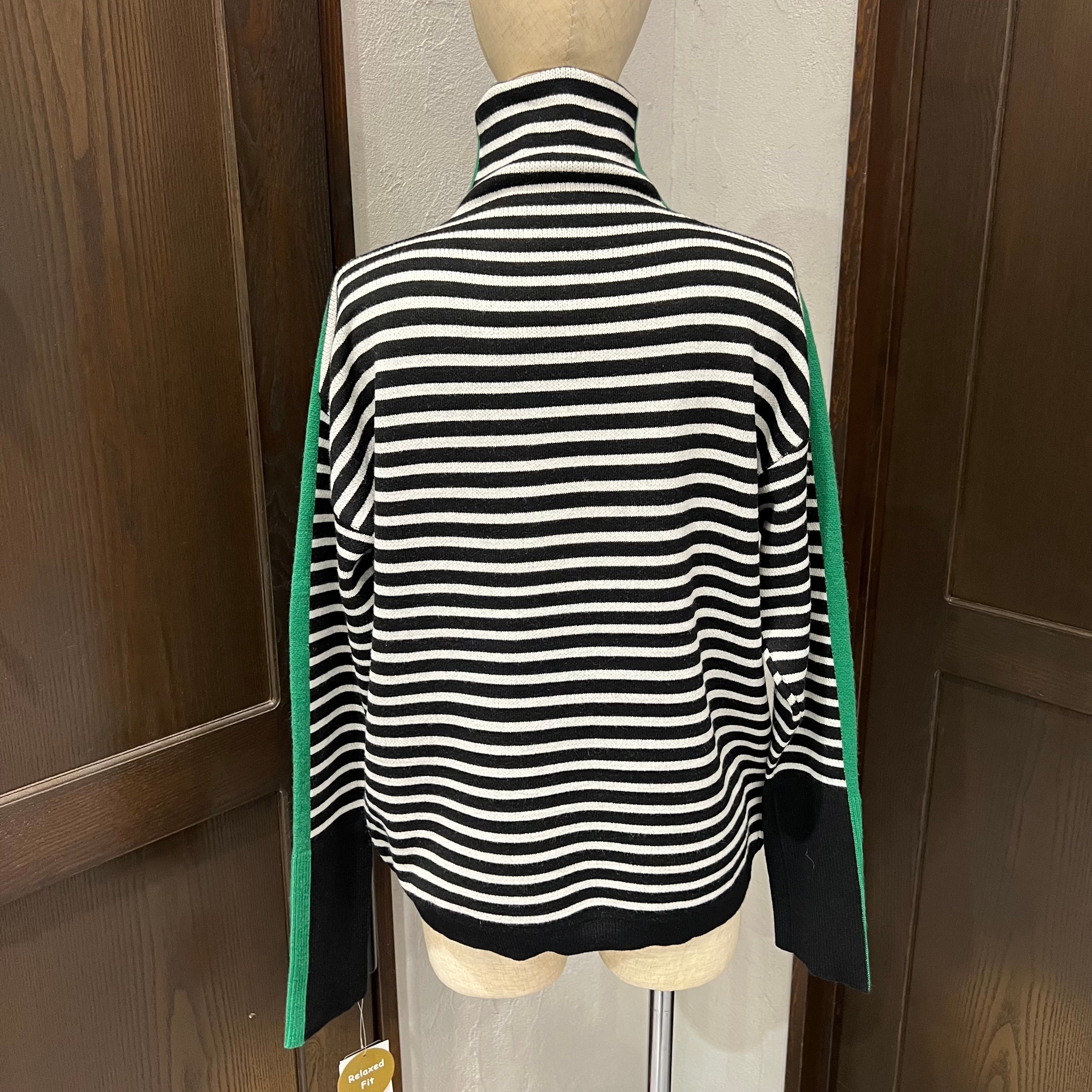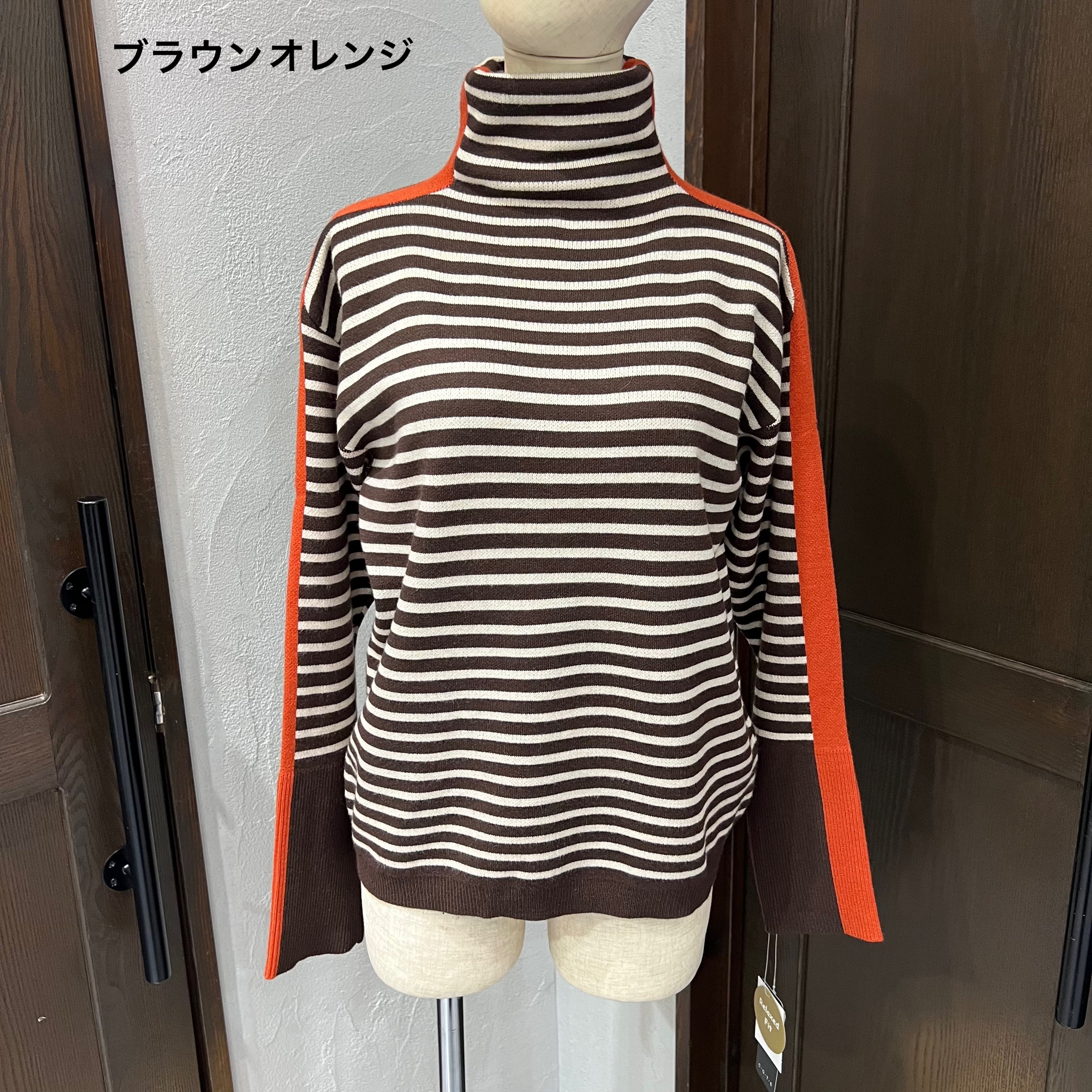 ほどよいゆとり感で着やすい、ボーダー柄のタートルニット。