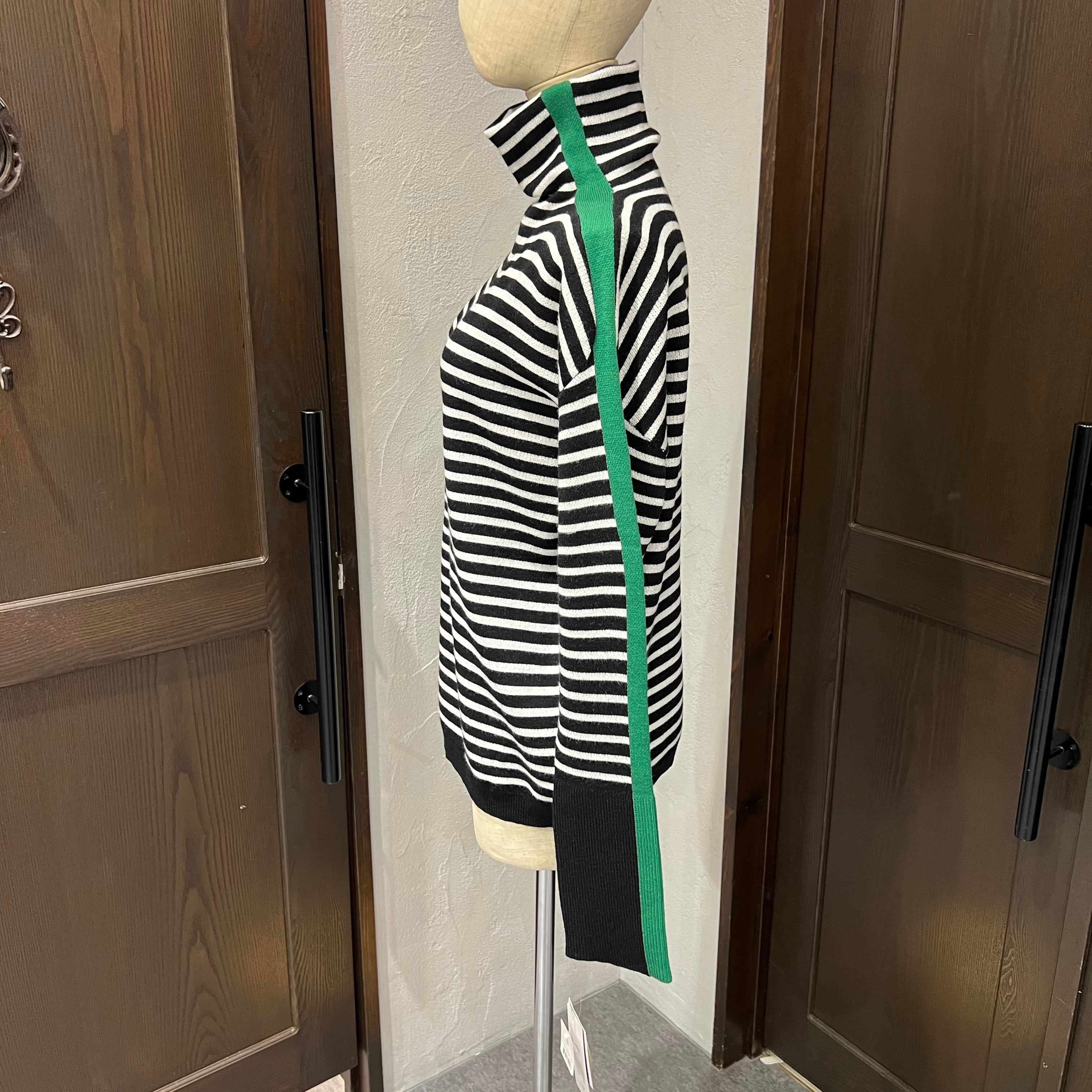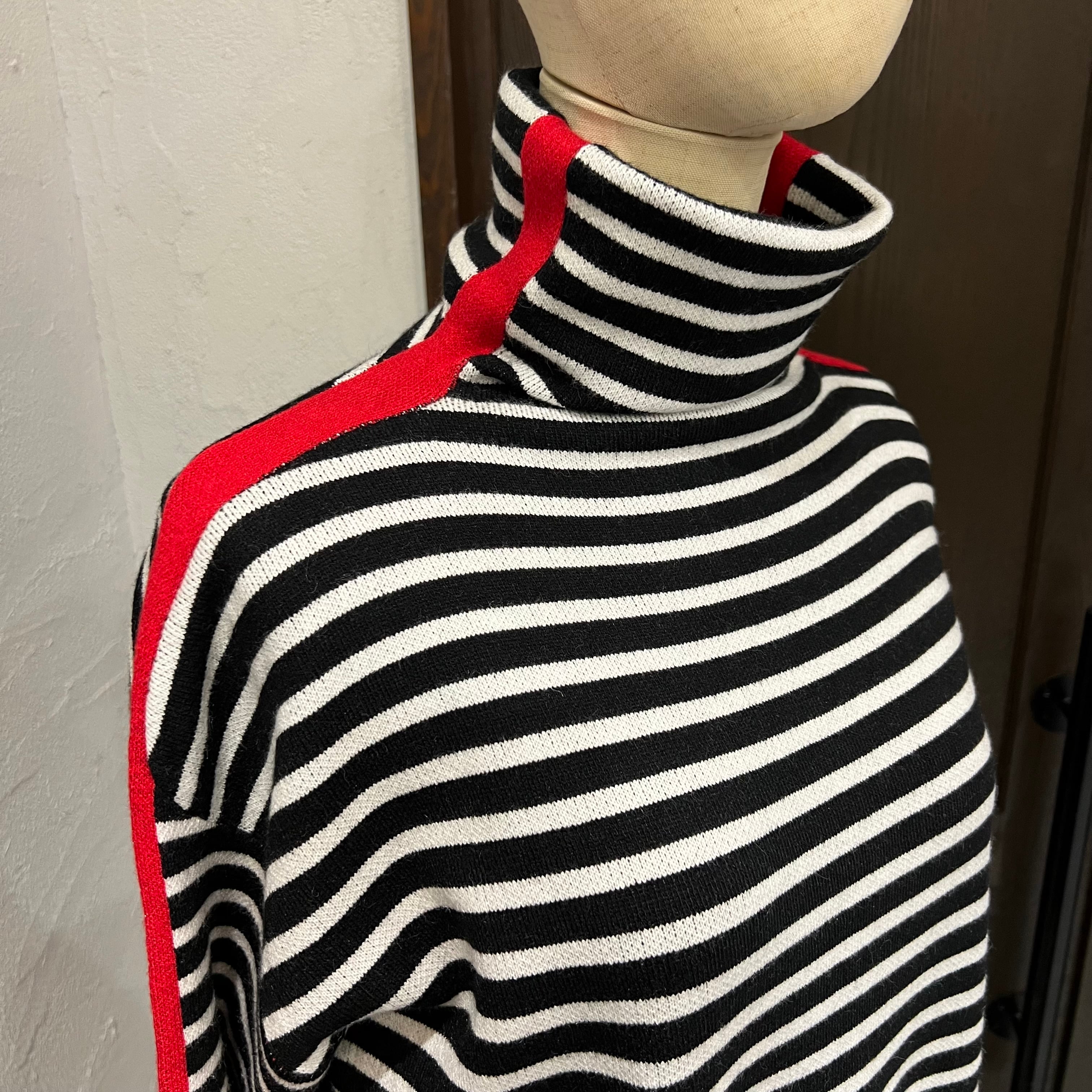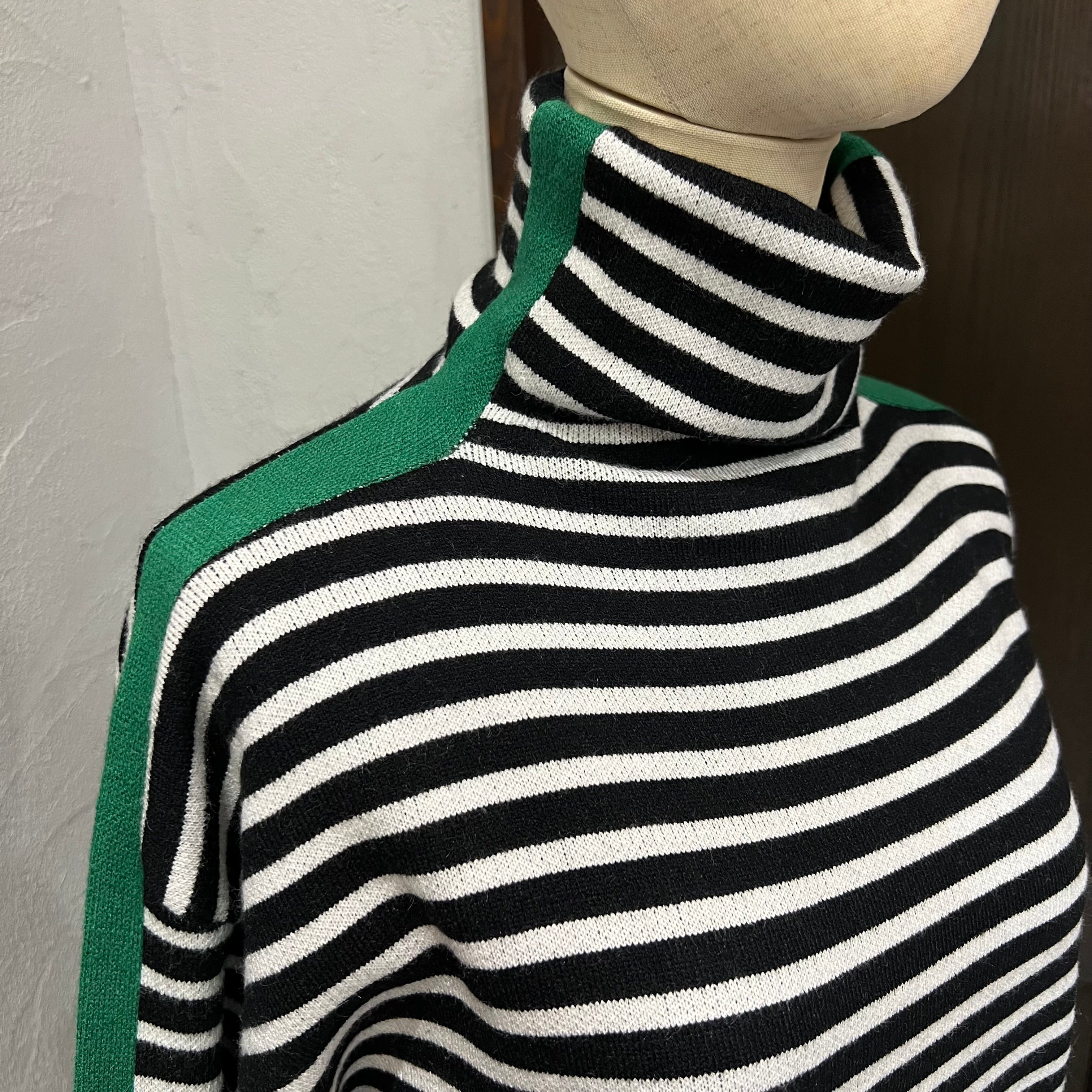 ほどよいゆとり感で着やすい、ボーダー柄のタートルニット。
