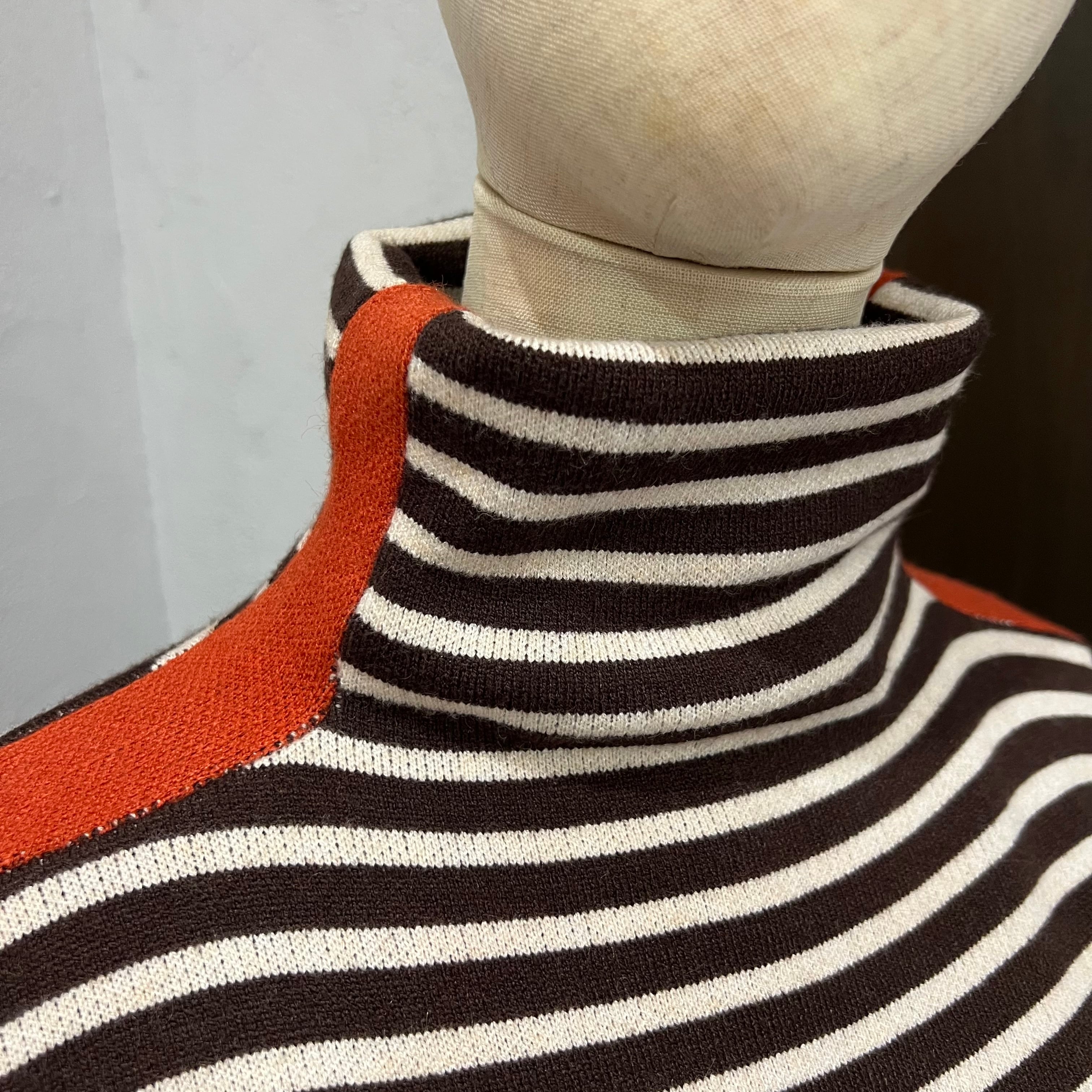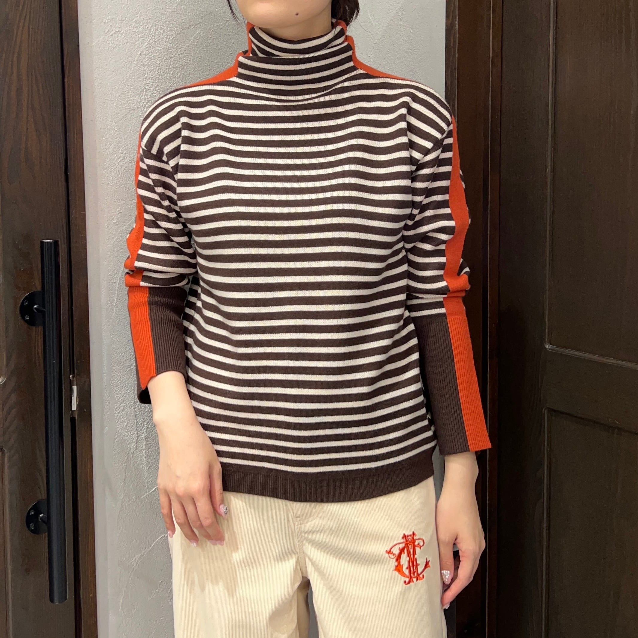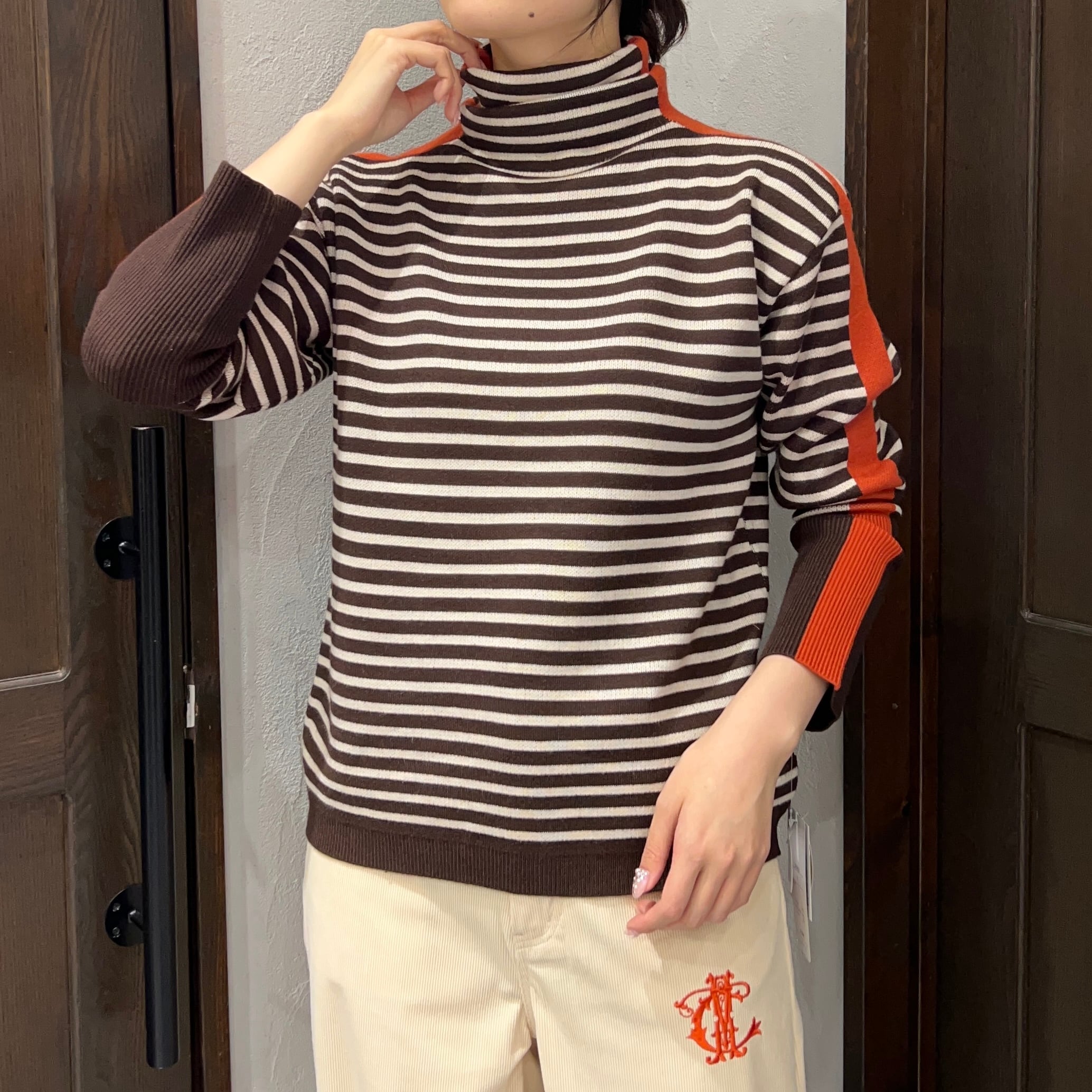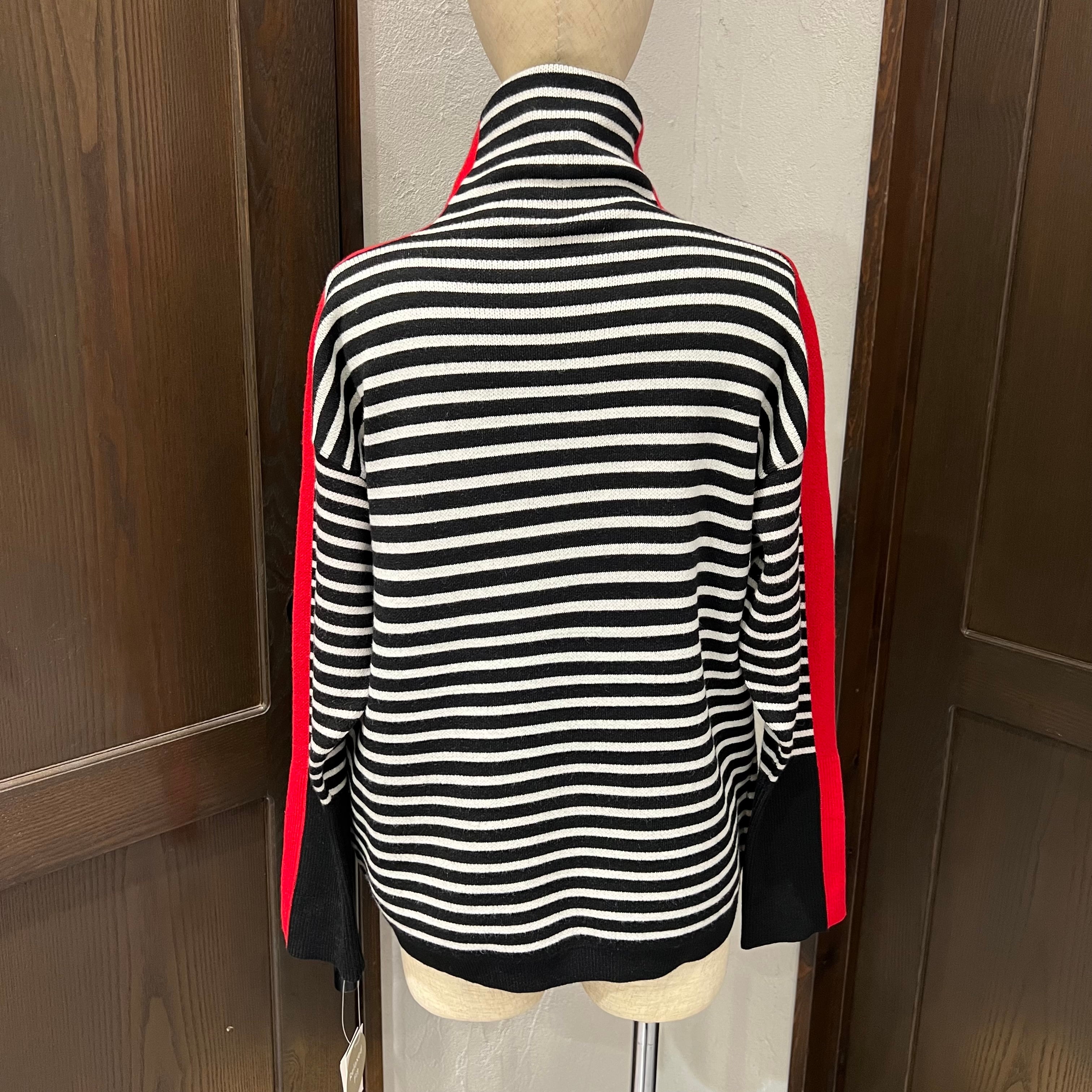ほどよいゆとり感で着やすい、ボーダー柄のタートルニット。