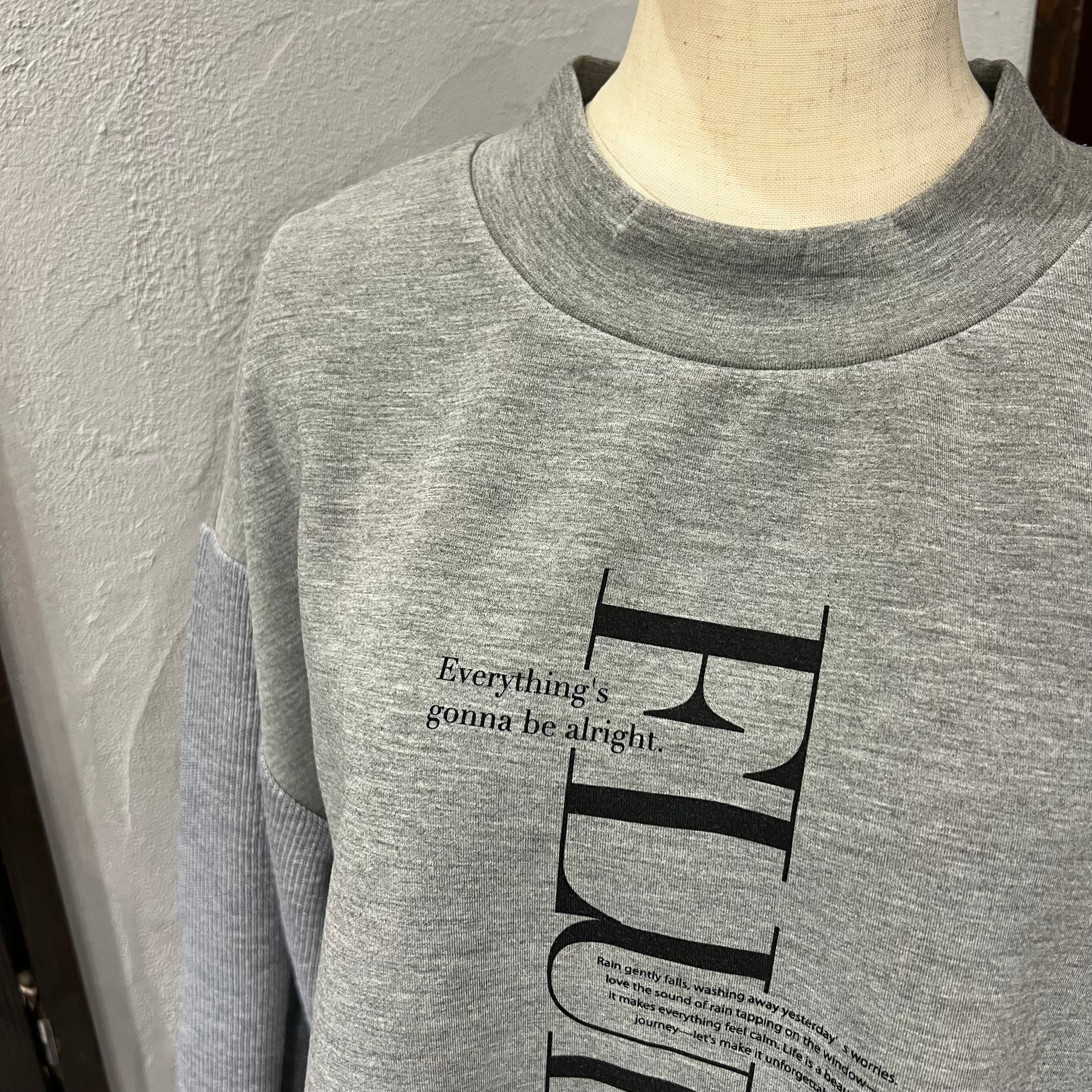 フロントの大胆な縦ロゴが目を惹き、1枚でコーデの主役になるデザインです。