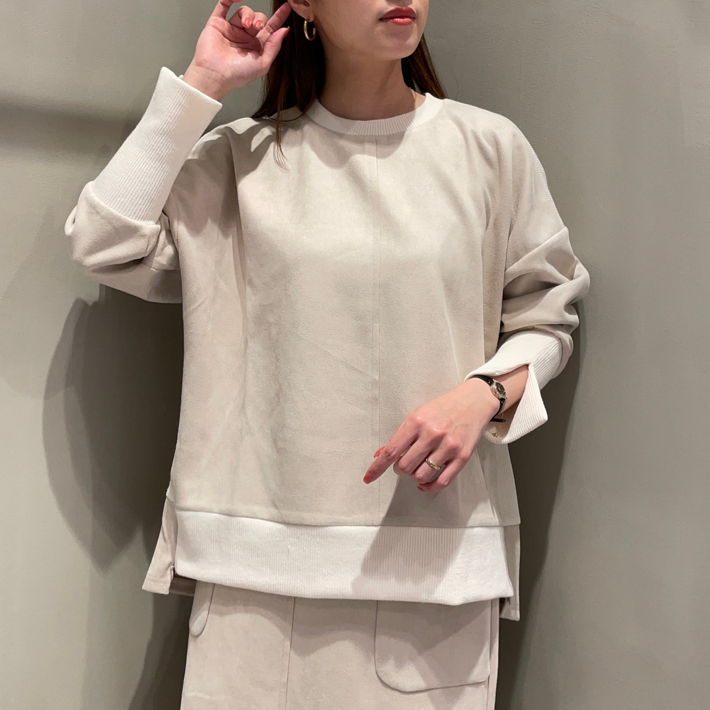 シンプルトップスから配色使いを見せてカジュアル使いにも幅広くお使いいただけます。