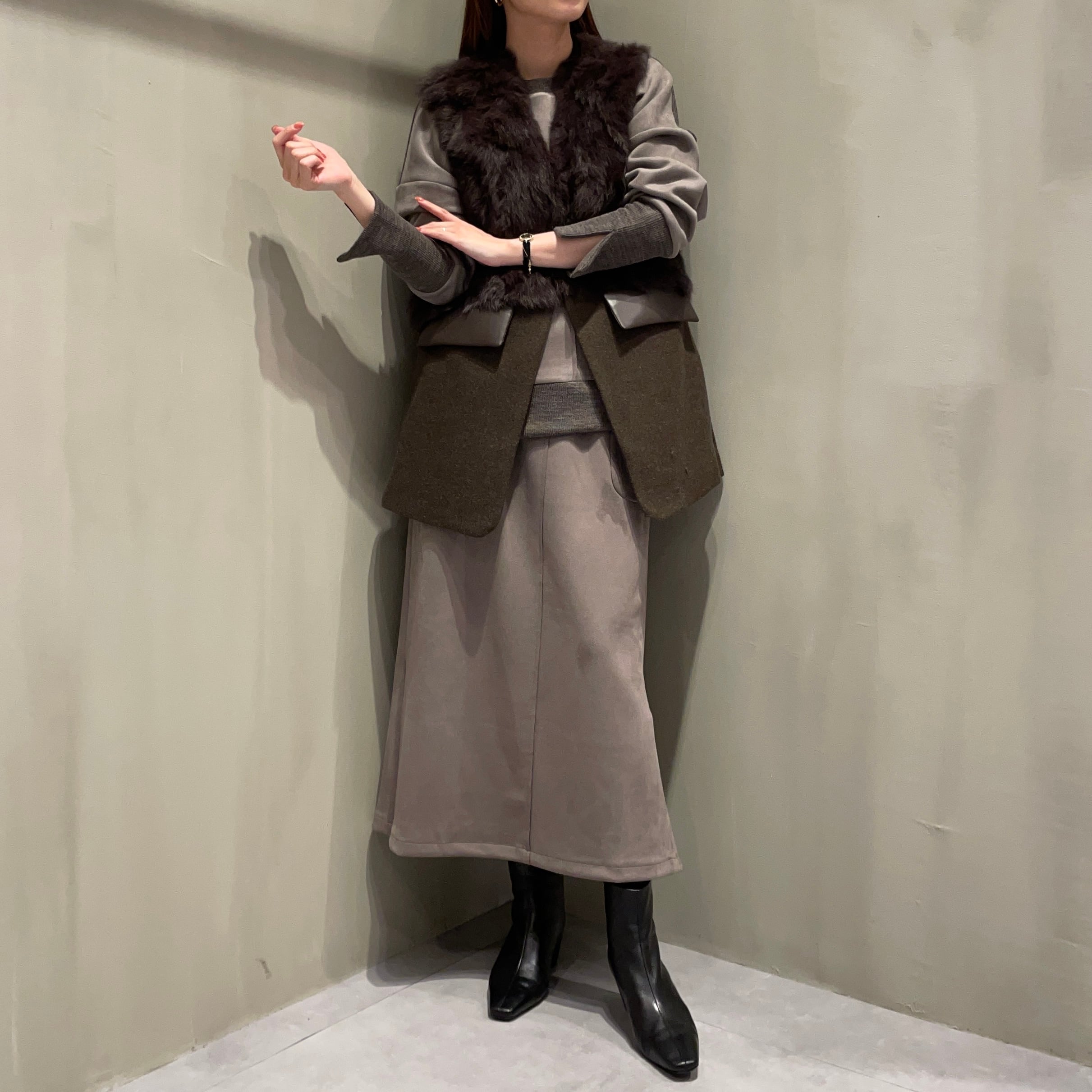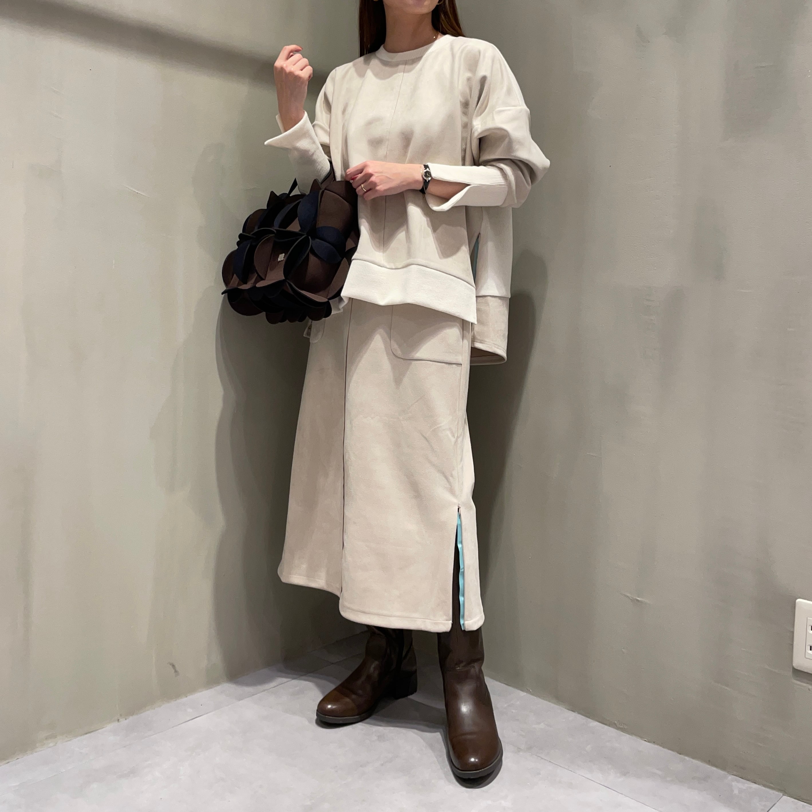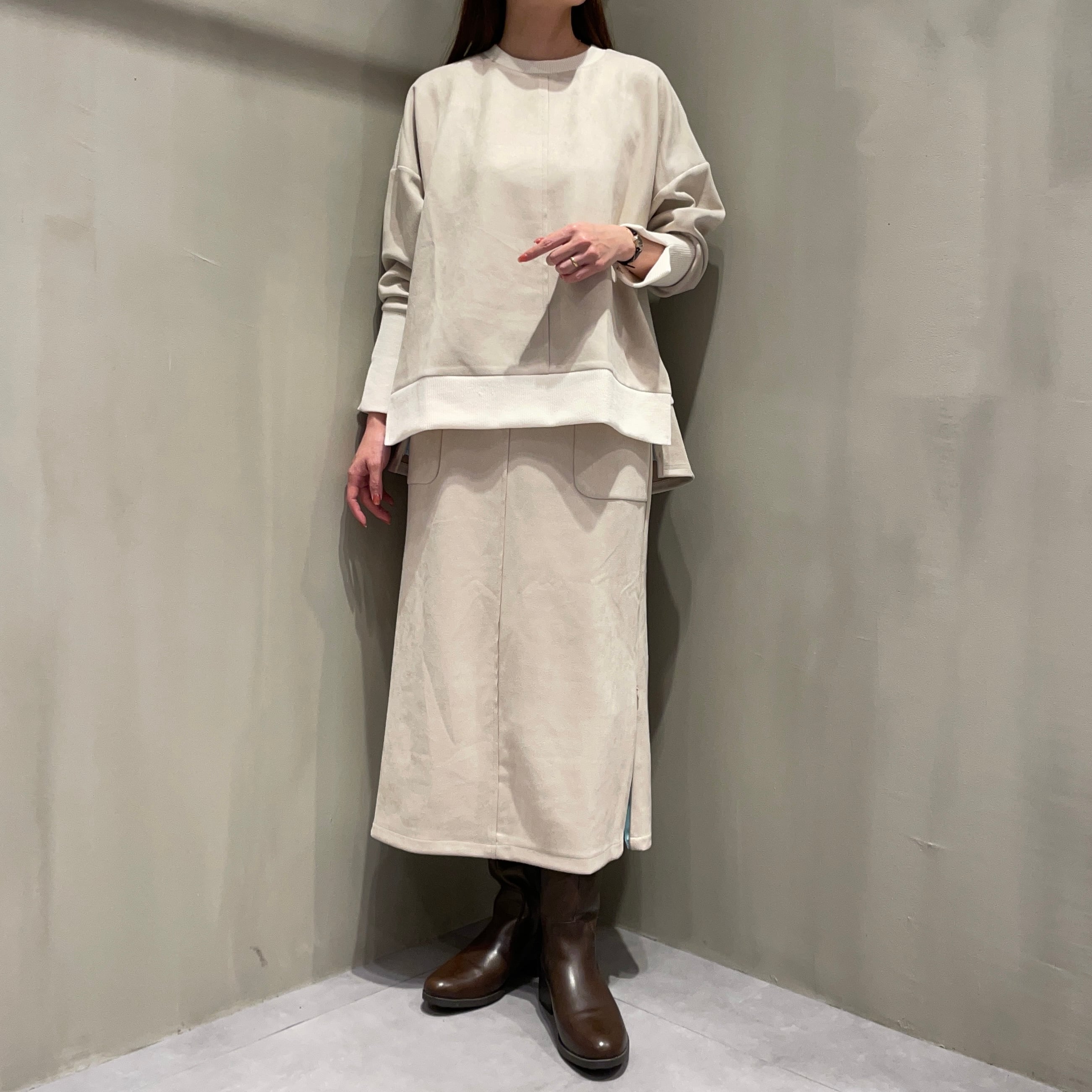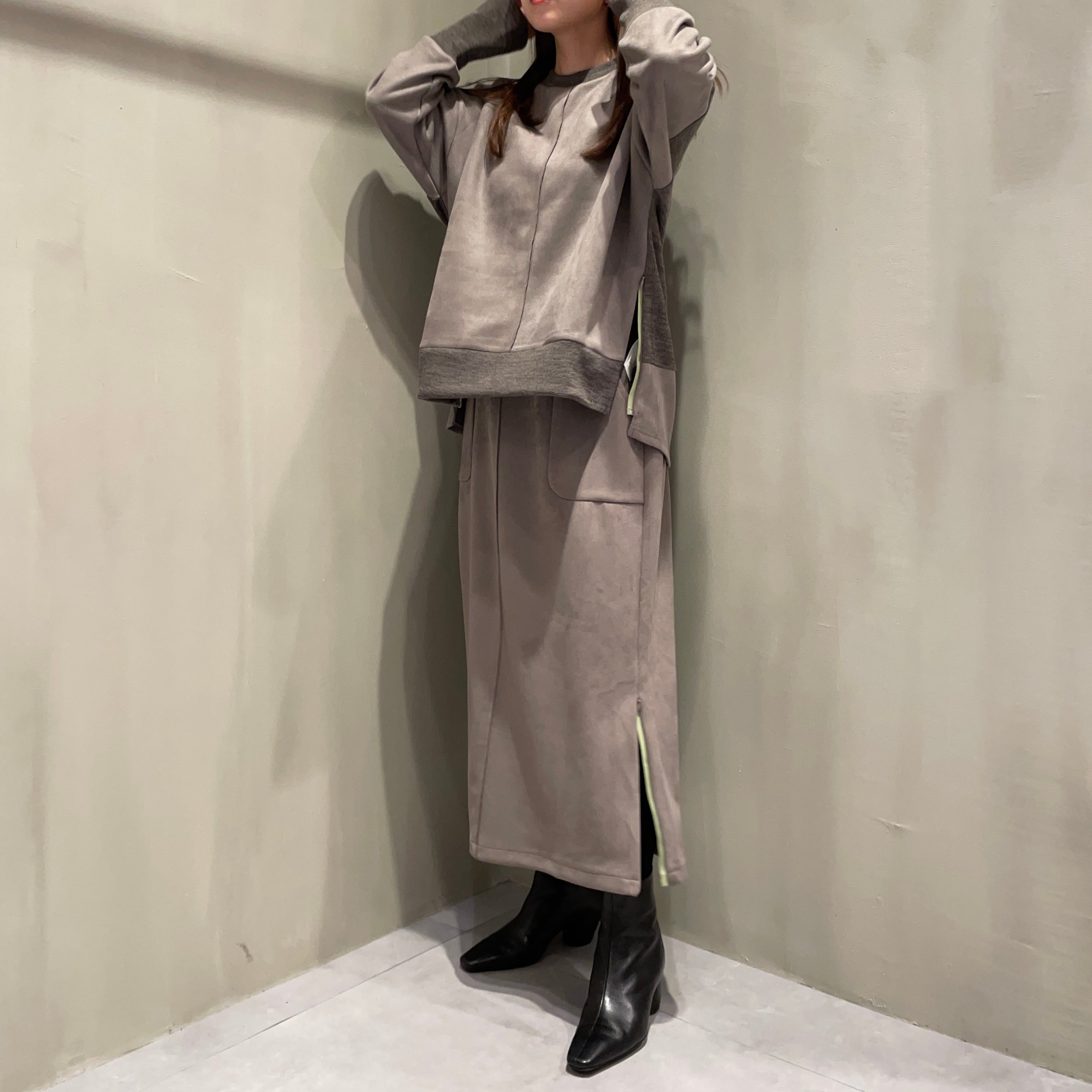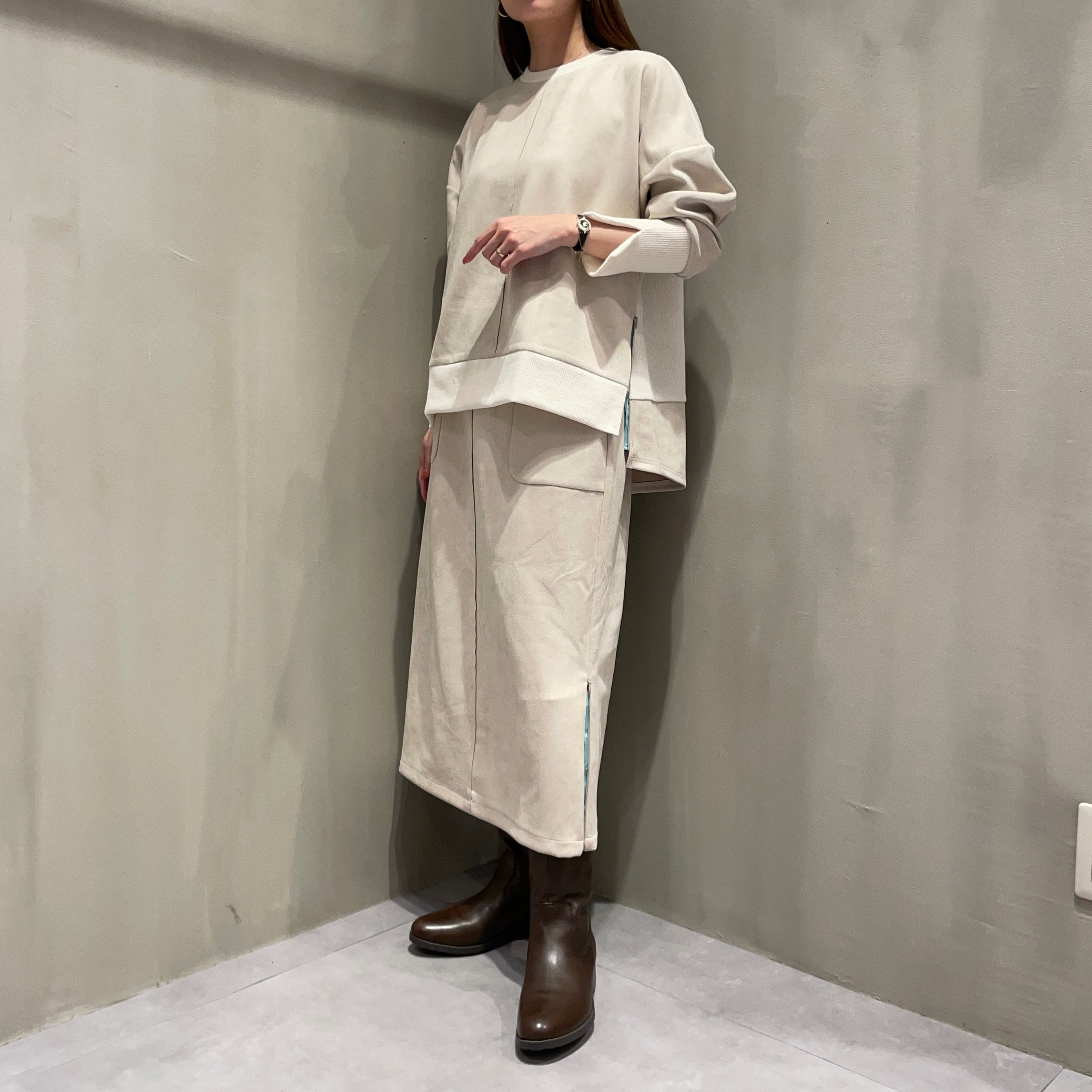 同素材のトップスとセットアップとしてもお召しいただけます。