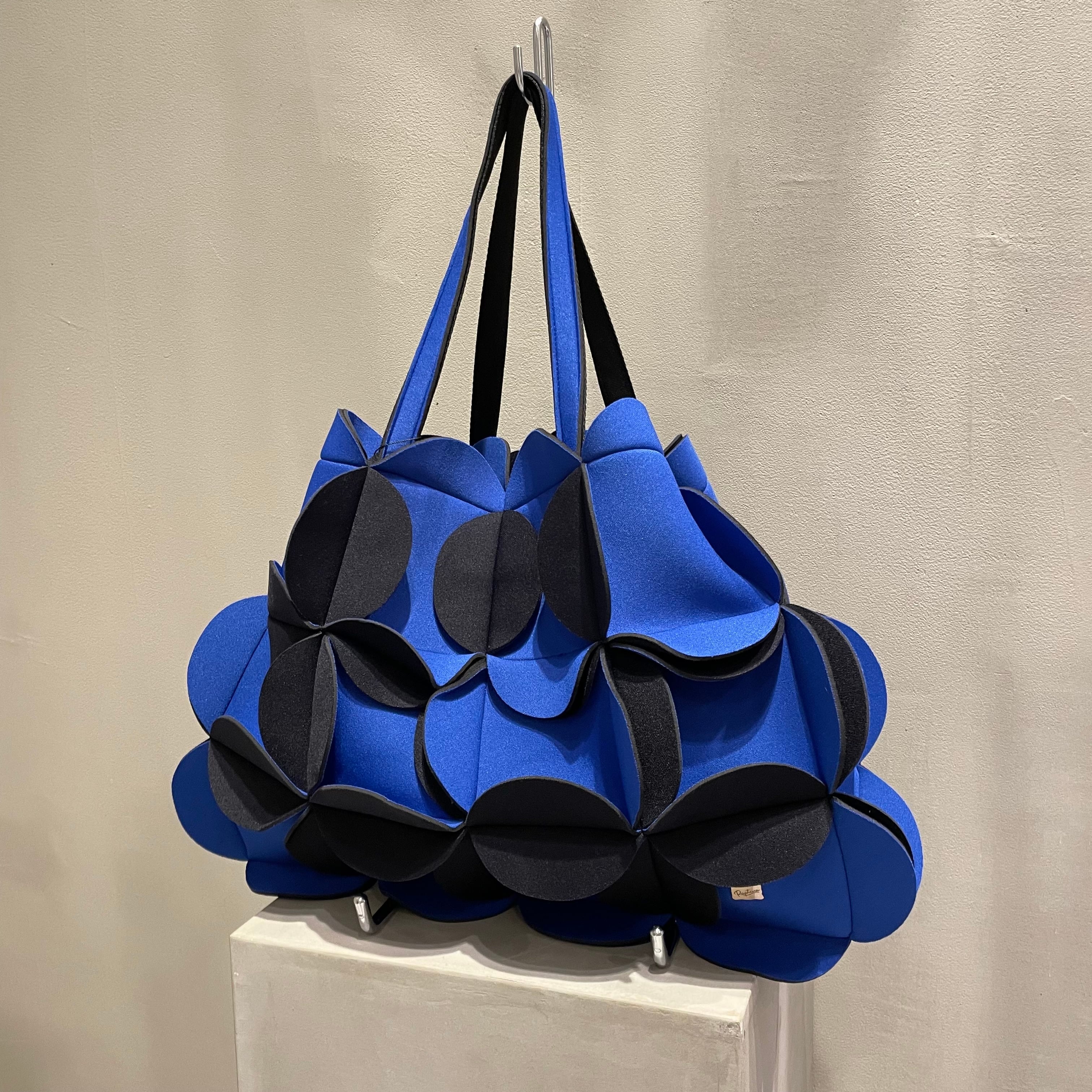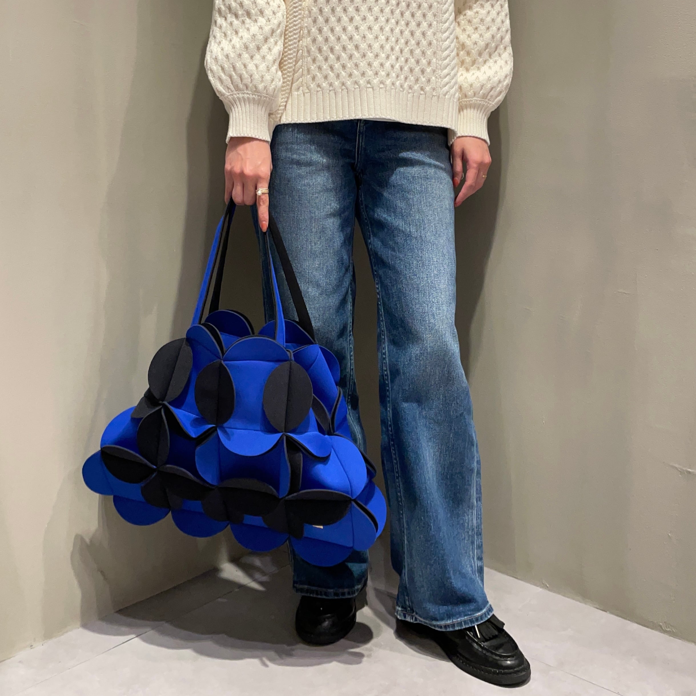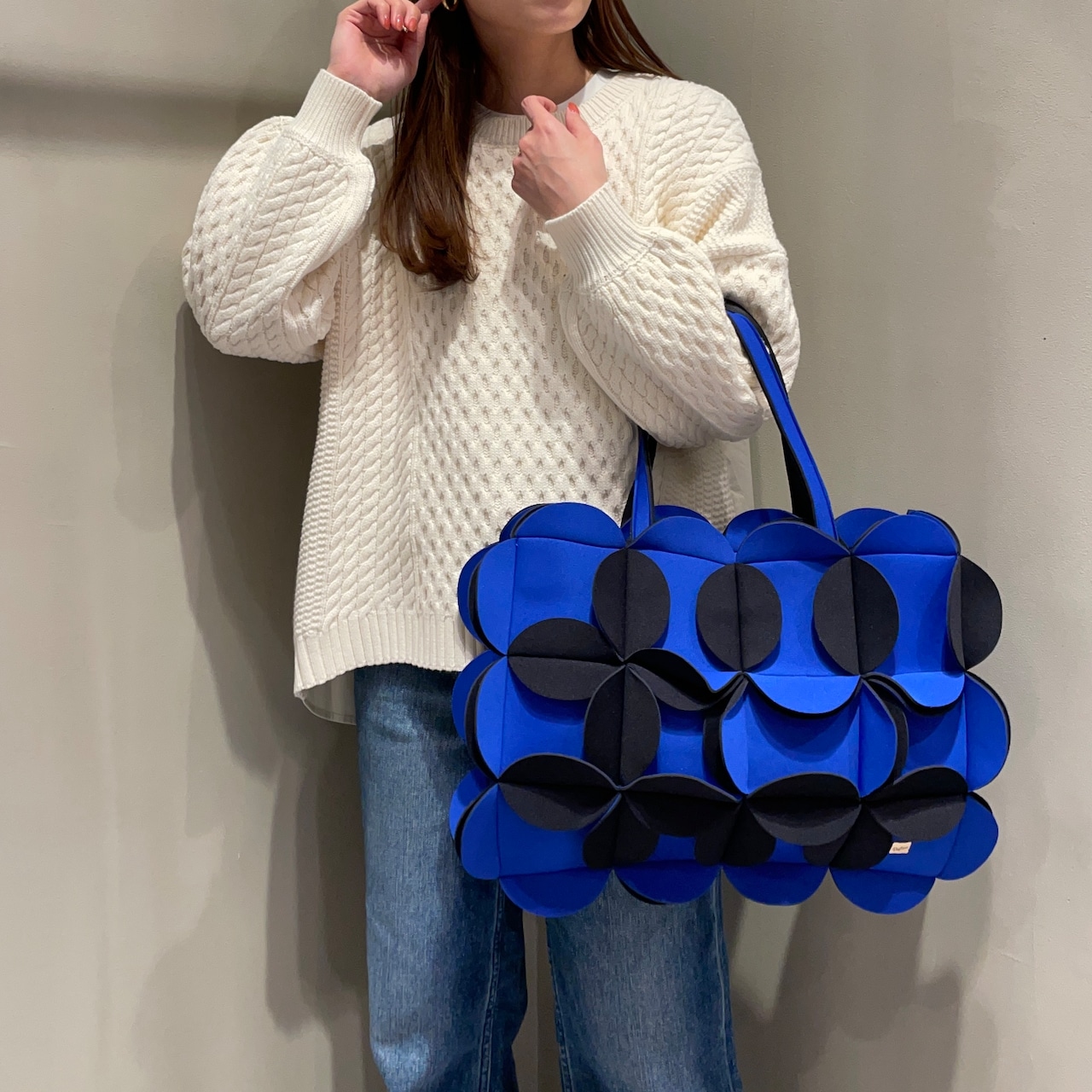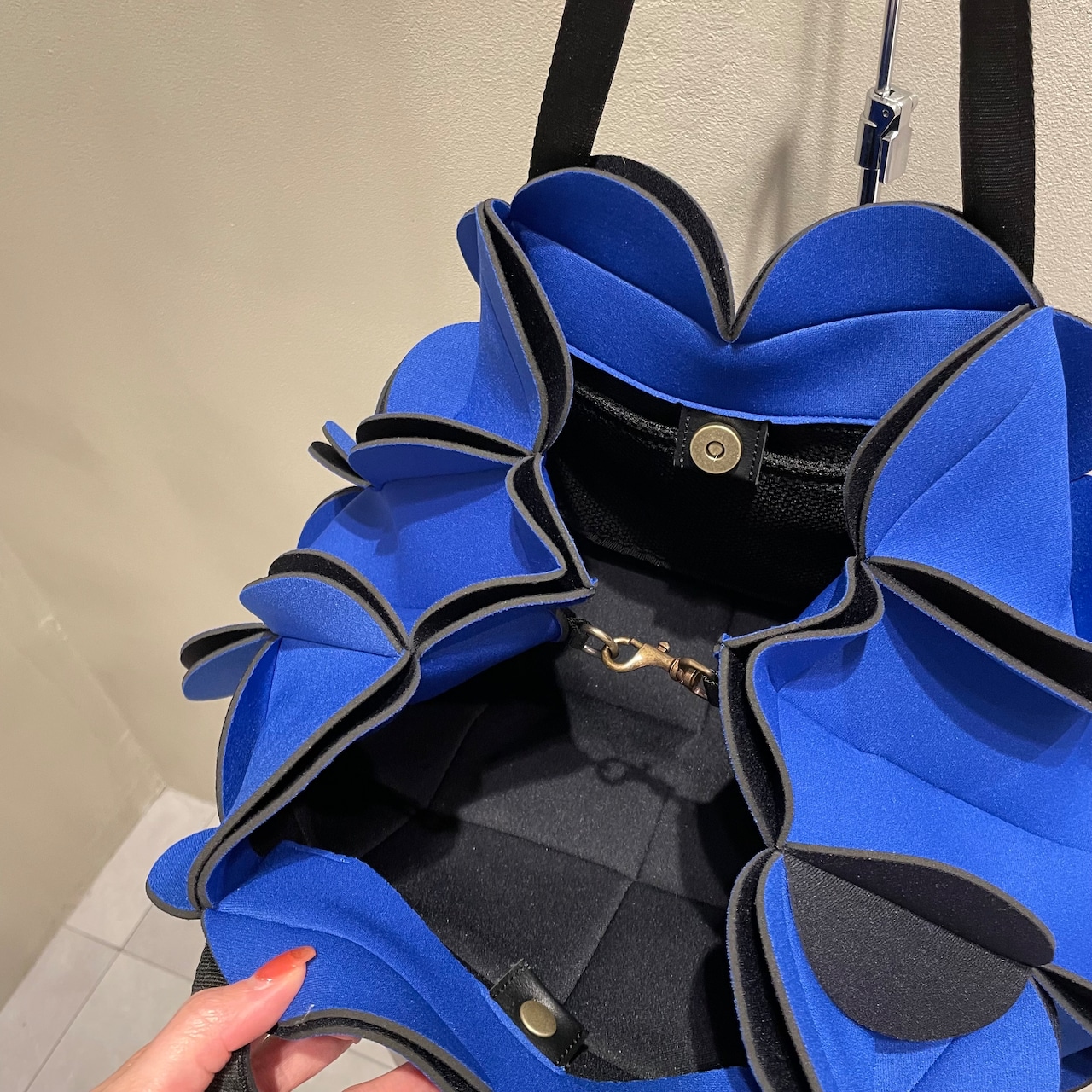 花びらのような、構築的なデザインが特徴の華やかなトートバッグ。