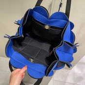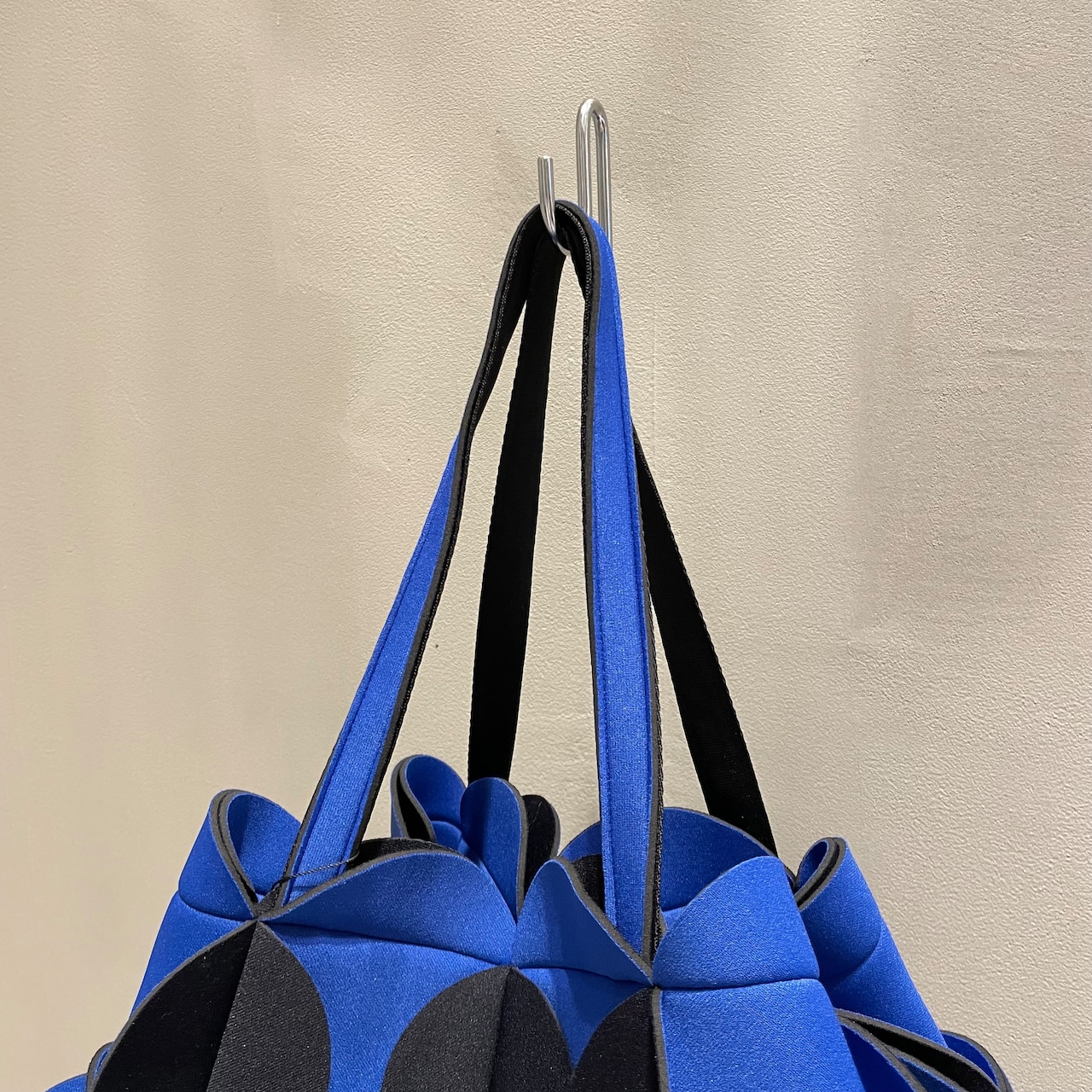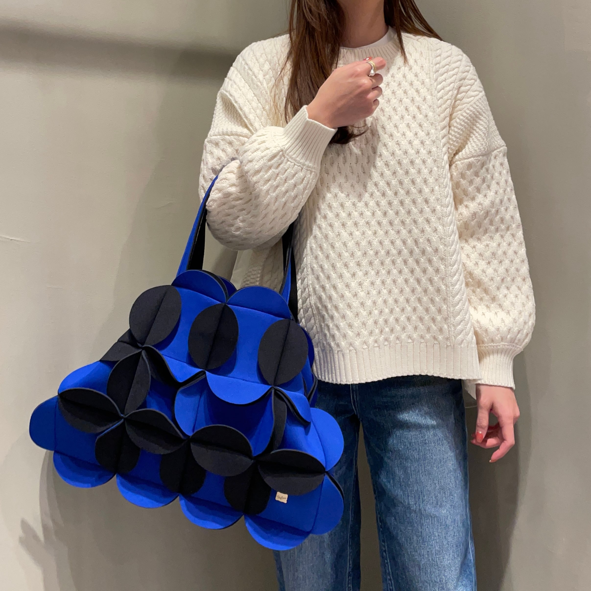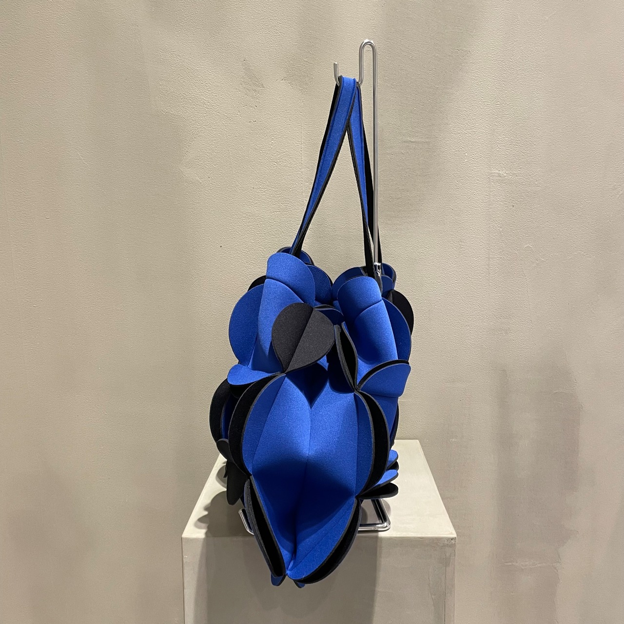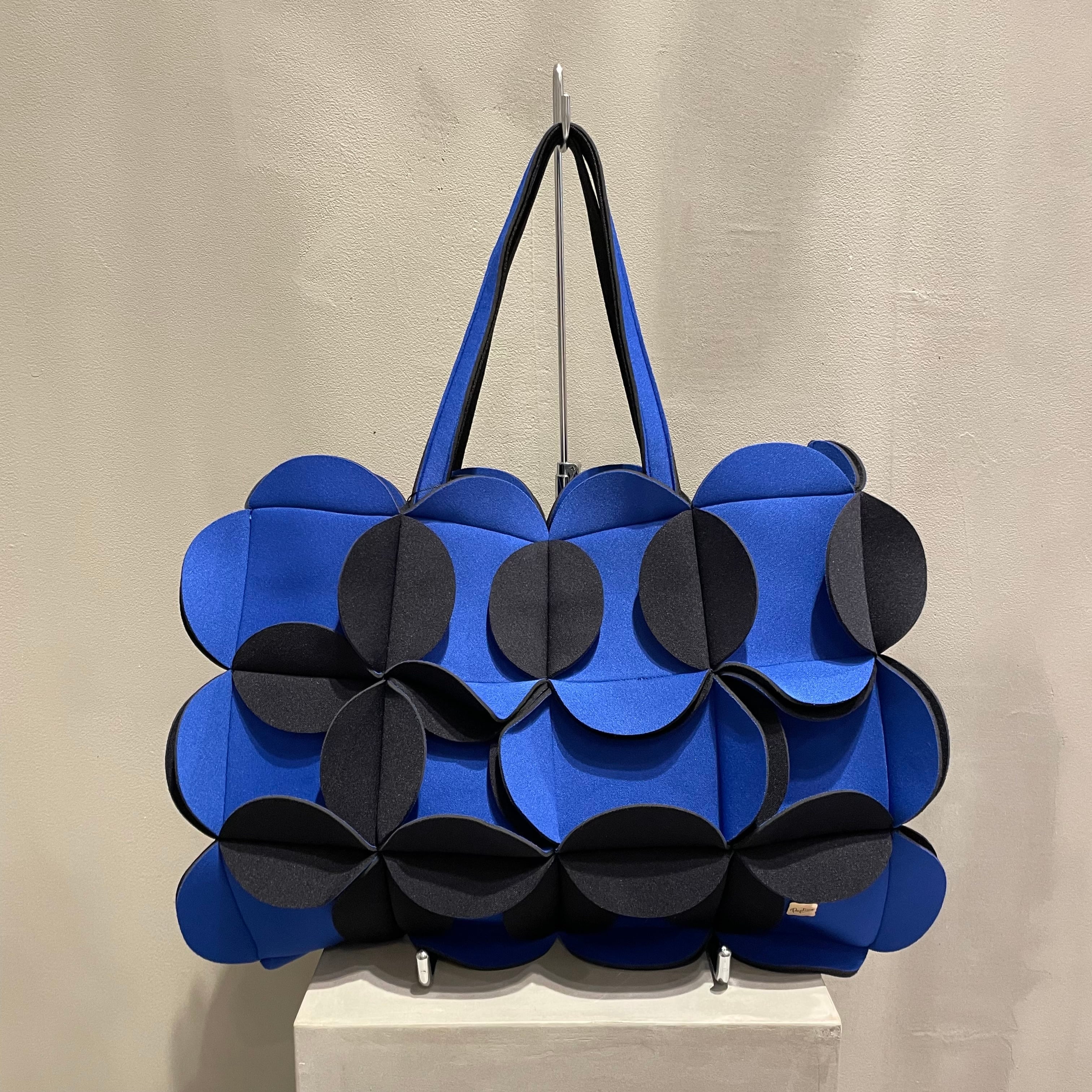 花びらのような、構築的なデザインが特徴の華やかなトートバッグ。