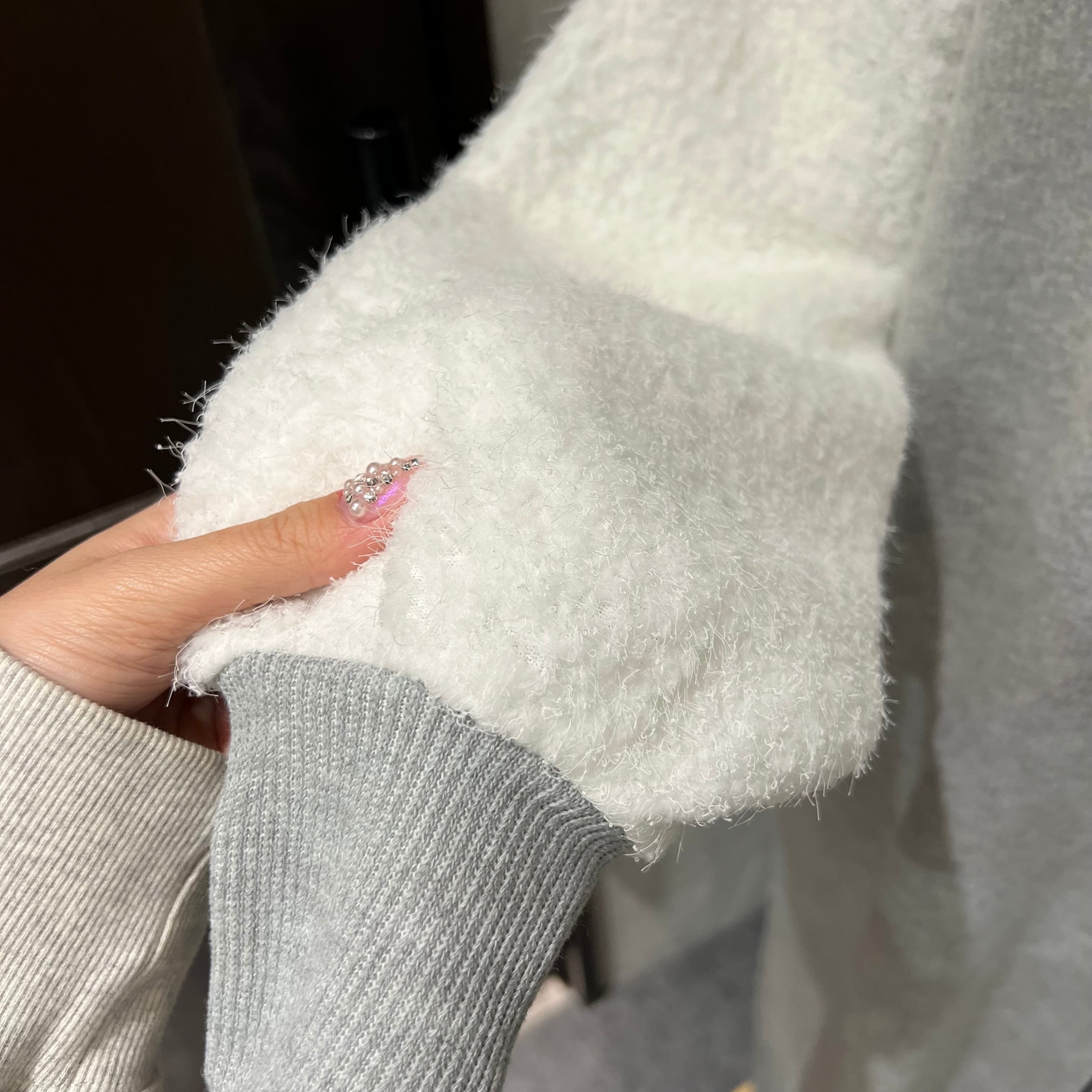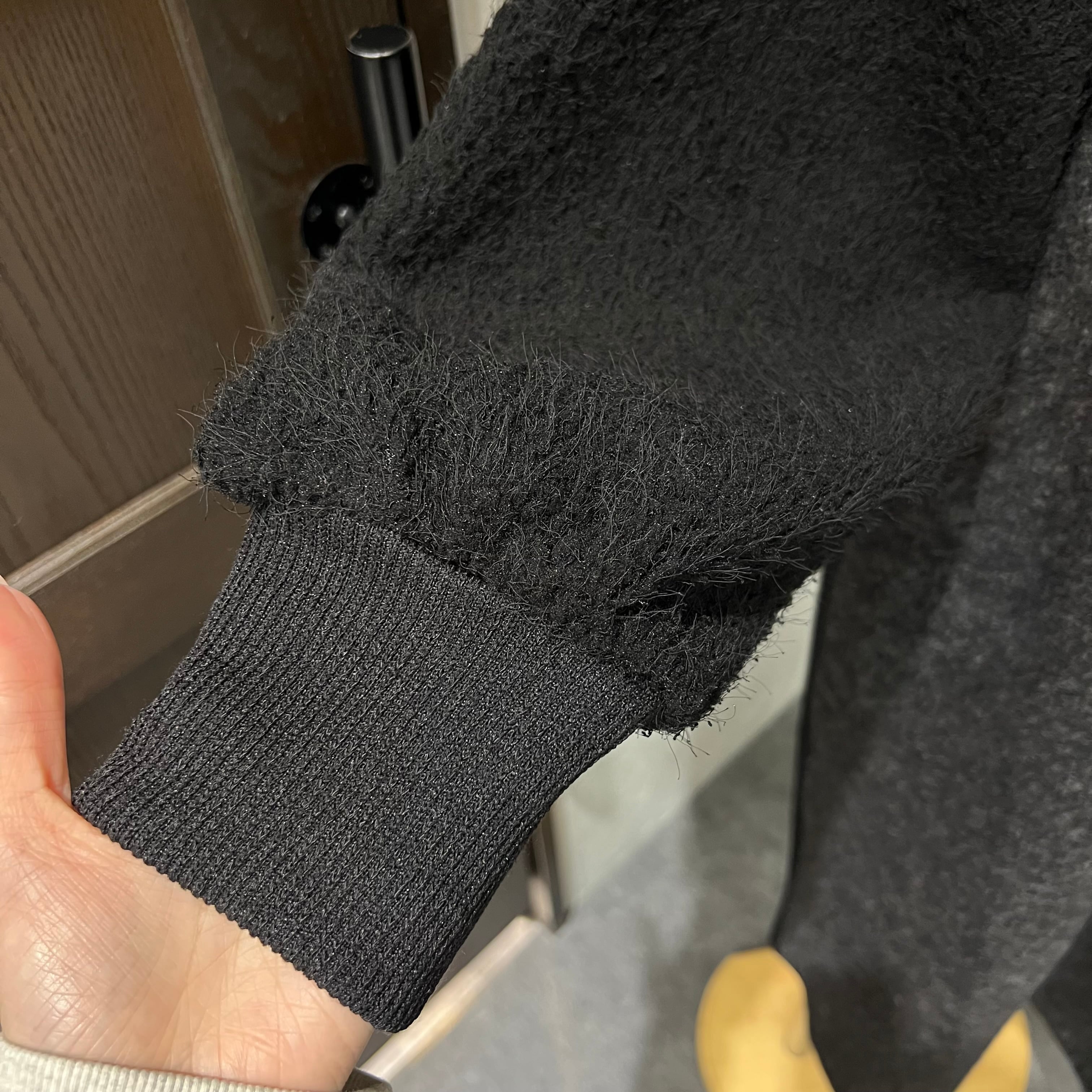 袖はモコモコとした立体感のある生地で、軽さがありながらも程よいボリューム感が出て、シンプルな中に可愛らしさをプラス。