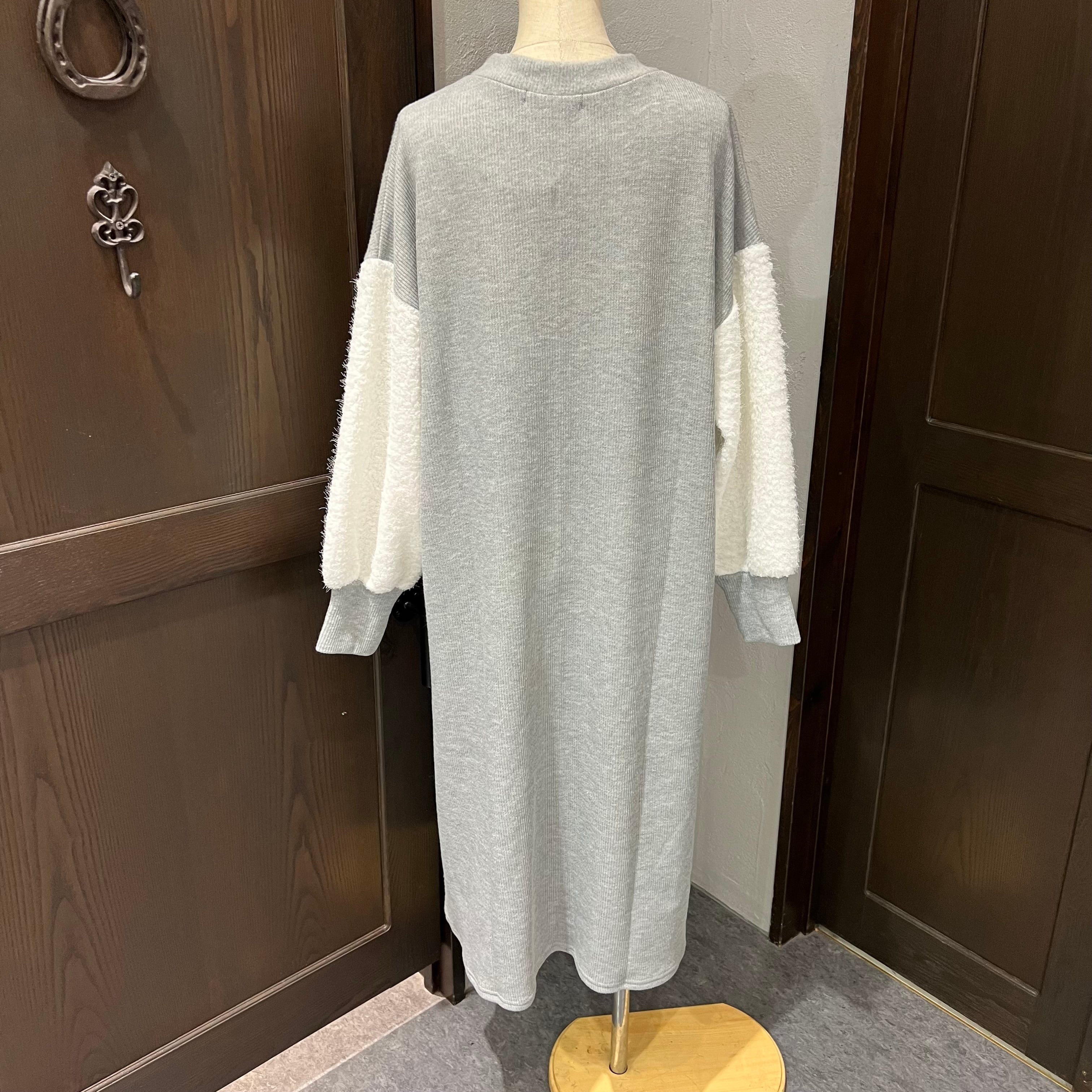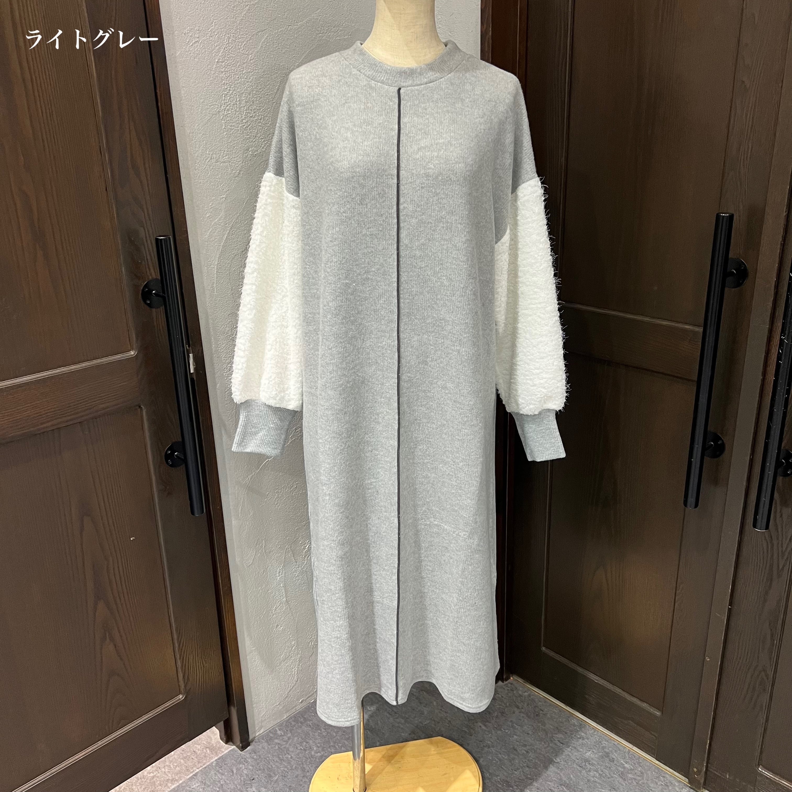 ふんわりとした袖の異素材切り替えがアクセントになったカジュアルワンピース。