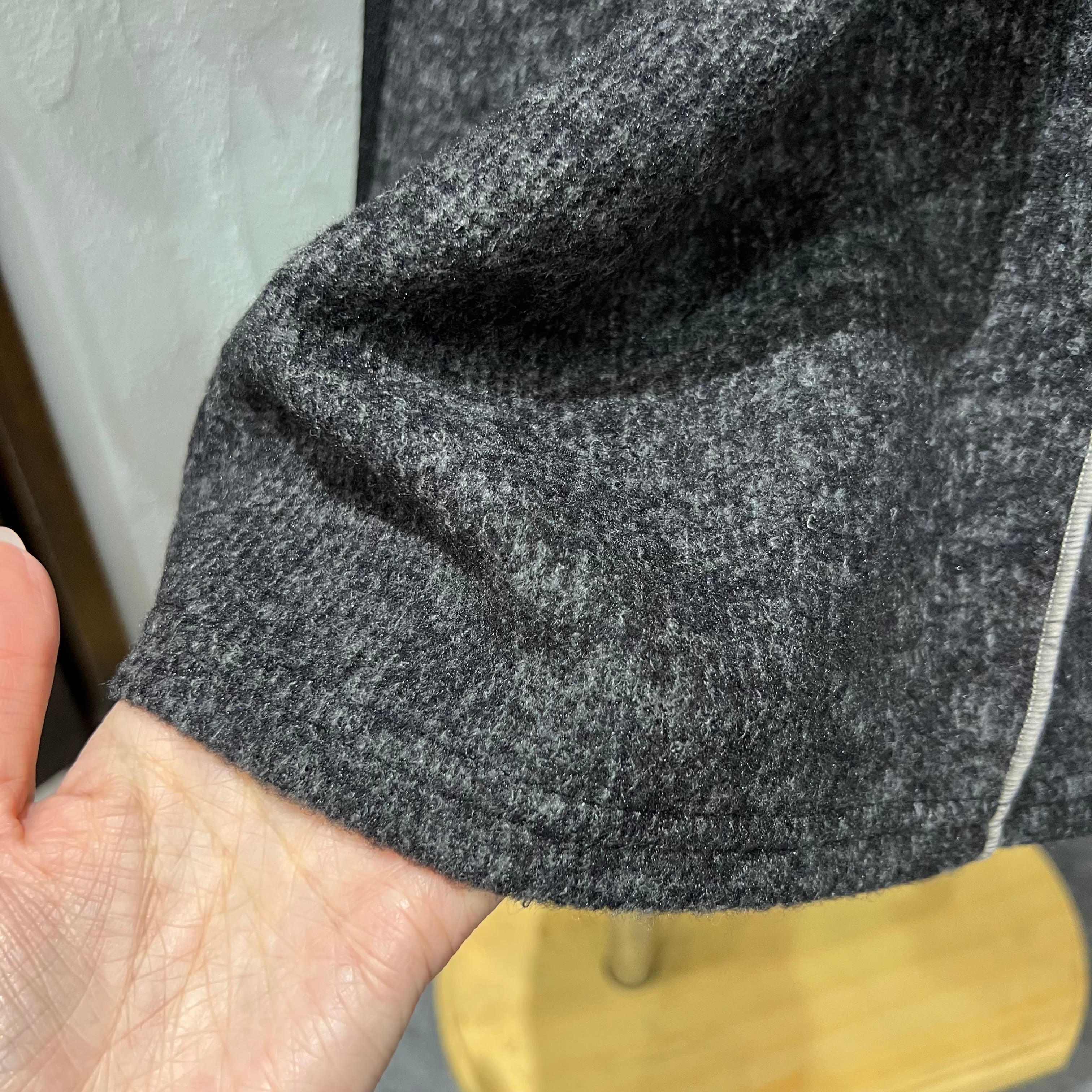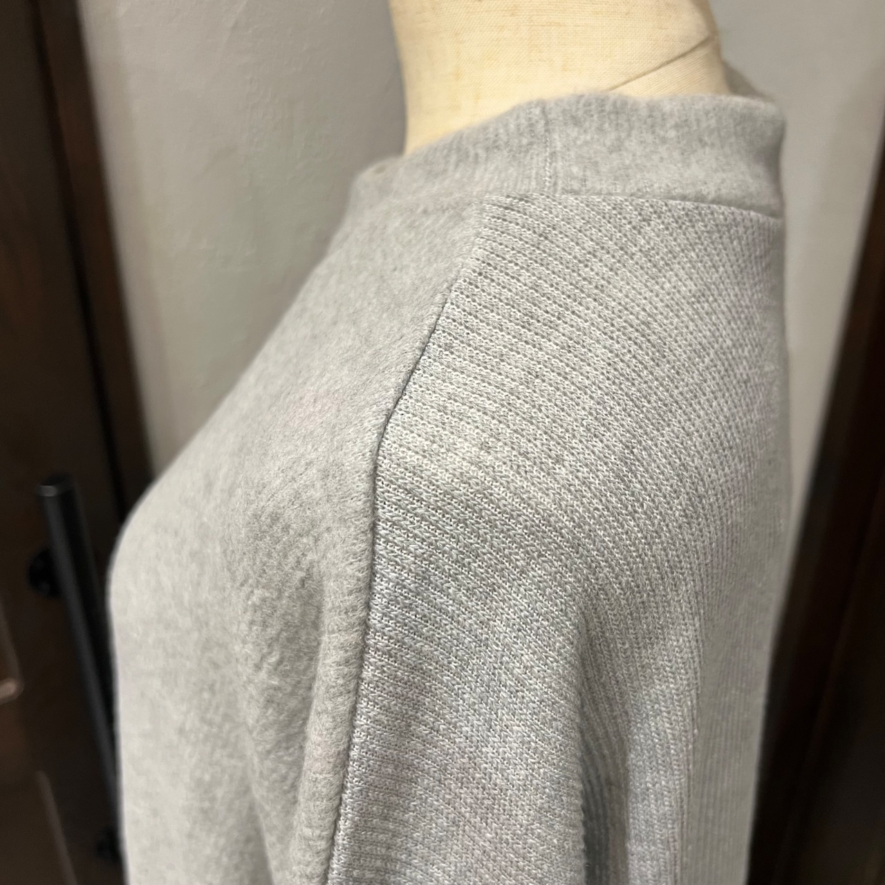 身頃は柔らかなスウェットタッチで、ストンと落ちるシルエットが体のラインを拾わず、リラックスして着られます。