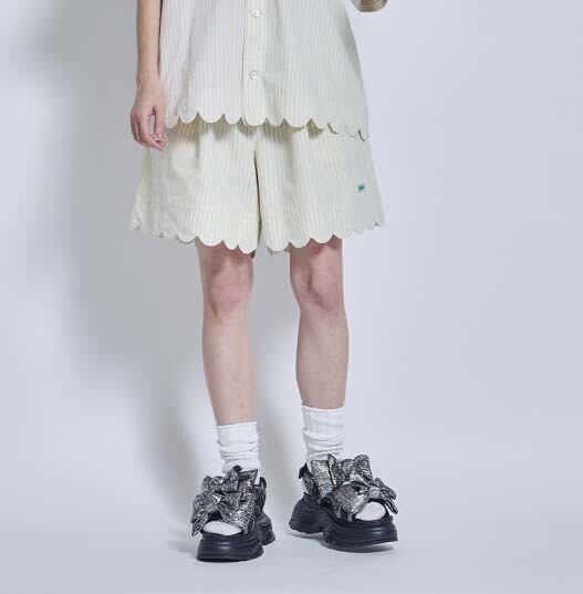 【予約商品】TOMAS MAGPAI/Stripe×Stripeスカラップパンツ