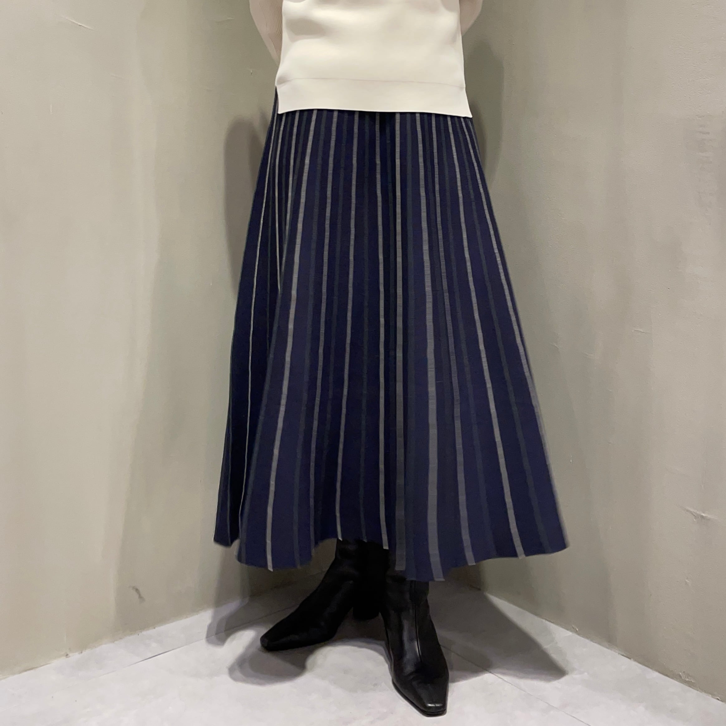 ストライプの柄が入るように編み立てられ、プリーツ見えして上品な印象に。