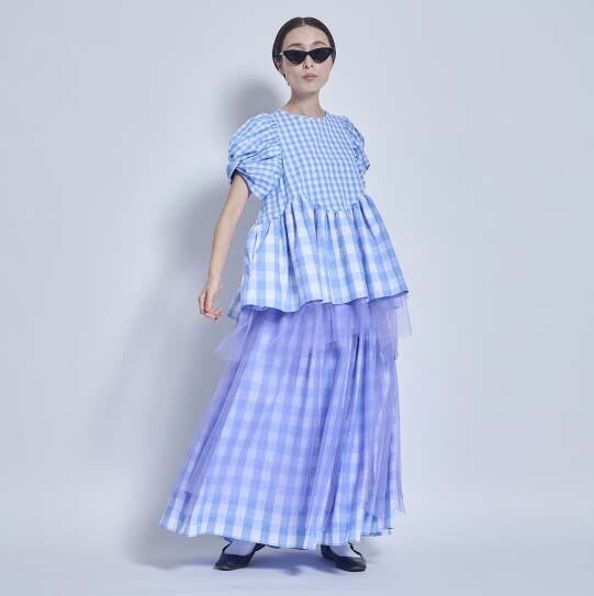 【予約商品】TOMAS MAGPAI/ Gingham×Tulleギンガムチュールキャミドレス