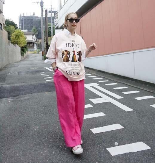 【デザインの特徴:デザイナー 奥村展子】 少しマットなキュプラ素材でトキシックピンクのパンツを作ってみました。前回はピンクのプリーツが大ヒットでしたが、パンツでは初めてのカラー。 キュプラはとても涼しくて夏に万能な素材です。夏に着ていないかのような優しいタッチで履き心地がとても良いです。形はストレートのイージータイプでゴム+ドローストリングで幅広い体型の方に着ていただけます。丈はやや長め。38サイズより36サイズは3cm短めになります。155cm以下の方は36サイズ。それ以上の方は38サイズが目安です。 今の時期はパンツは長めの方が主流となっていますが、お手持ちのパンツを測ってみてサイズチャートと比べるとより分かりやすいかもしれません。 裾を長めに、低身長の方もたゆませて履くと今っぽい雰囲気になります。とても薄いので、丈が長い方が良さそうな気もしています。また、ブラックの下着だと少し透け感があります。下着はベージュやホワイトだと透け感は感じませんでした。後ろの下の方にロゴがプリントで入っているのがポイントです。後ろのロゴなので飽きがこないし、普通のパンツと比べると一味違うデザインかなと思います。世間ではシックでシンプルカジュアルコンフィーなスタイルが主流となっていると思います。私の作るお洋服はシックなカラーも展開はしつつ、こんなあまり無いようなショッキングなピンクを取り入れた派手色のスタイルを最近は非常に好みます。ショッキングピンクですがボトムなのでとても取り入れやすいカラーかもしれないと思います。単色なので合わせやすく、夏にぴったりの元気なカラーです。両サイドポケット付き。脱ぎ着しやすいゴムで、楽チンパンツ。ちょっと細見えするのが嬉しい。元気が欲しい日の日常使いに活躍すると思います。トーマスマグパイらしいカラーだと思います。