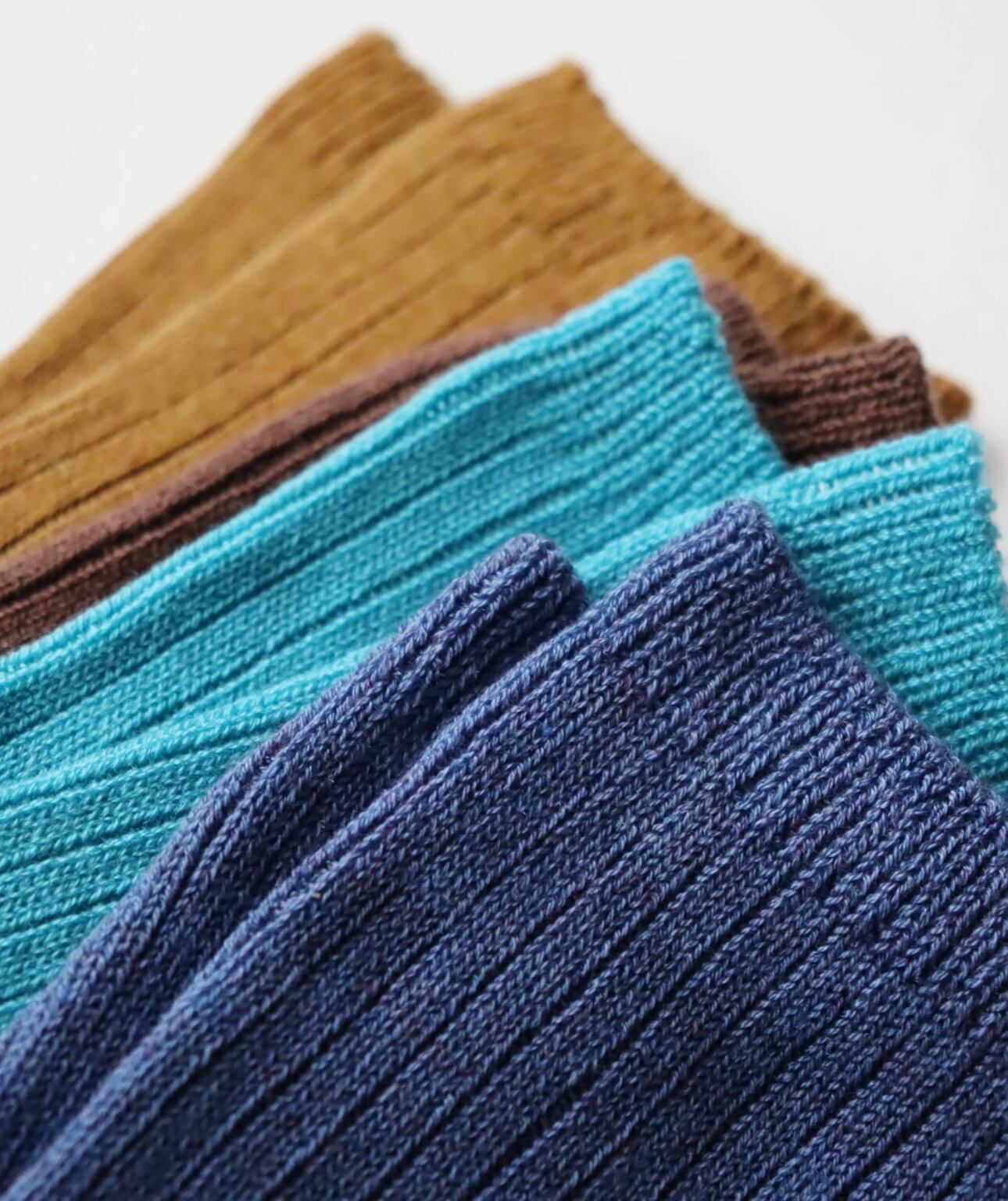 履くだけでコーデのアクセントになる、彩り豊かなリブハイソックス。