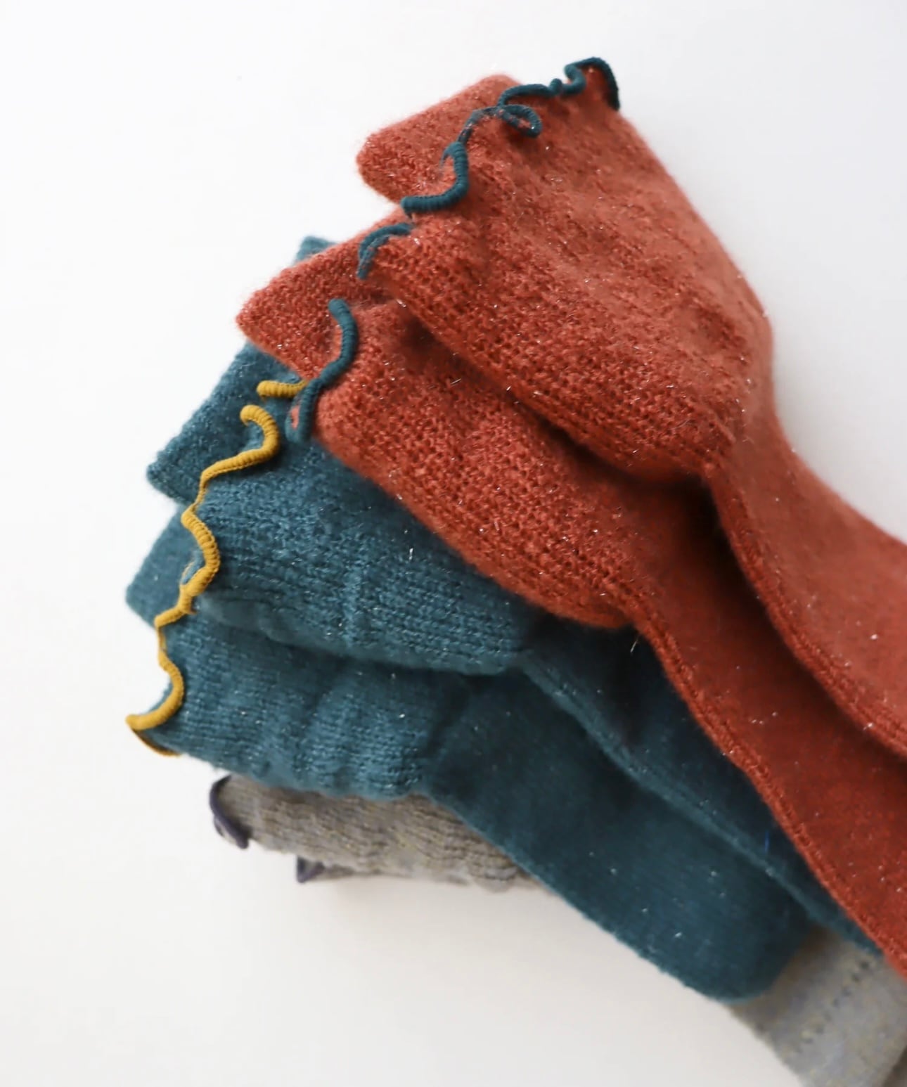 軽やかなのにしっかり暖かく、やわらかく光るラメ糸を織り込んで冬のファッションにアクセントを添えてくれます。