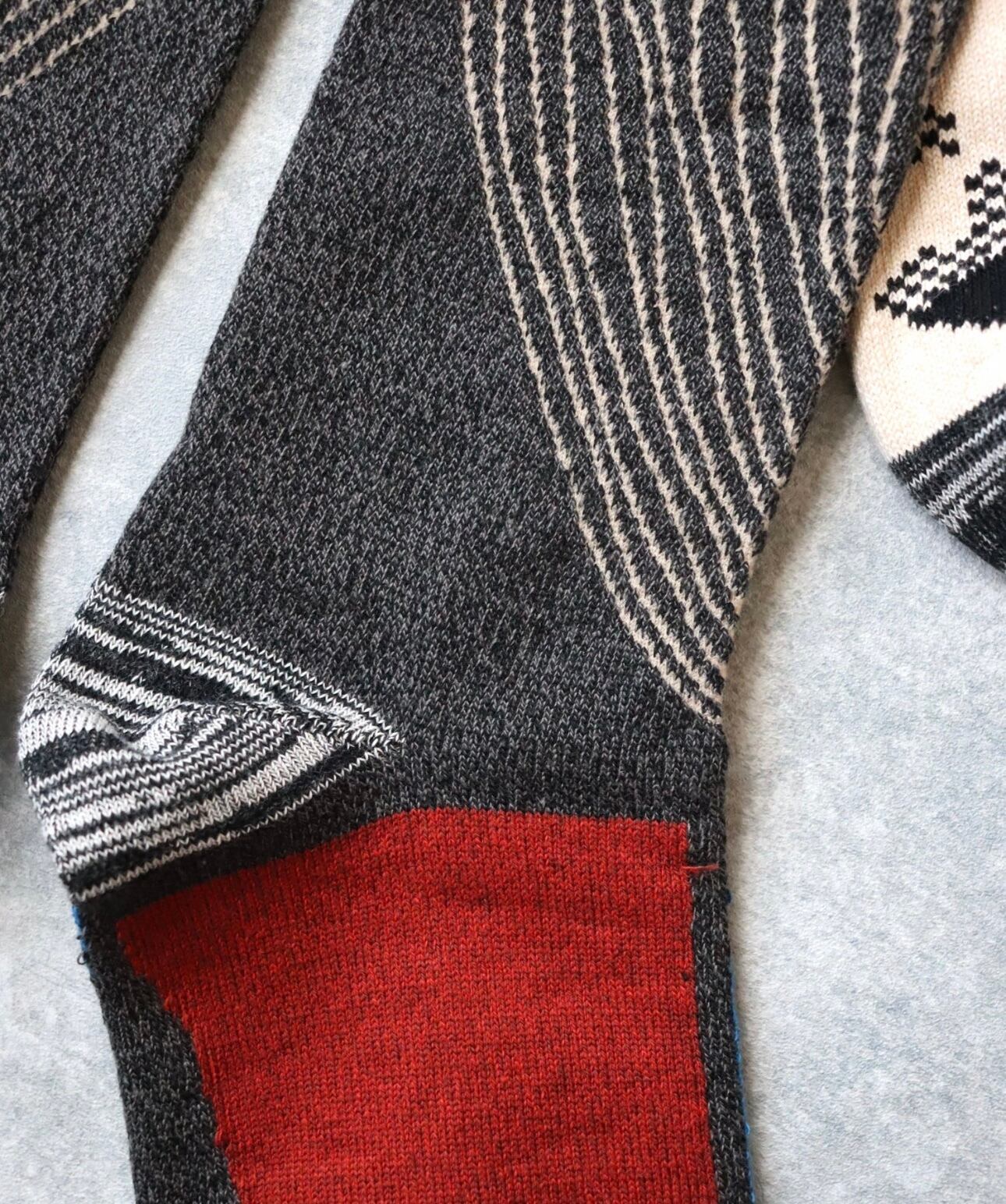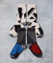 フォークロア風の柄が、シンプルな装いにもさりげないアクセントを添えます。