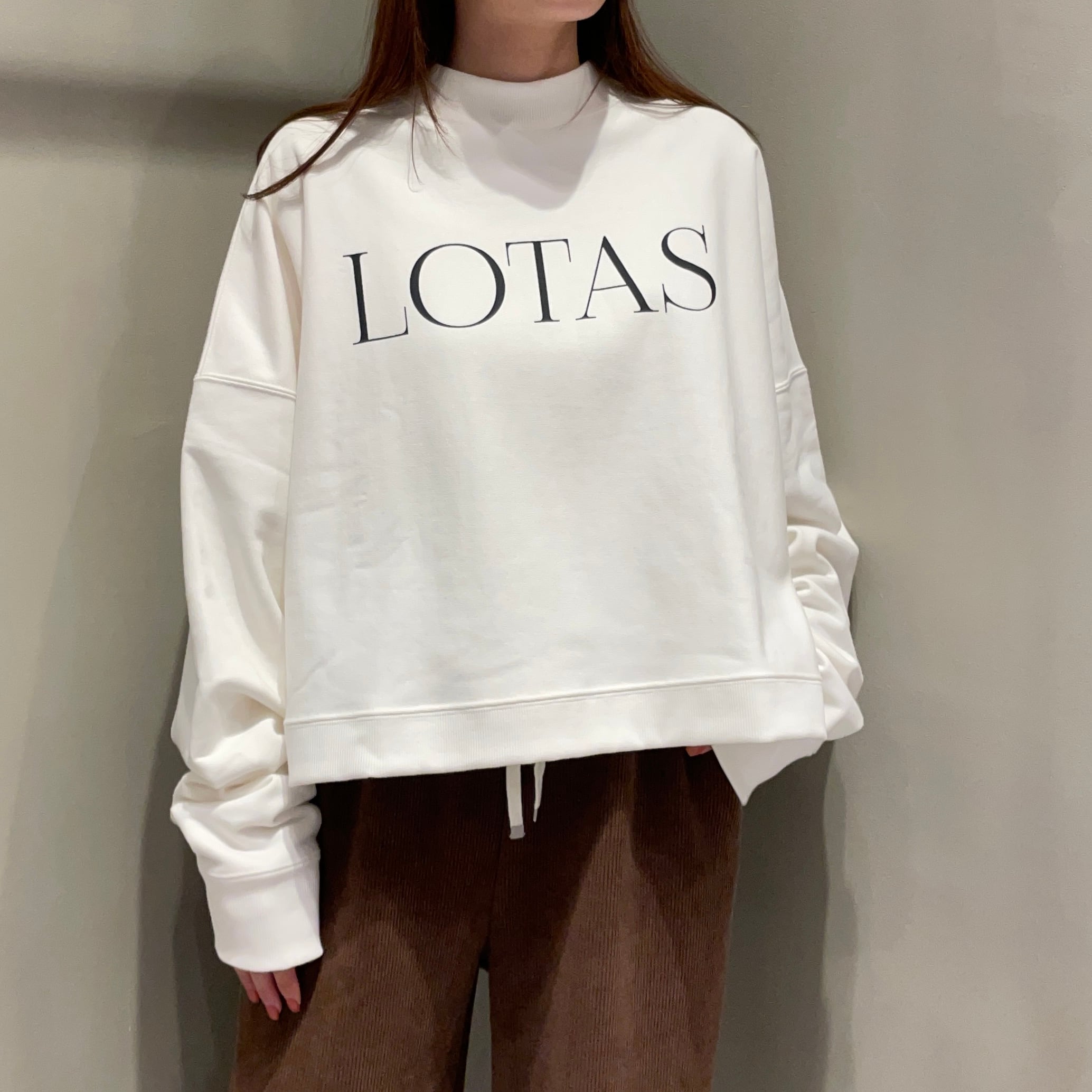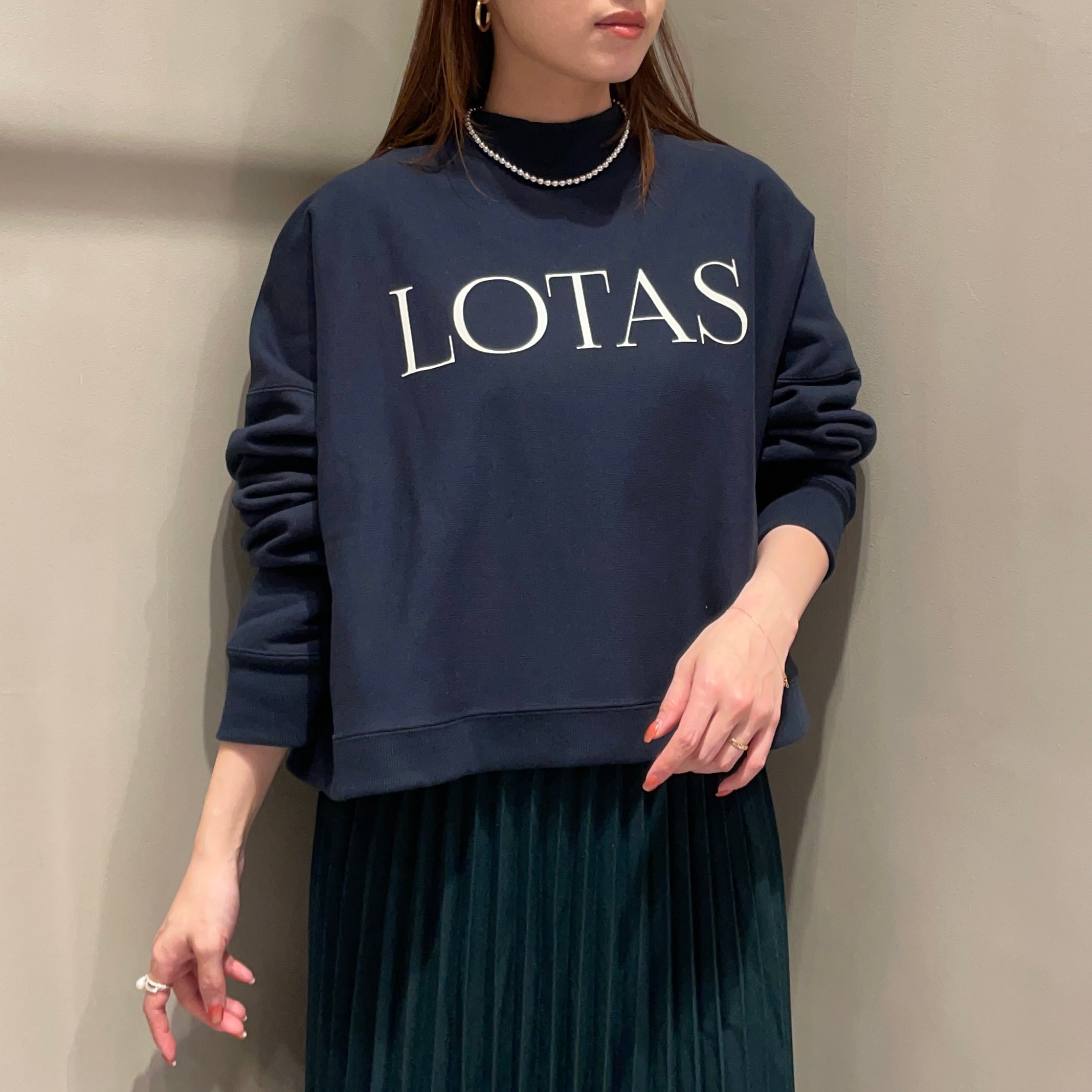 ラフすぎない大人カジュアルが叶う、胸元の”LOTAS”ロゴが目を惹く大人のスウェット。