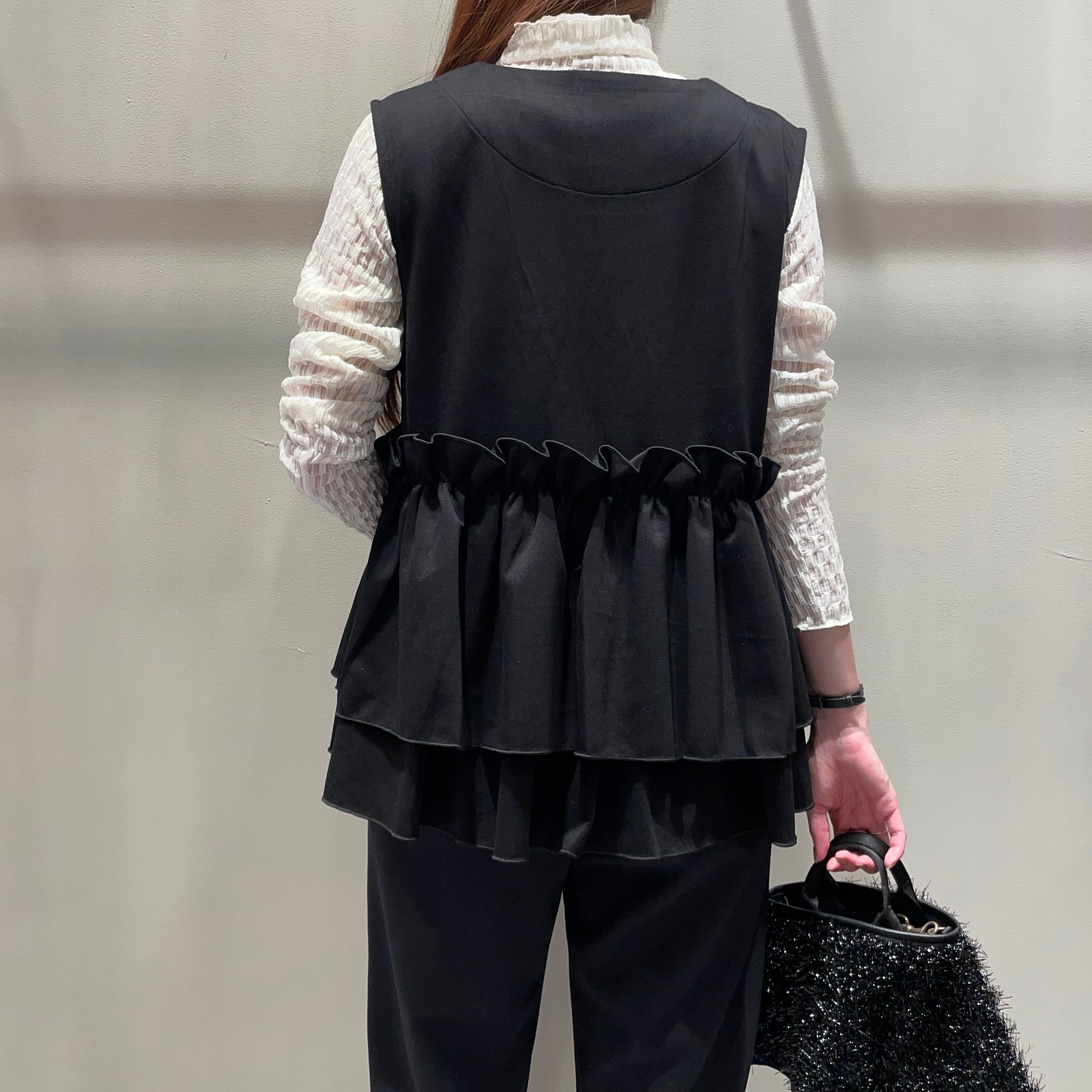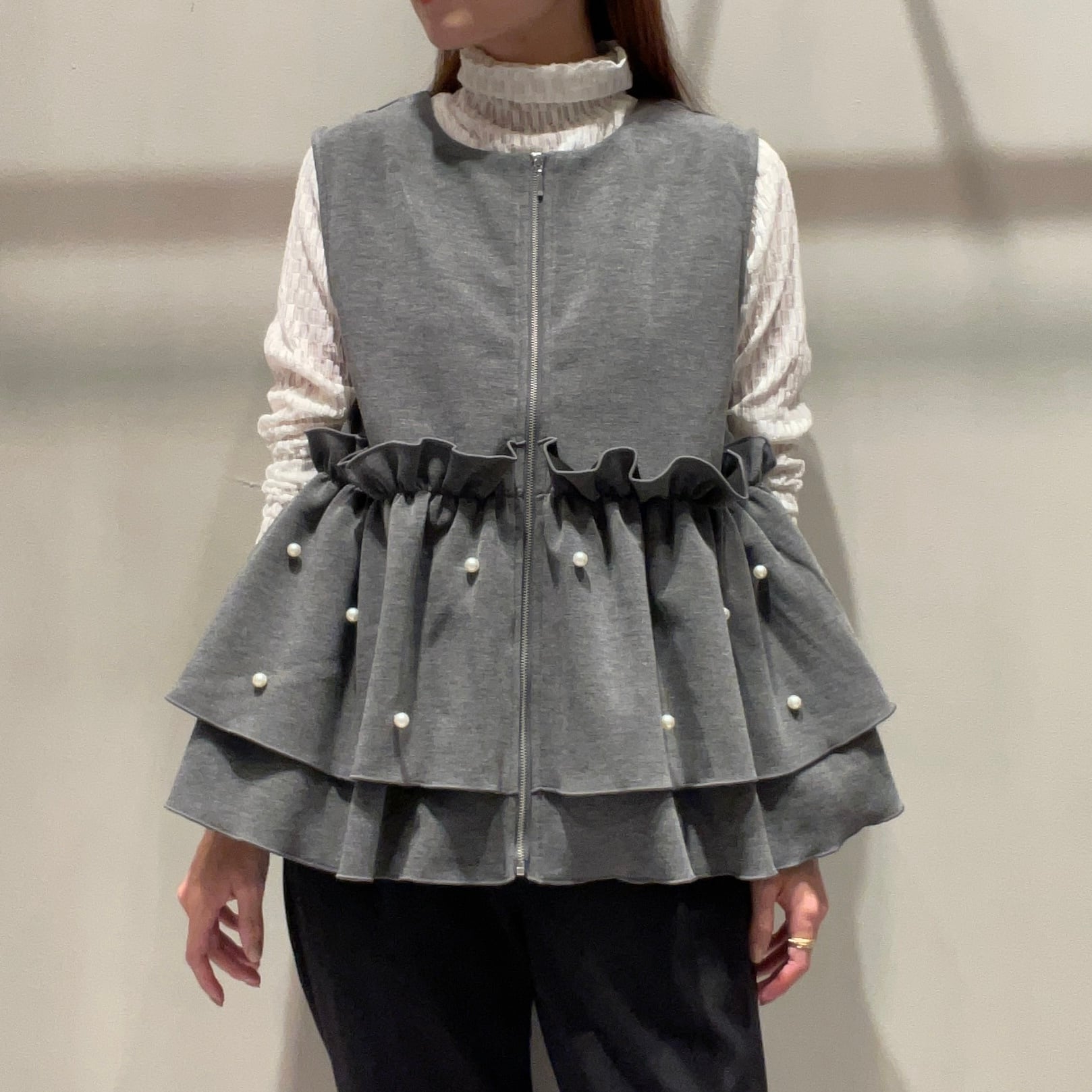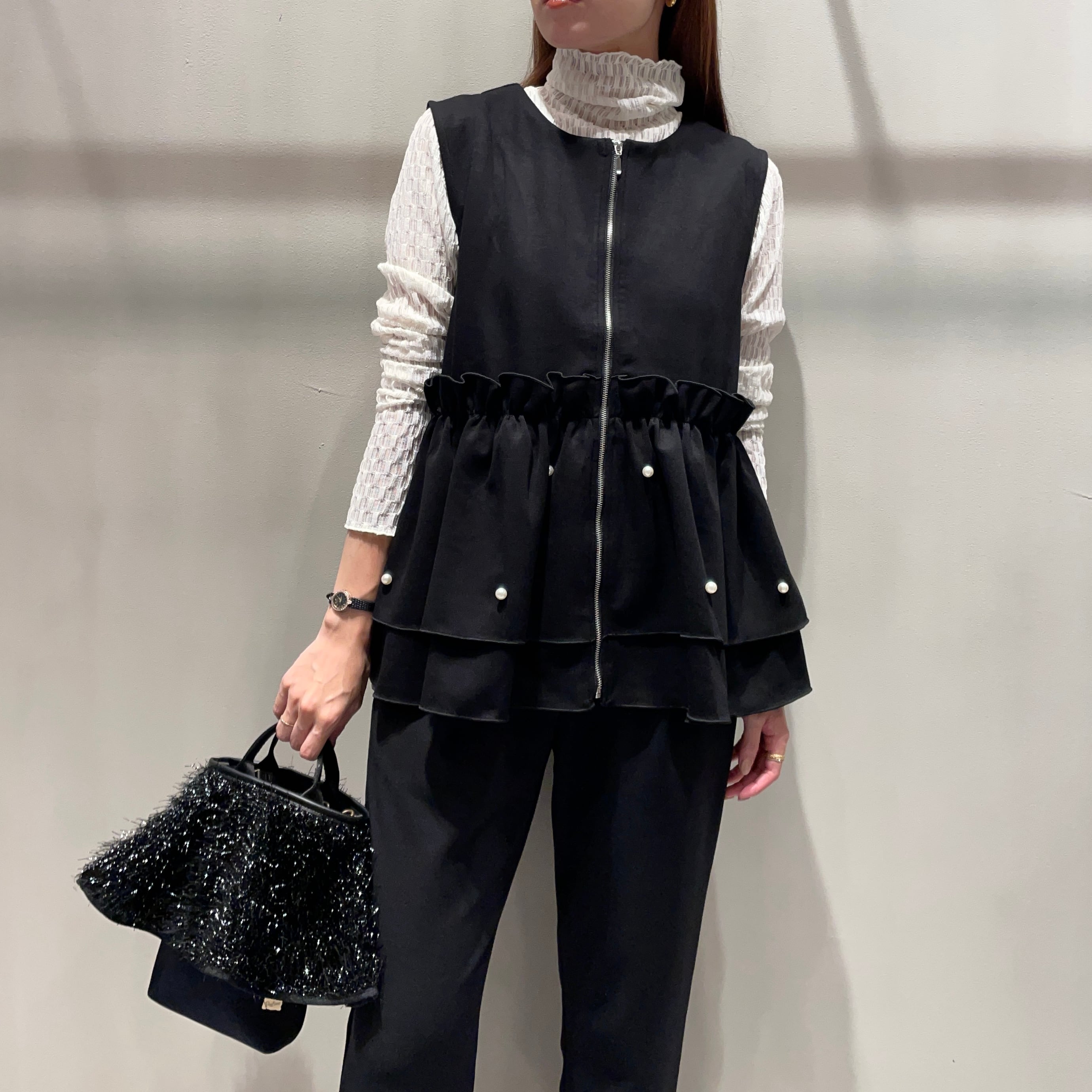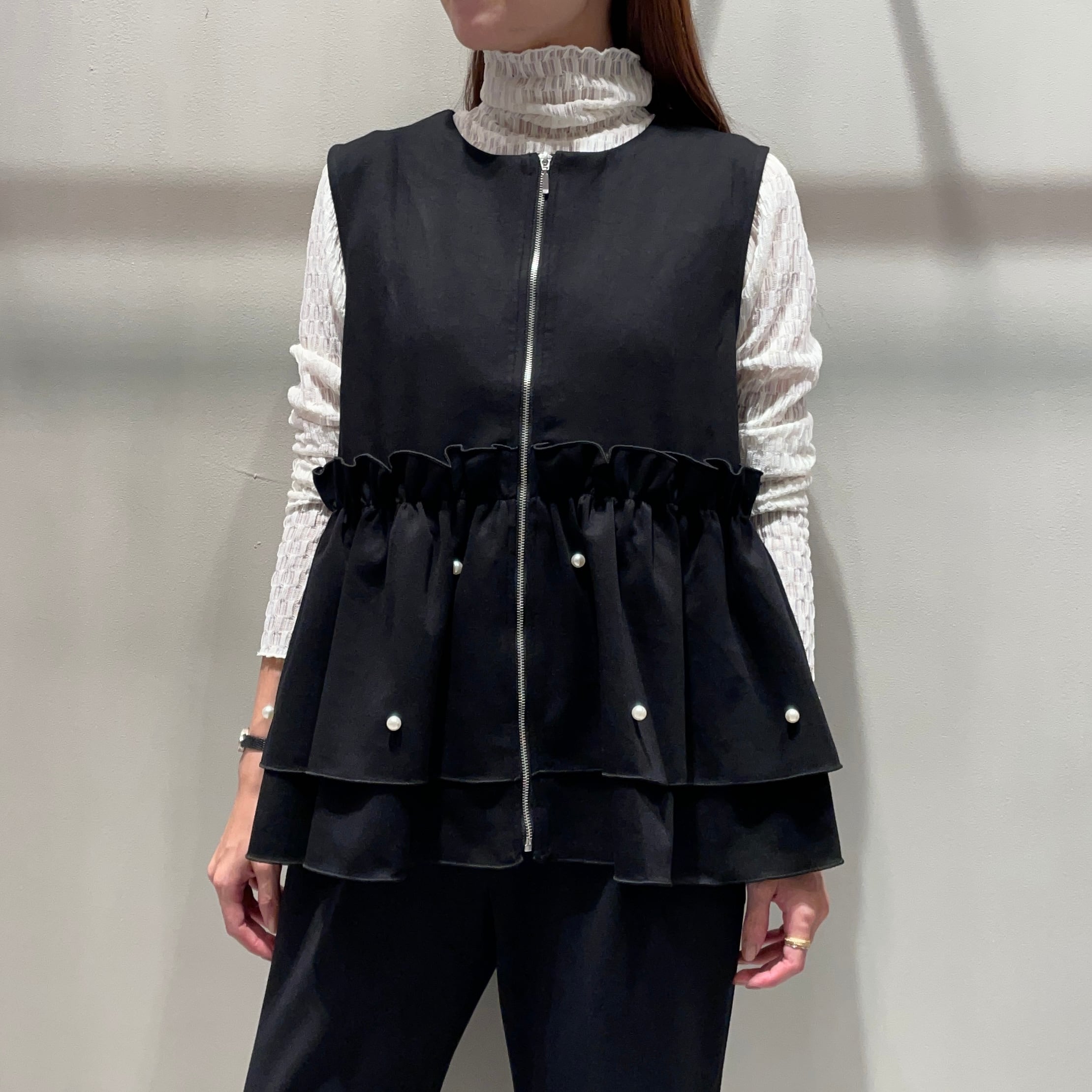 インナー次第でシーズンレスに着まわせるジップ式ベスト。