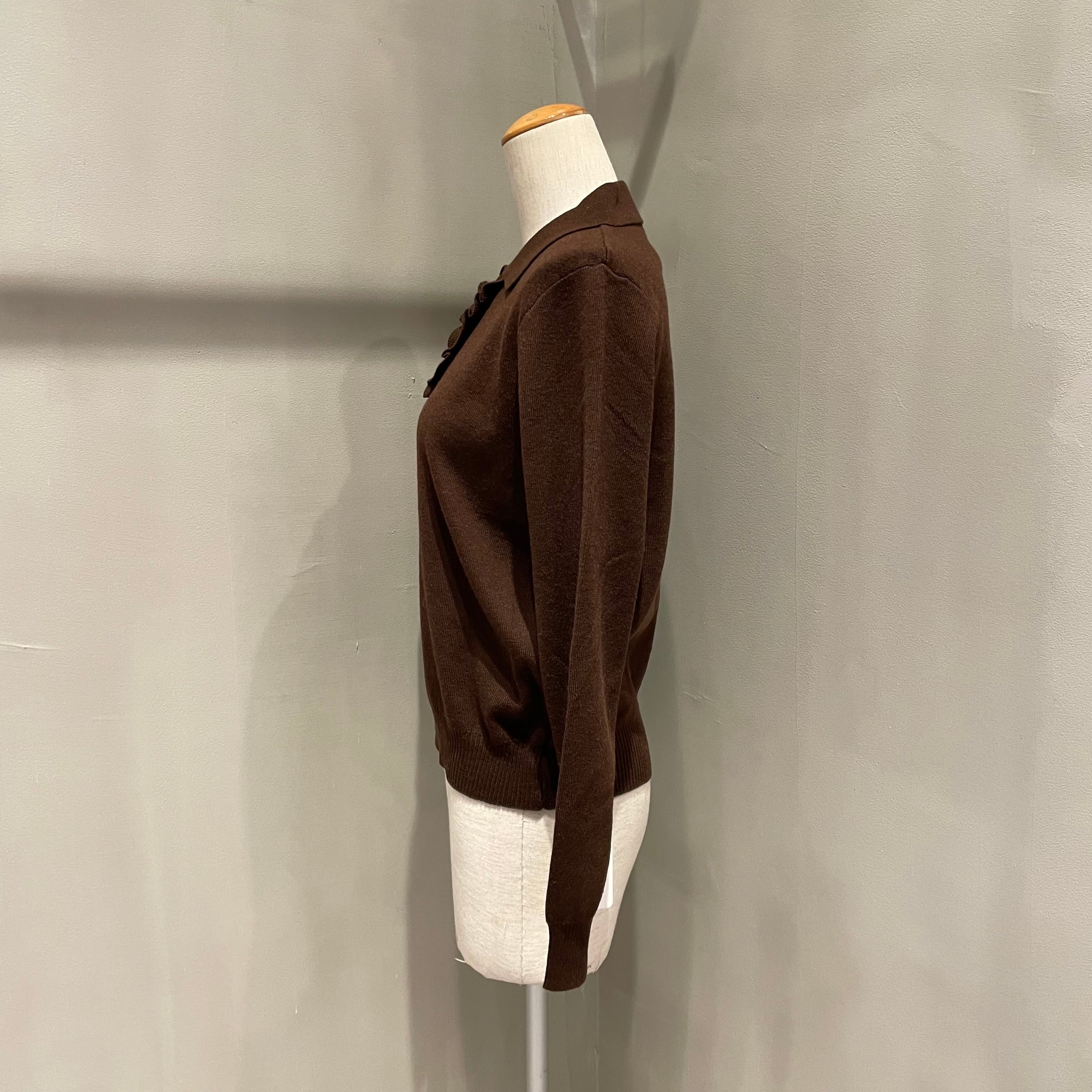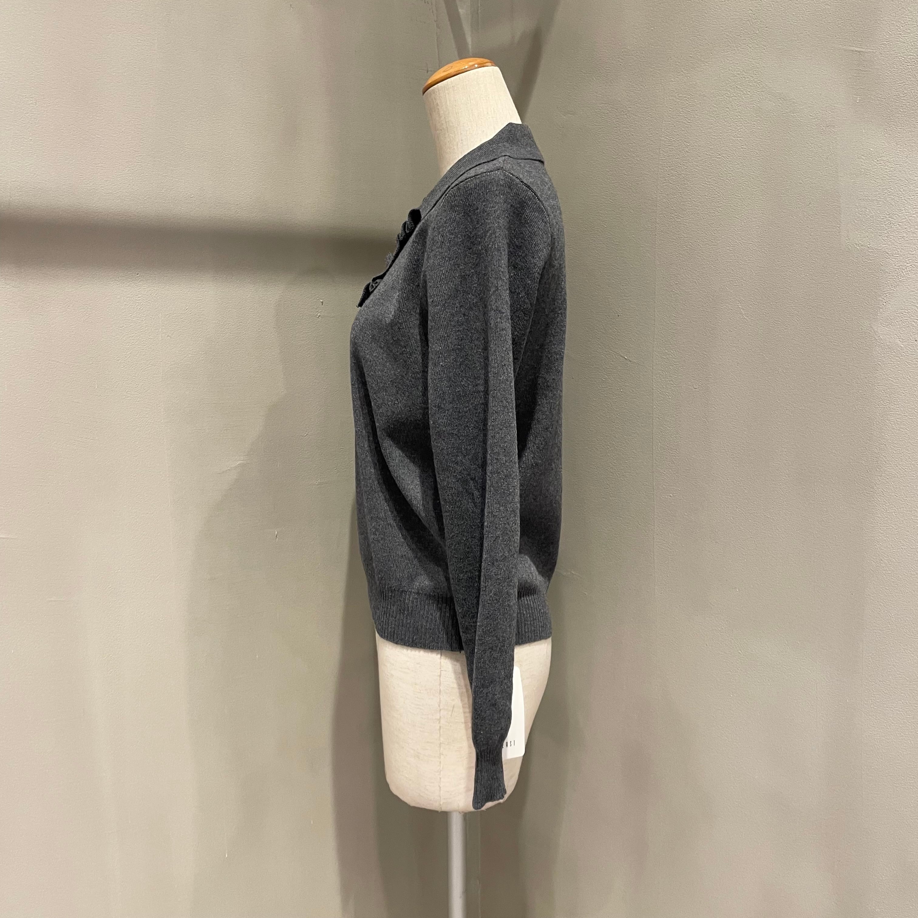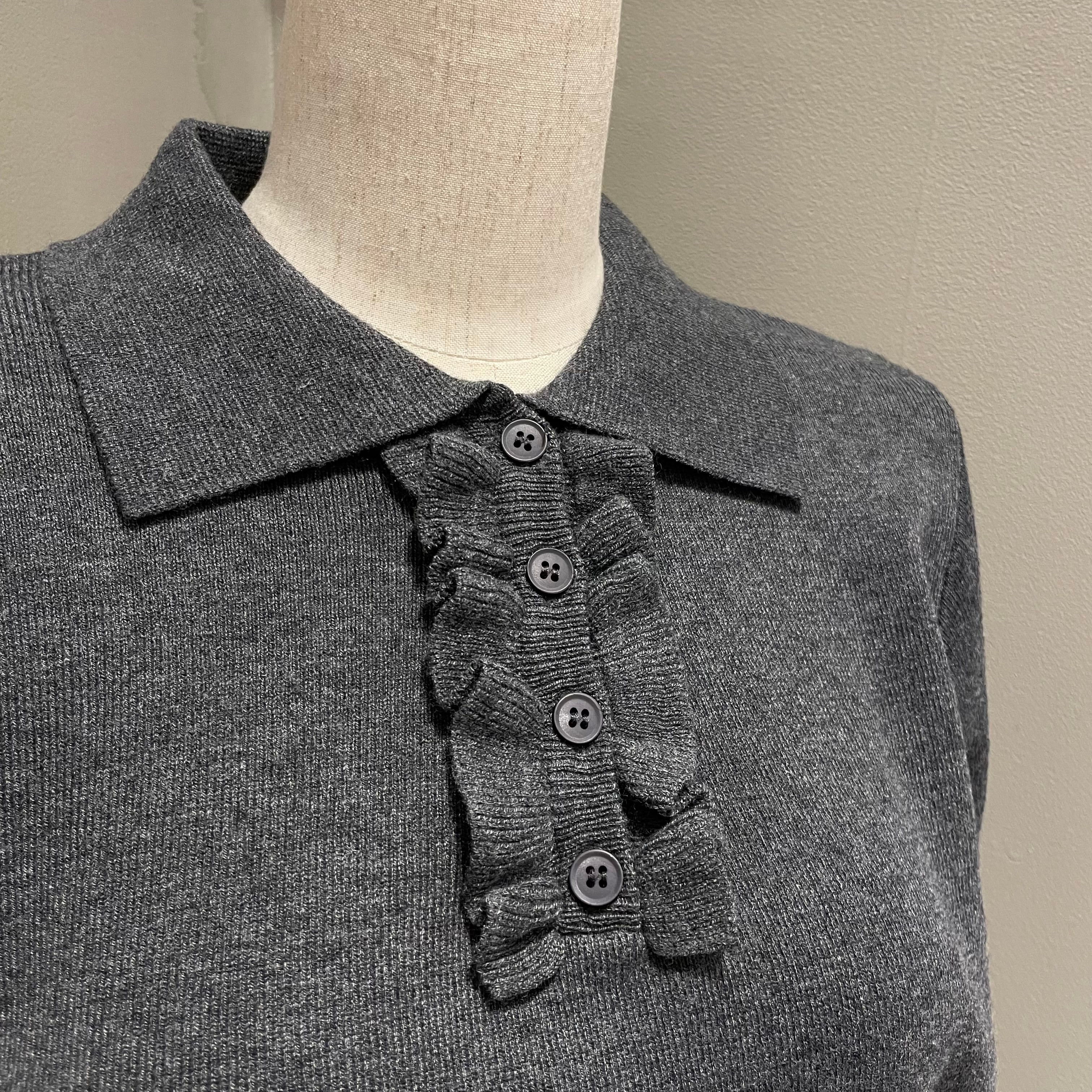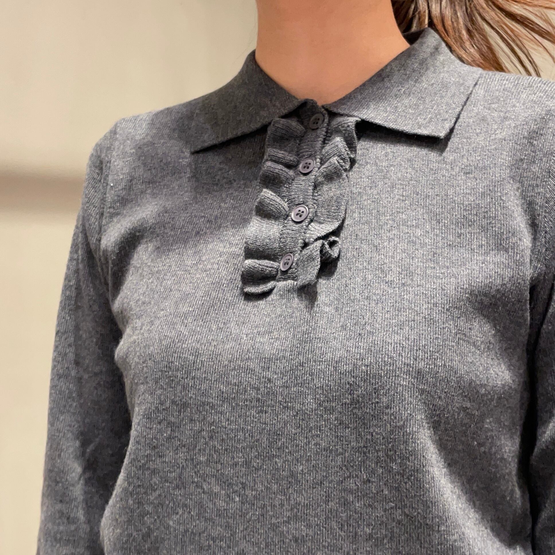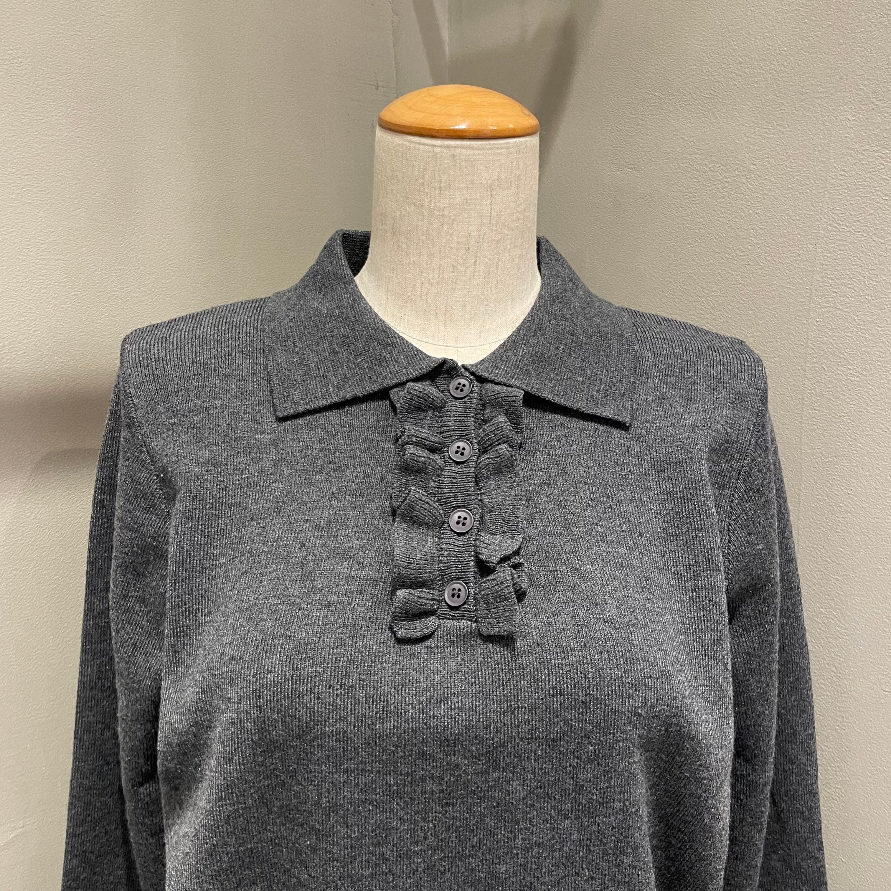 シンプルなポロニットにさりげなくガーリーさをプラスした、大人かわいい一枚です。