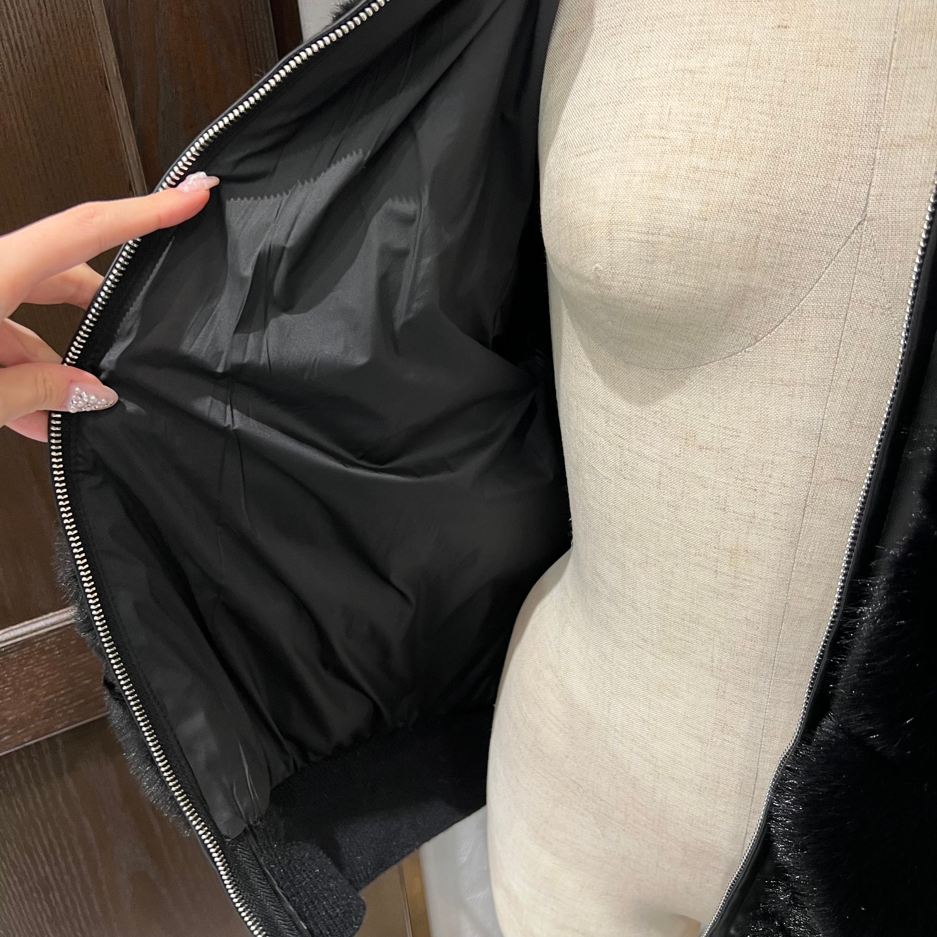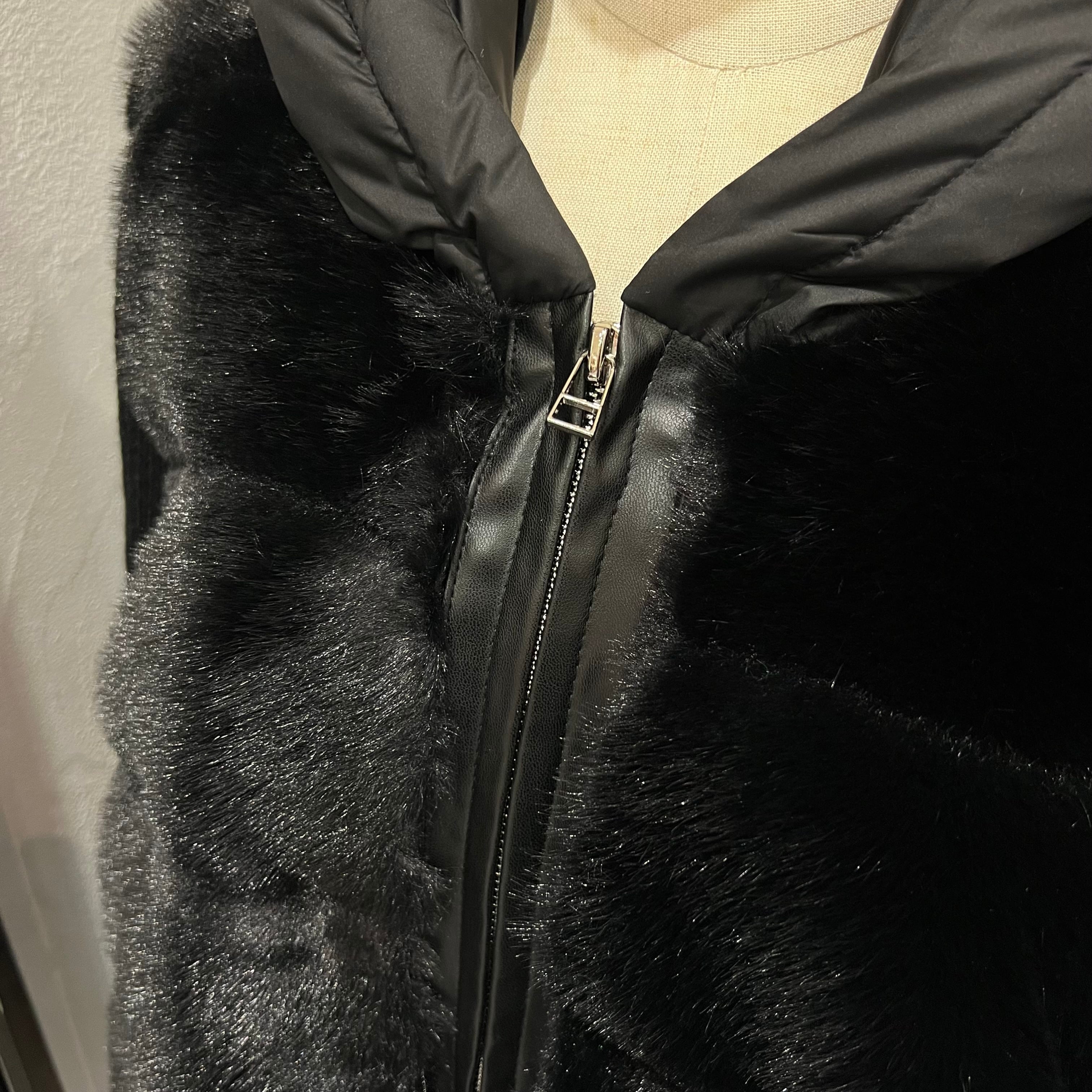 フロントはふわっと艶のあるフェイクファーで、見た目から上品な存在感。