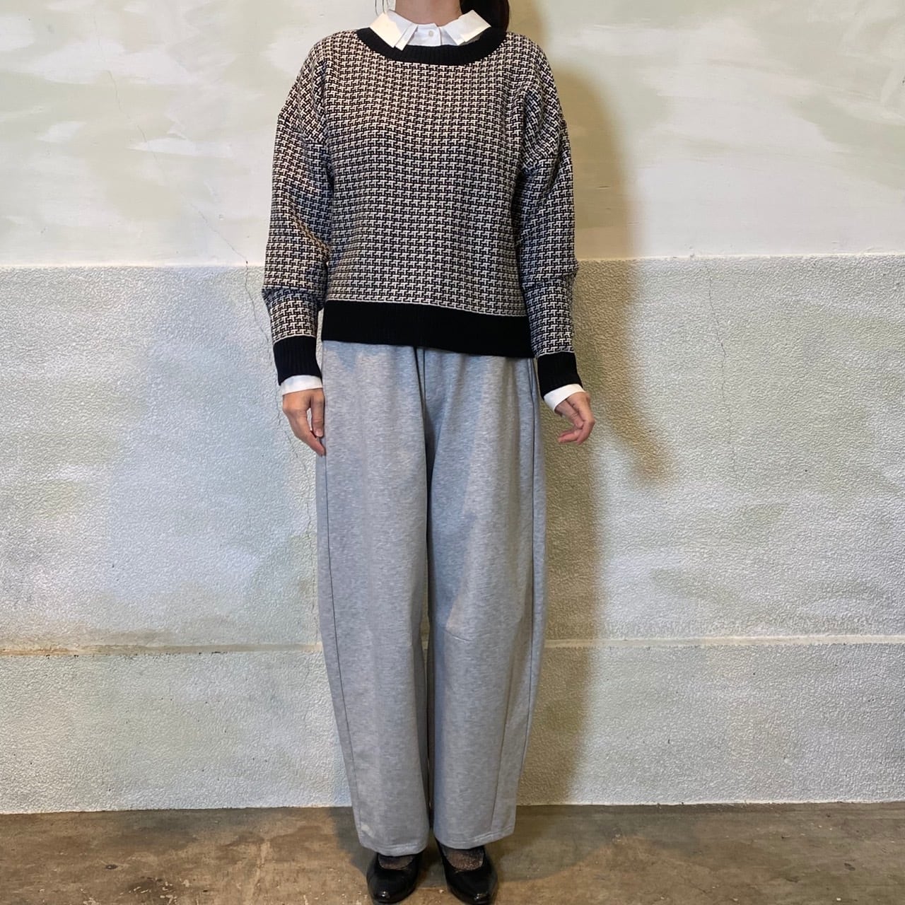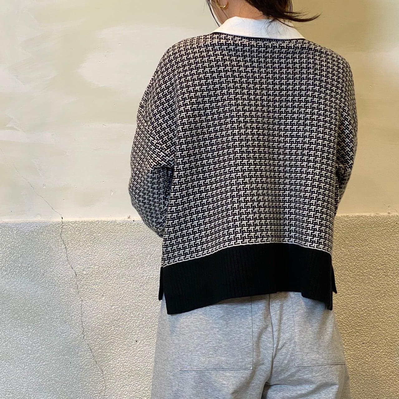 モノトーンのジャガード柄が印象的なニットプルオーバー。