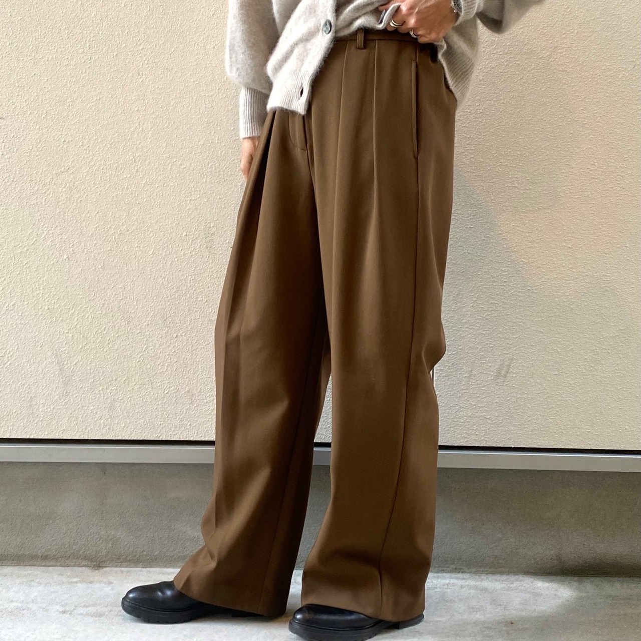 ウエスト部分のタックが効いた程良いワイドシルエット。
