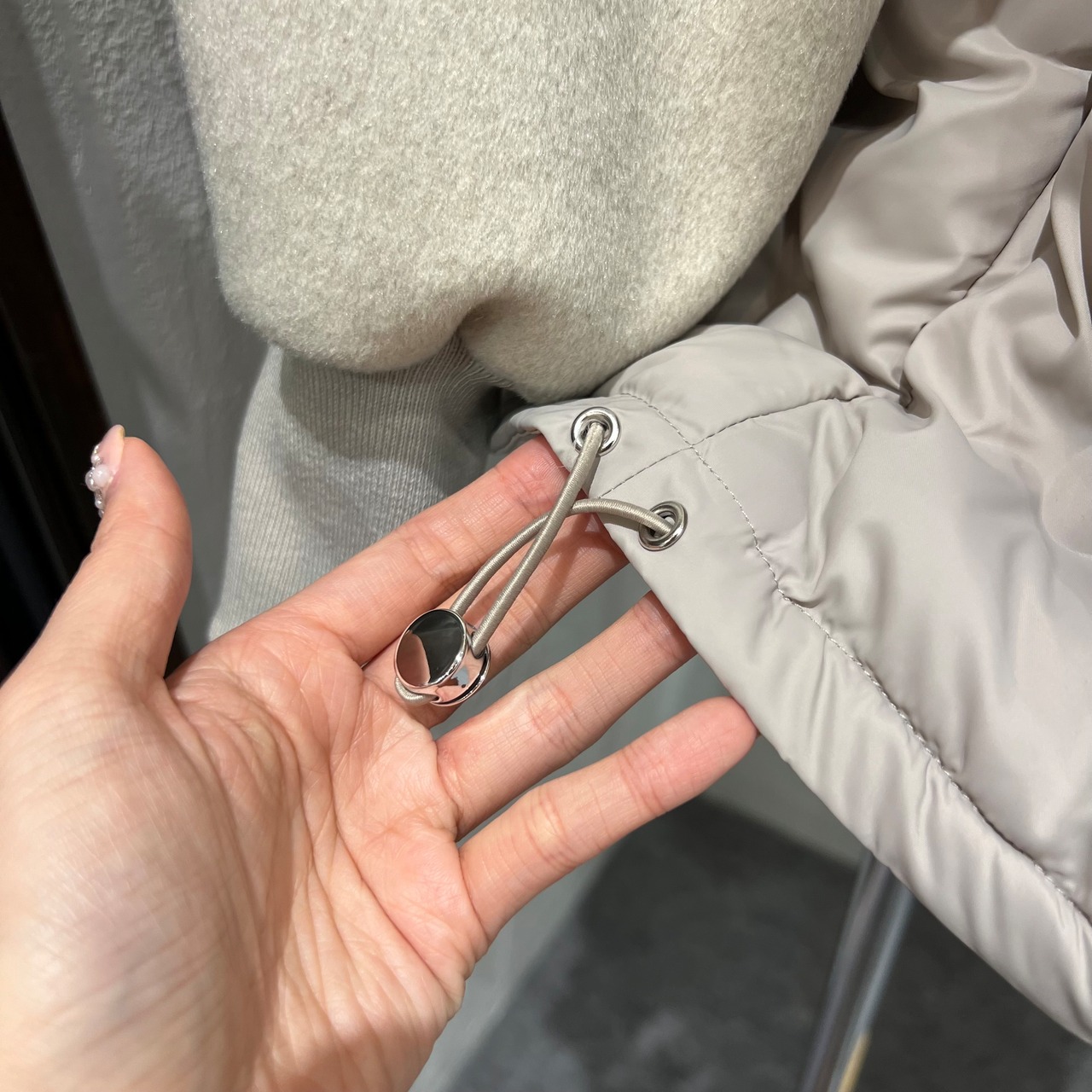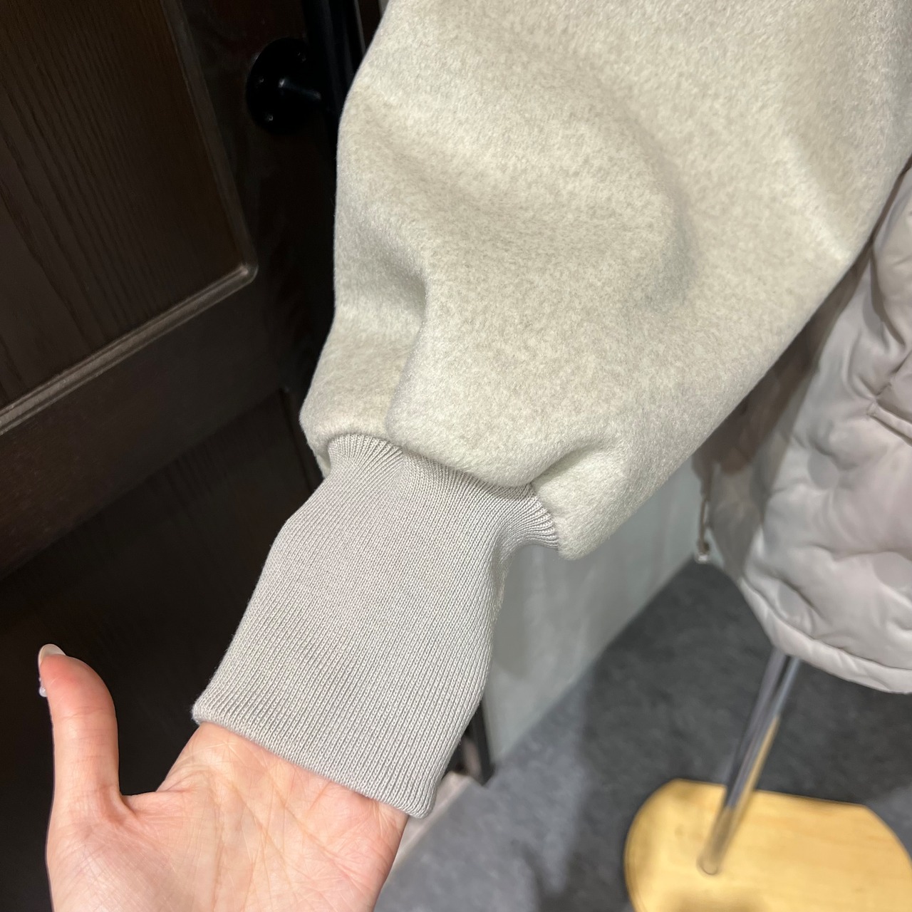 袖部分は柔らかな素材感で動きやすく、重ね着してもごわつきにくいのがポイント。