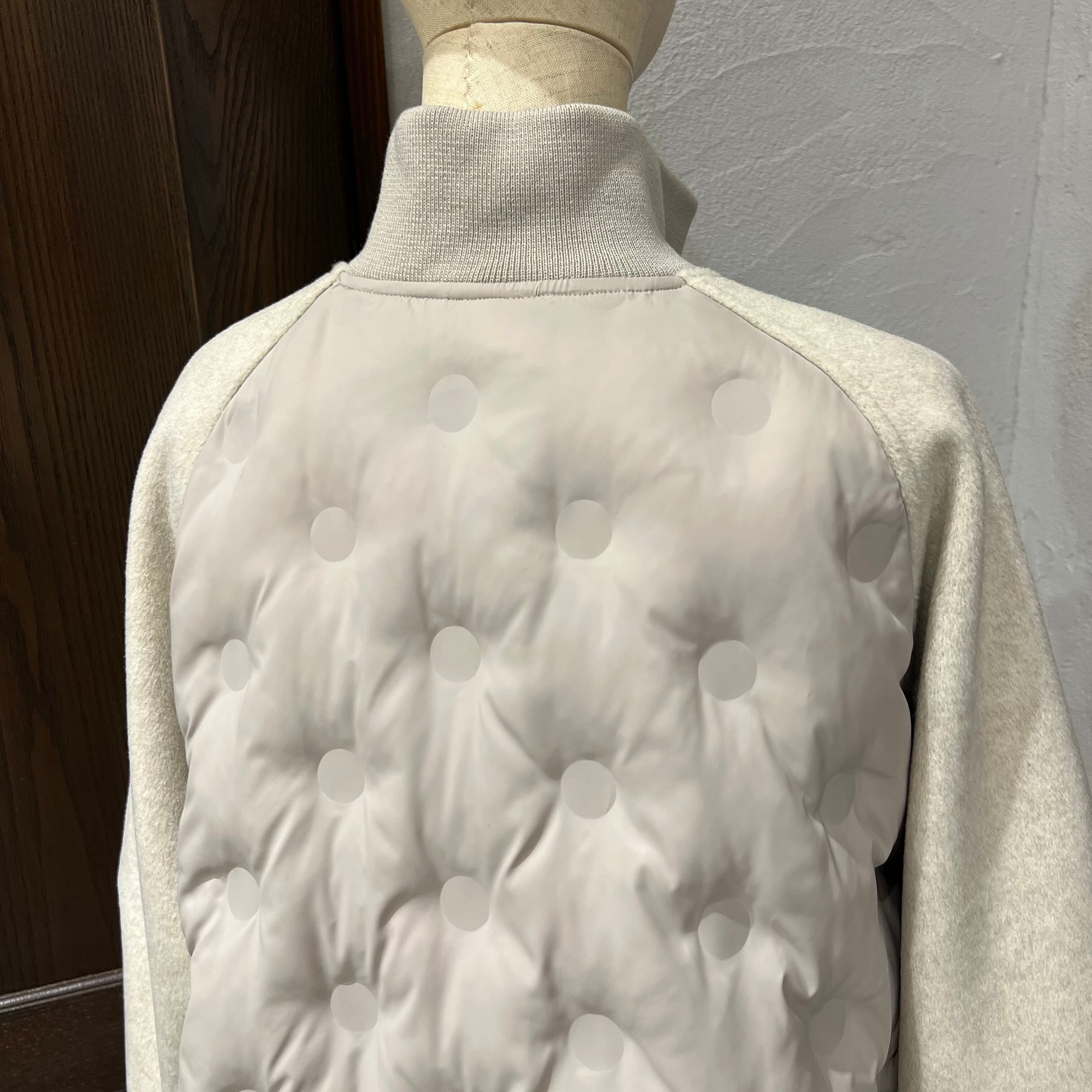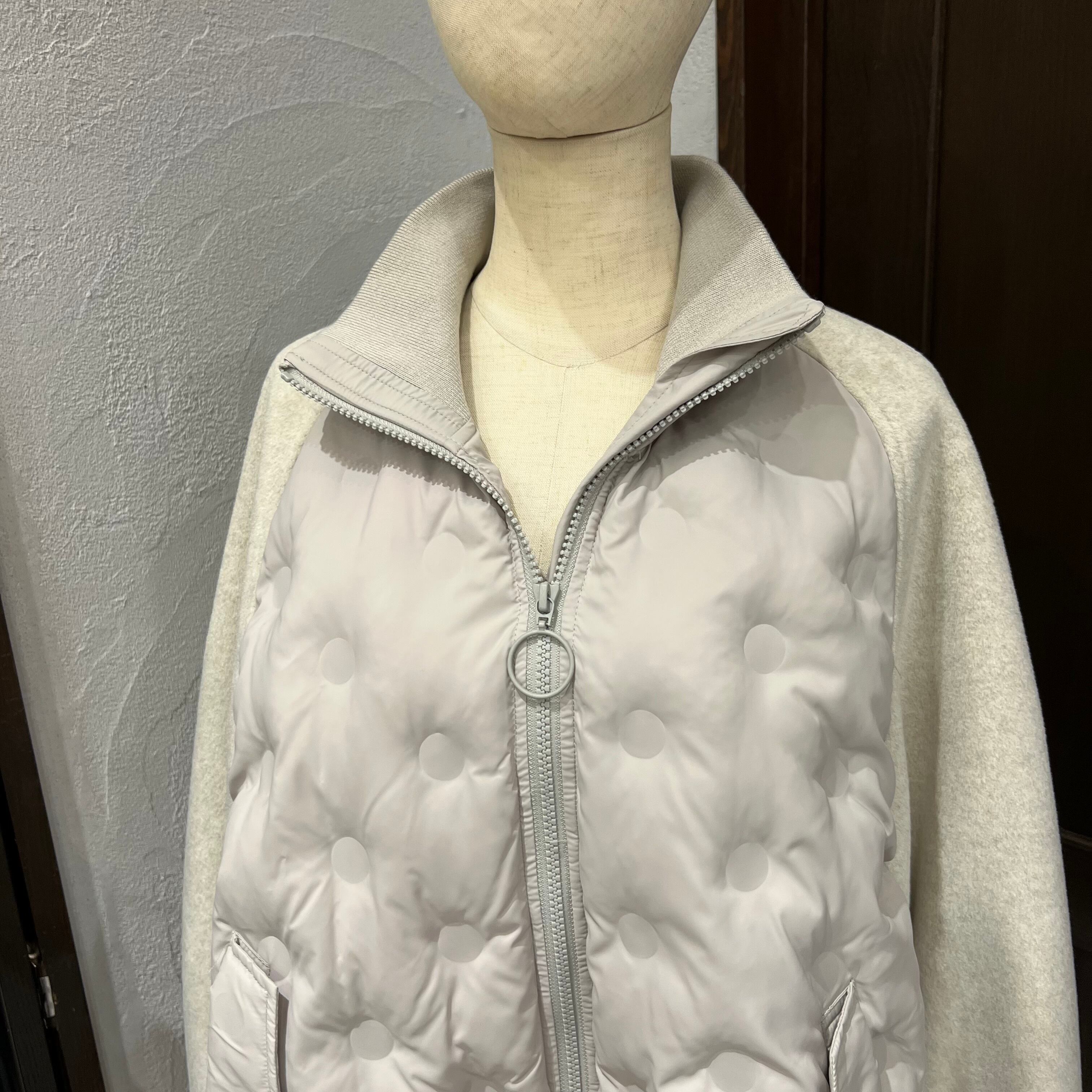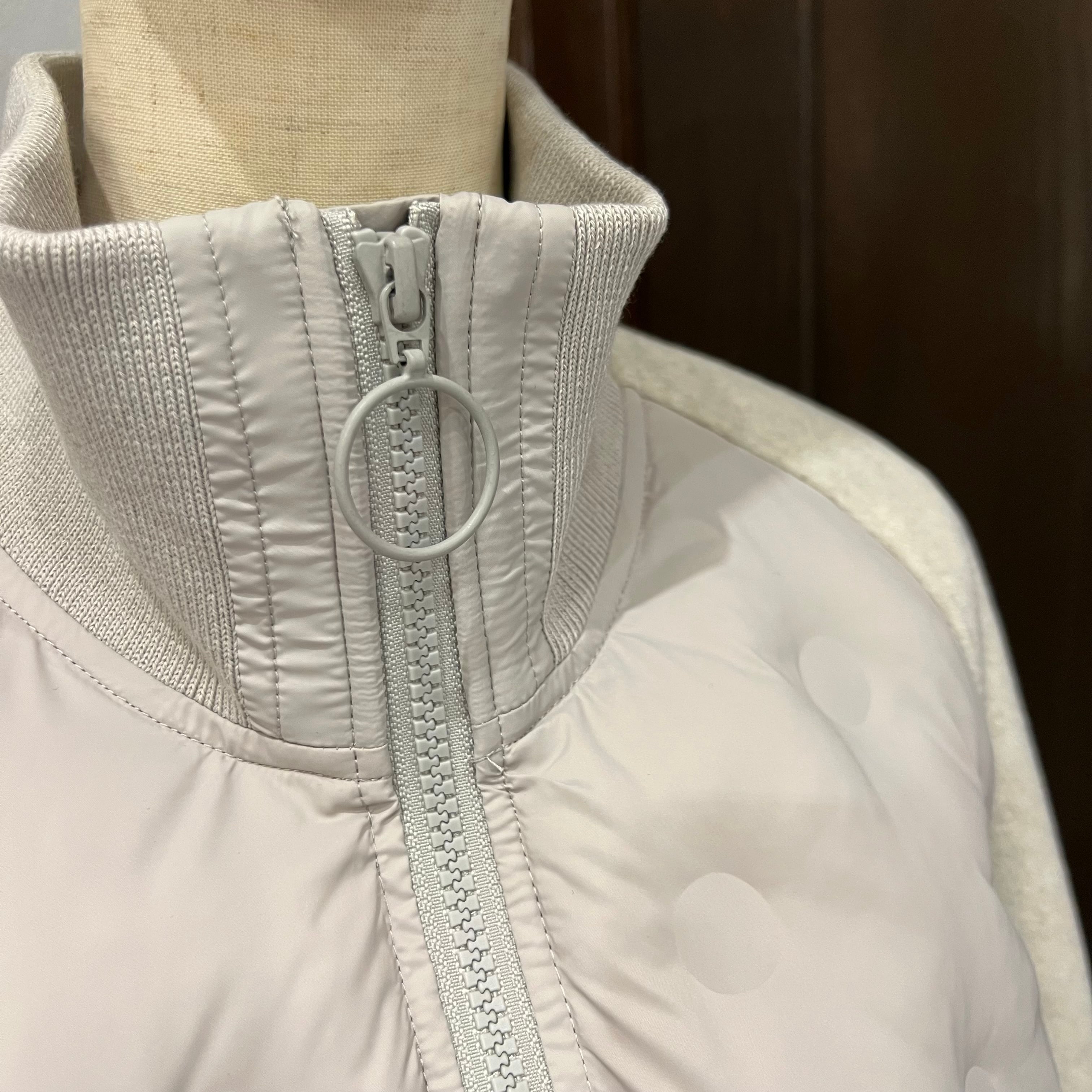 異素材切り替えが目を惹く、上品カジュアルな中綿ジャケット。