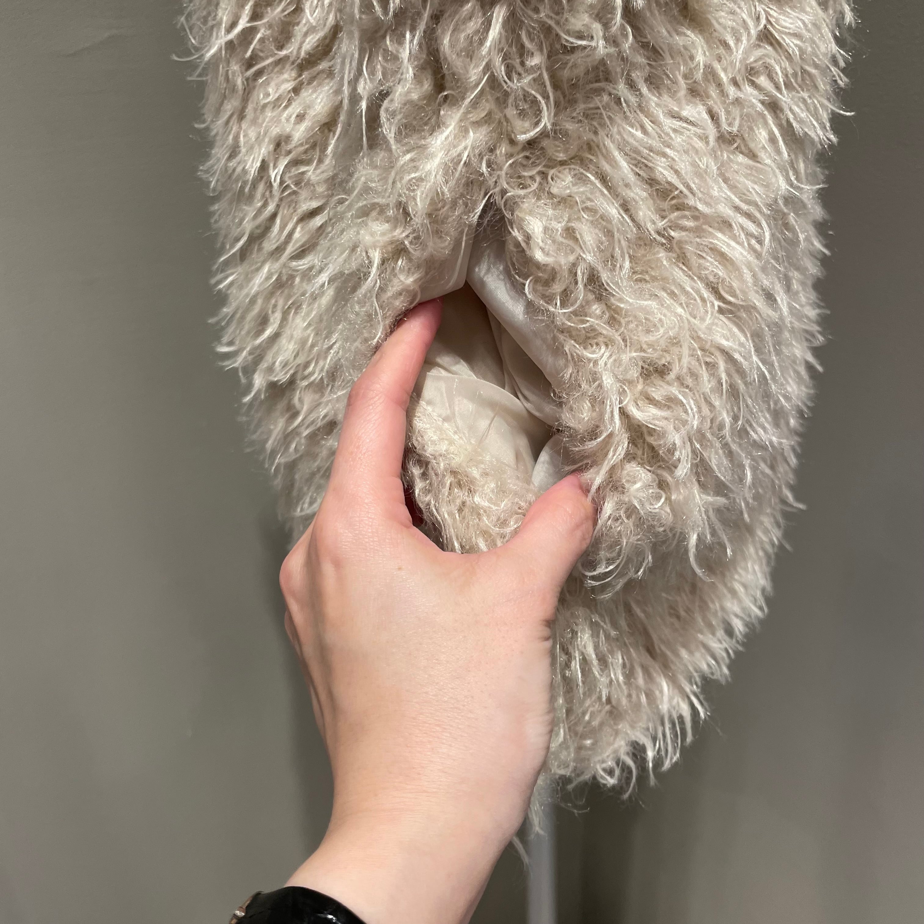 表面はふわふわシャギーフェイクファーを使用、裏地はツルっとした滑りの良い裏地を使用しています。