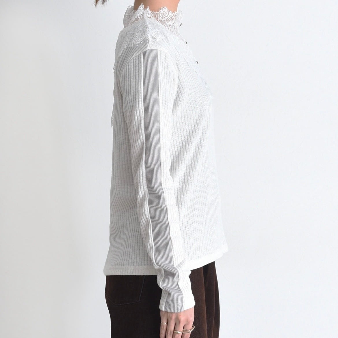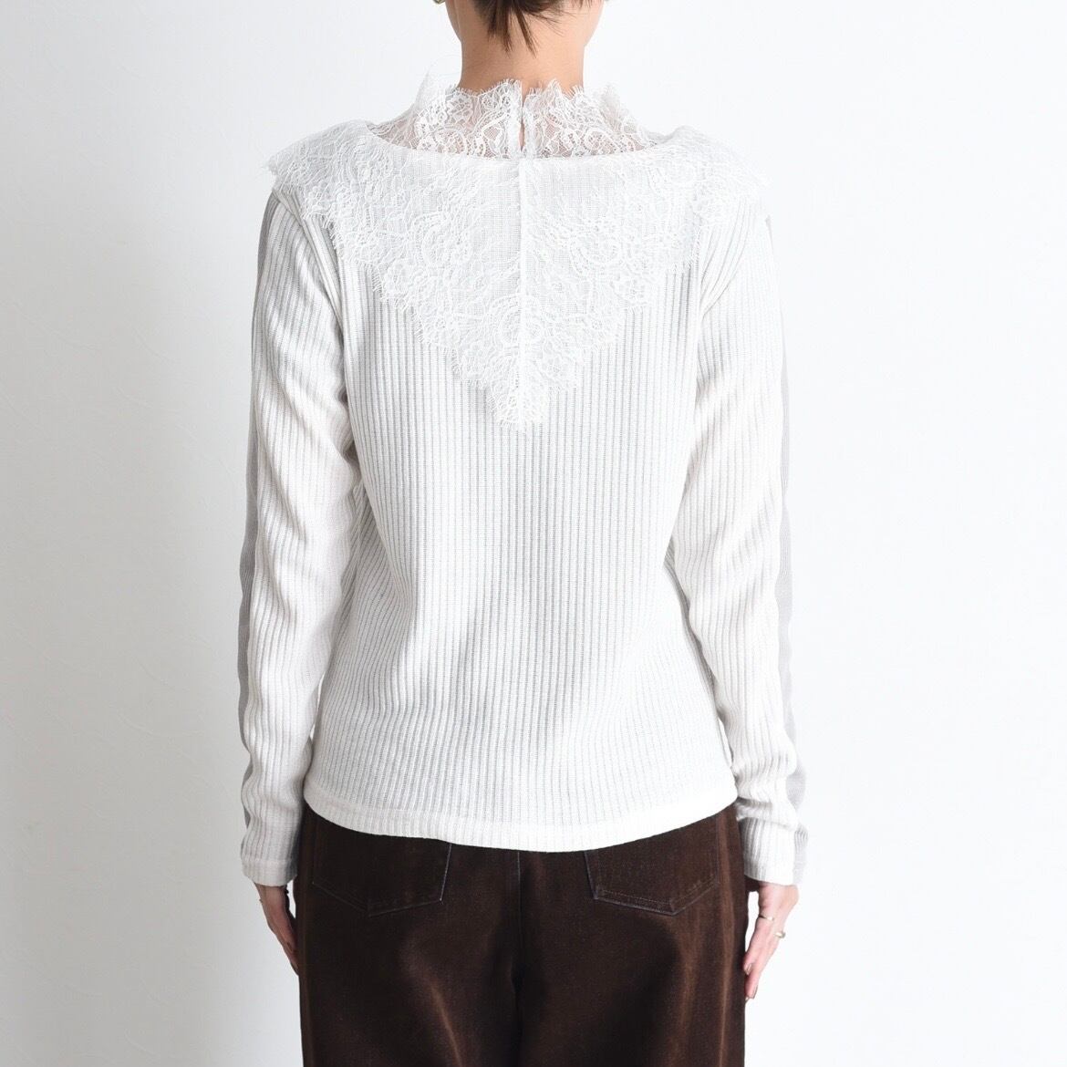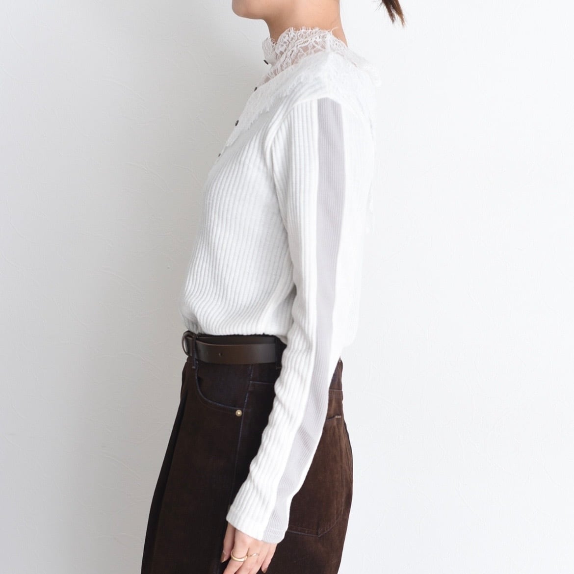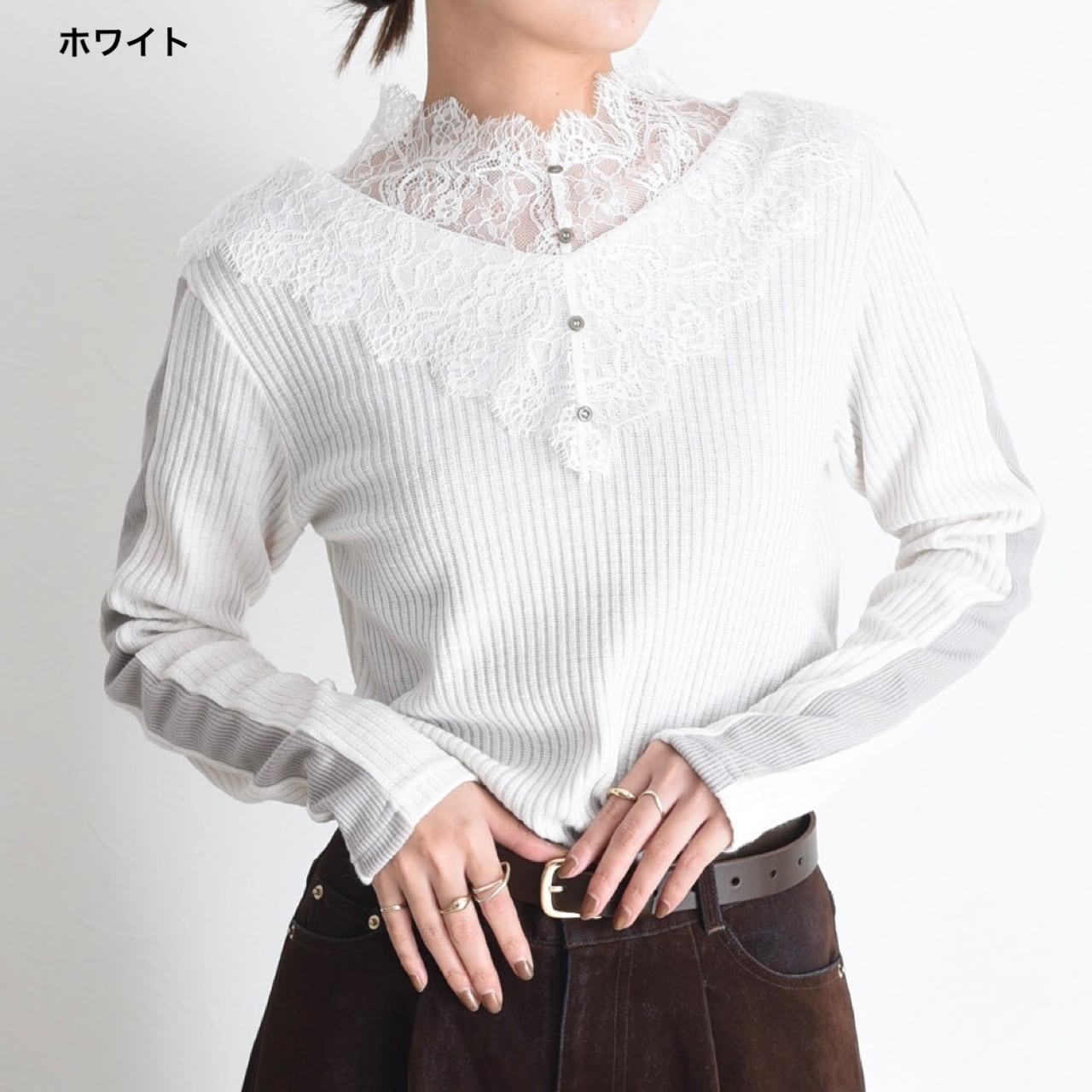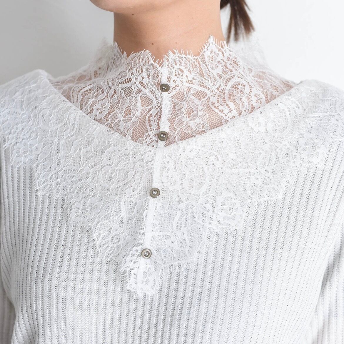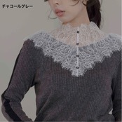 繊細なスカラップレースをあしらった衿が顔まわりを華やかな印象に。