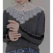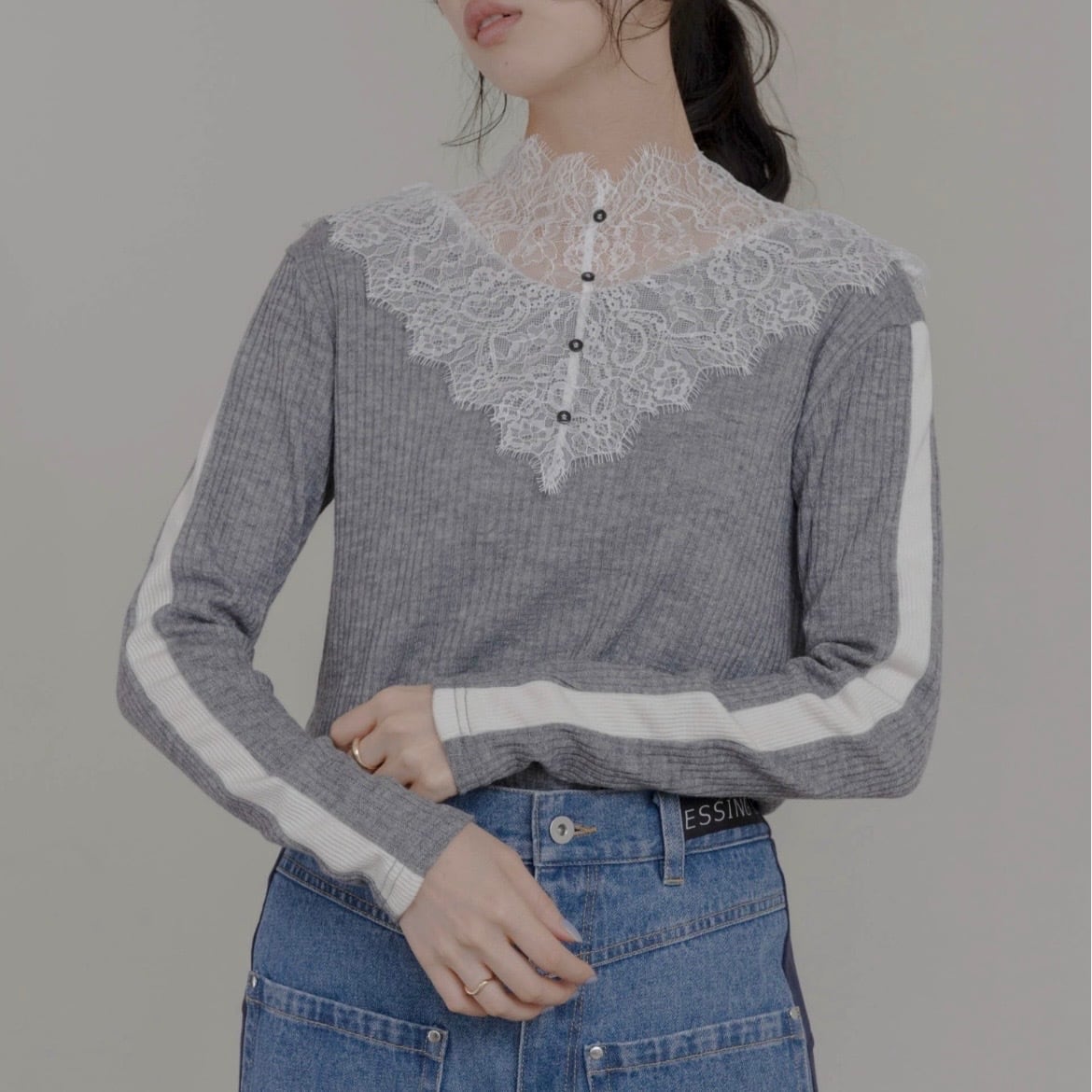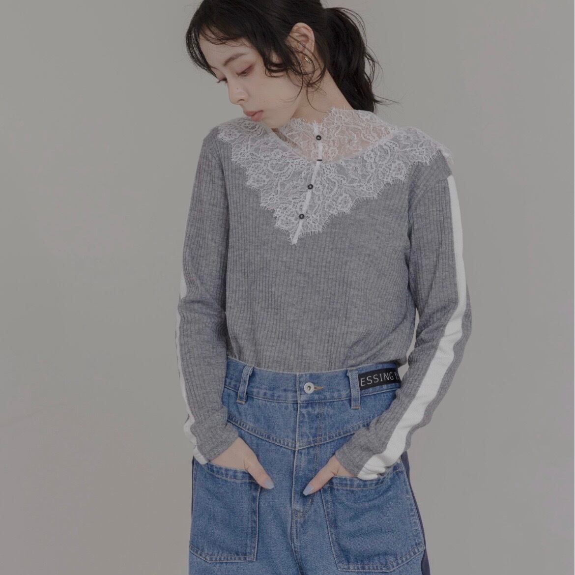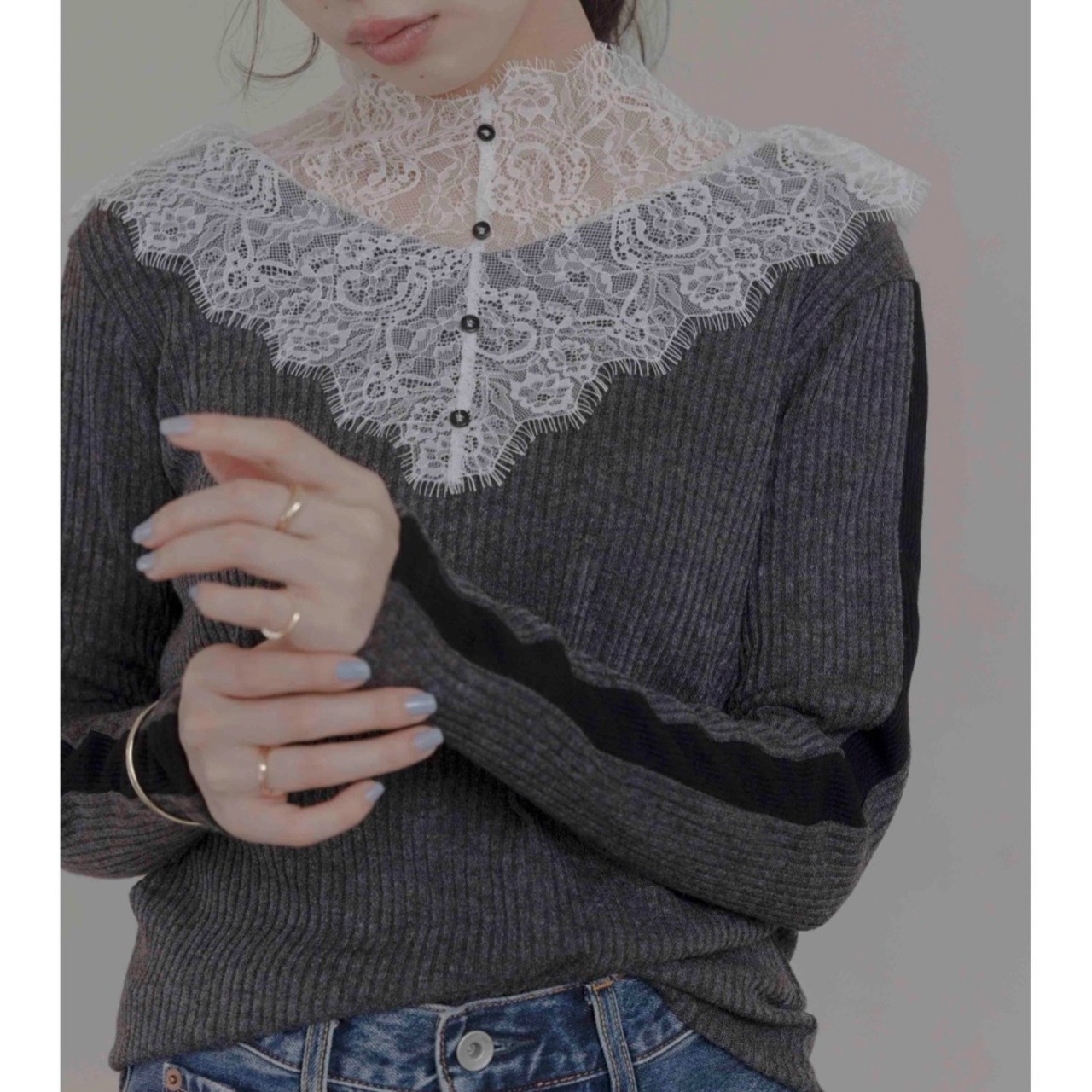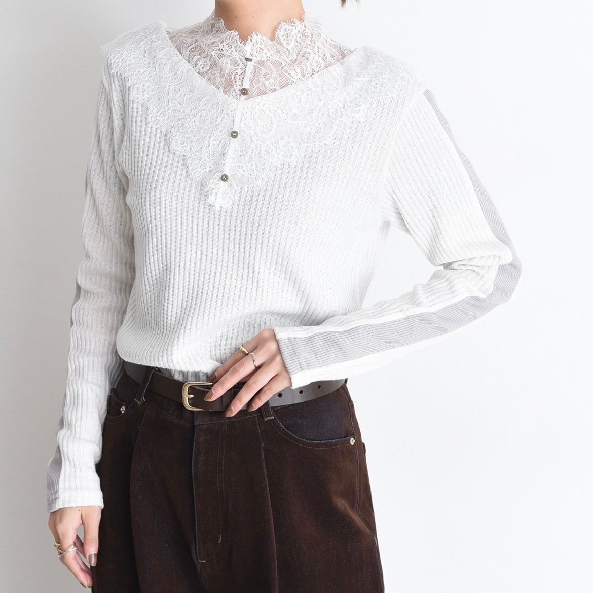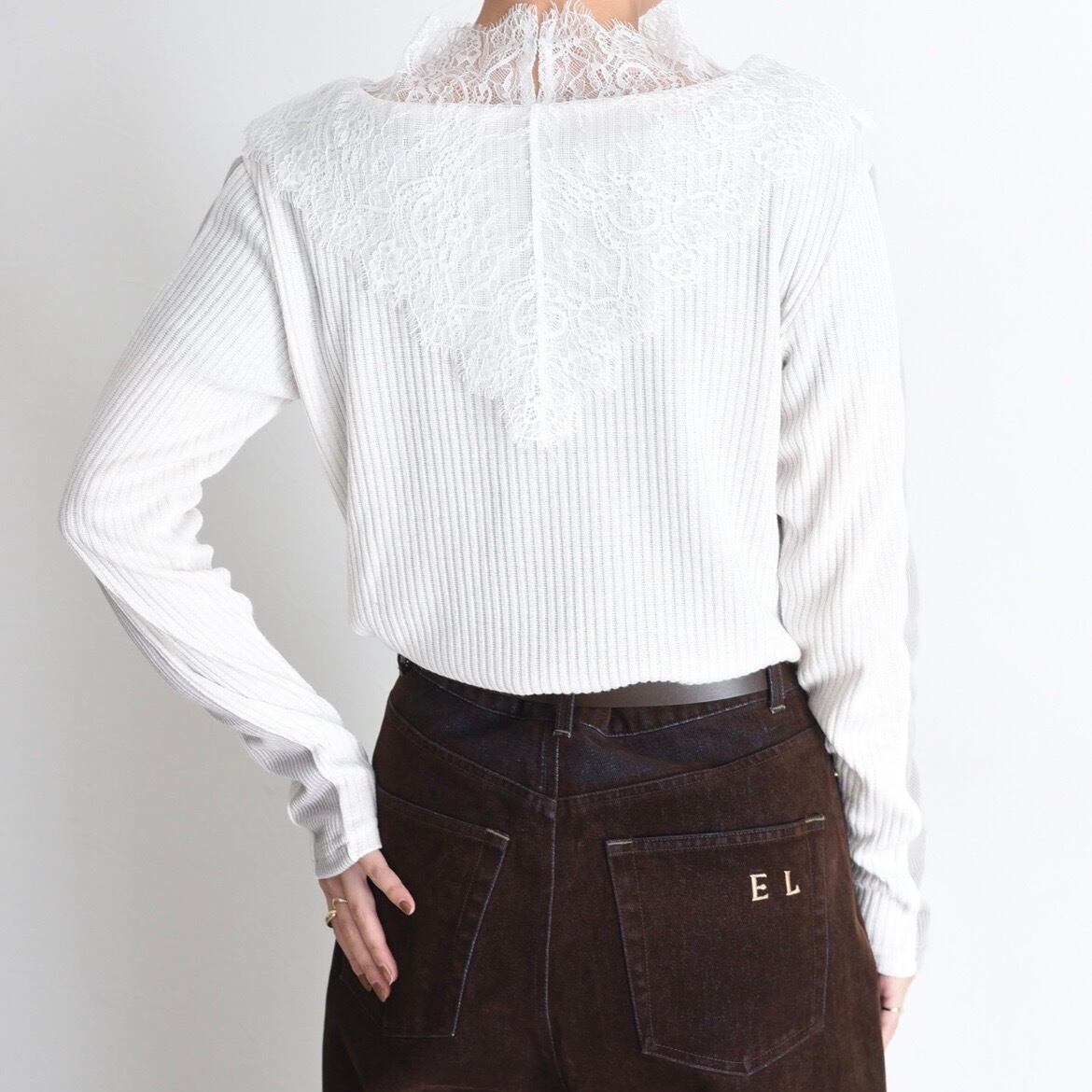 繊細なスカラップレースをあしらった衿が顔まわりを華やかな印象に。