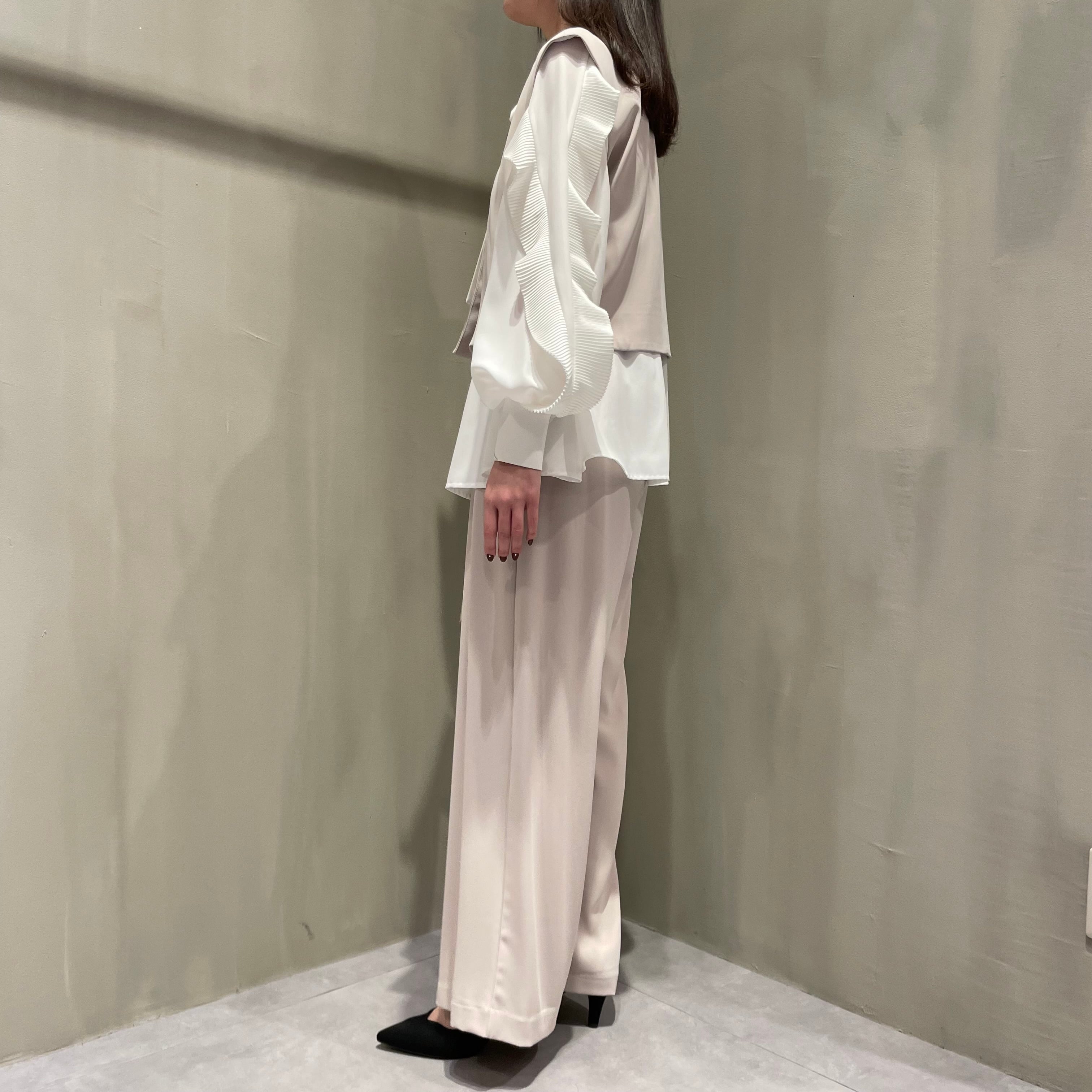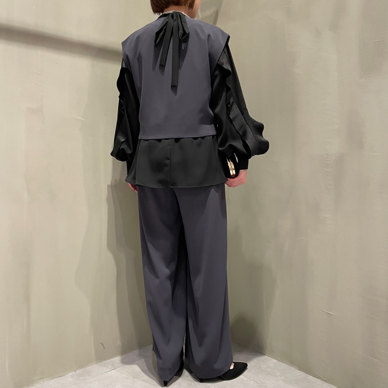 同素材のパンツやサロペットを合わせたセットアップスタイルでセレモニーシーンにもおススメです。